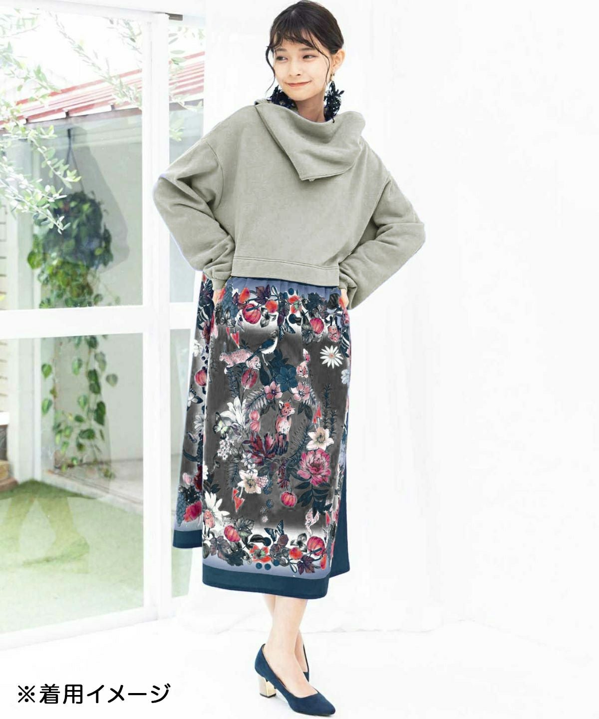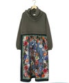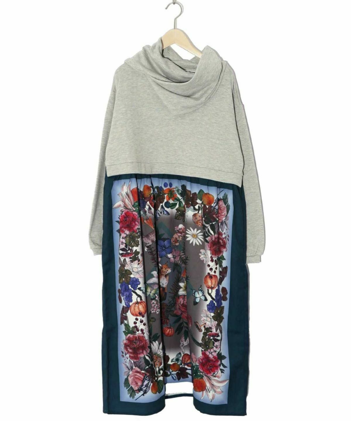 秋のモチーフスカーフ柄 スウェットドッキングワンピース