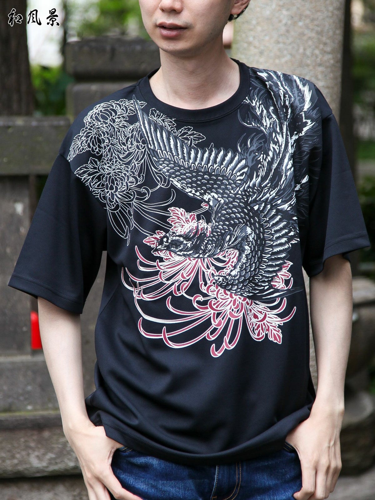 “鳳凰と菊”プリントDRY素材Tシャツ≪返品・取寄対応不可≫