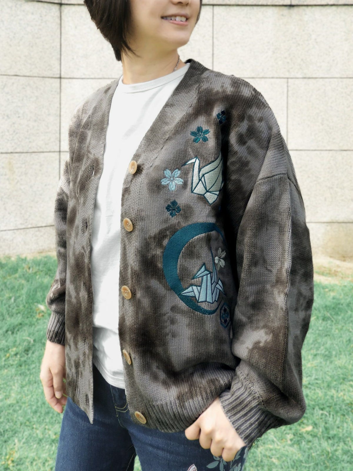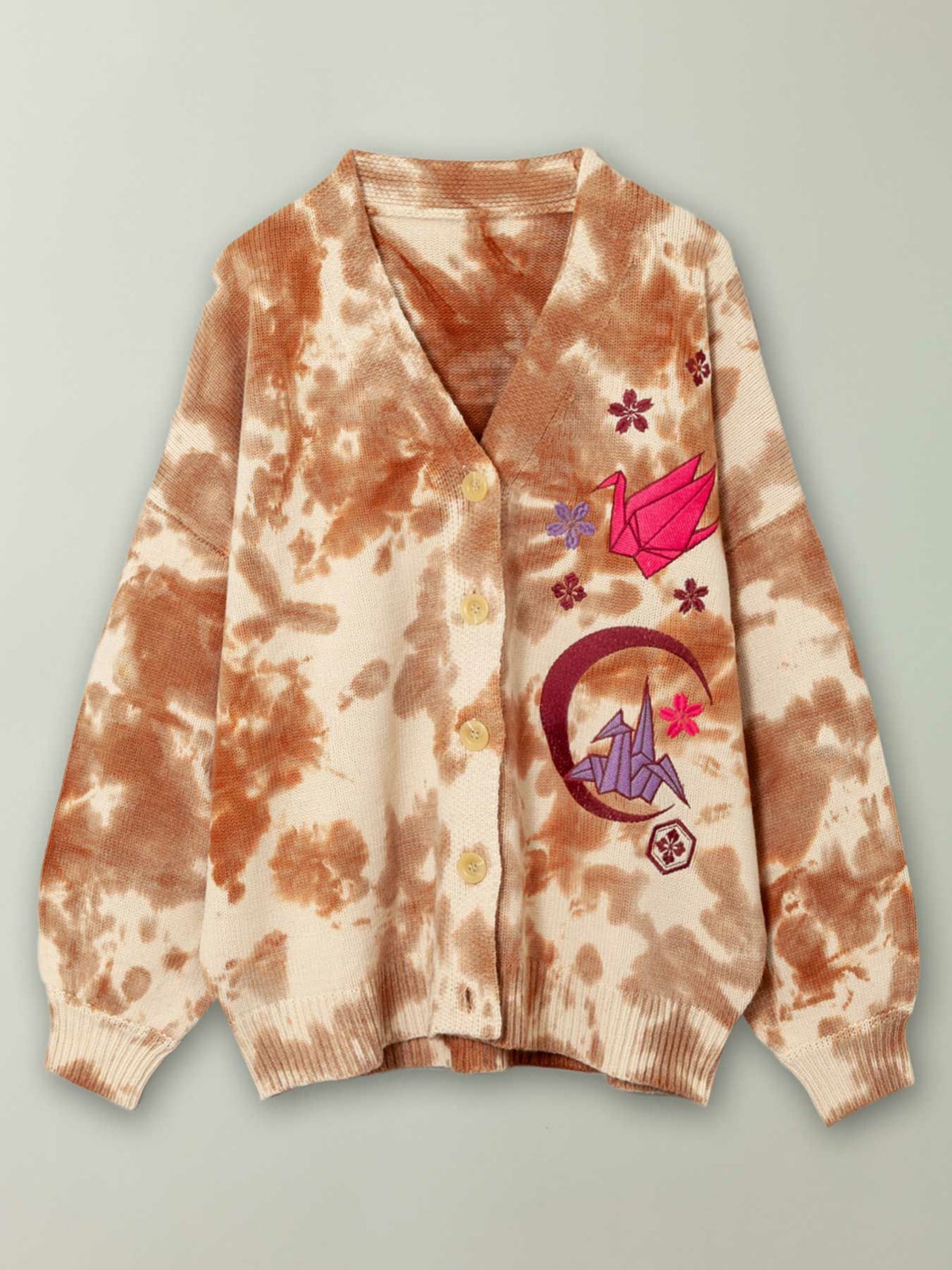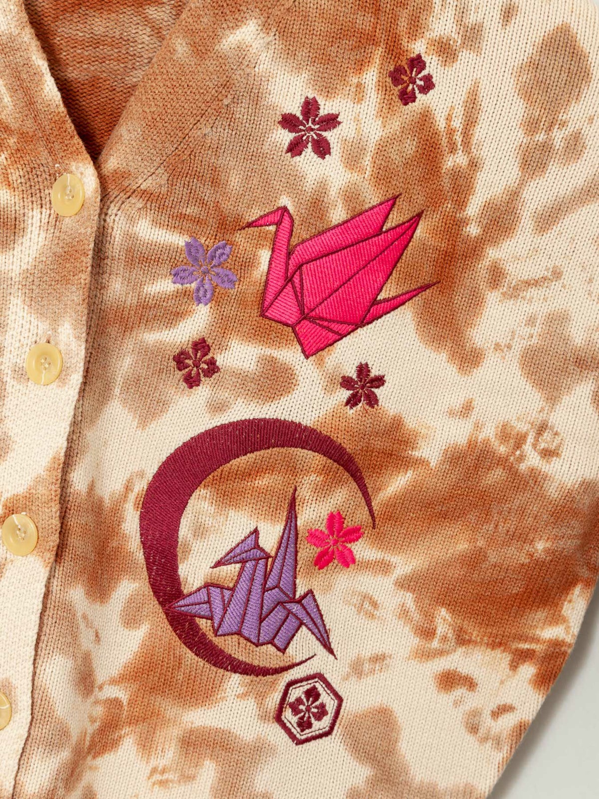 折り鶴刺繍タイダイ染めニットカーディガン≪返品・取寄対応不可≫
