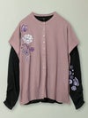 牡丹と蝶刺繍ニットベストカーディガン×ロンTアンサンブル≪返品・取寄対応不可≫