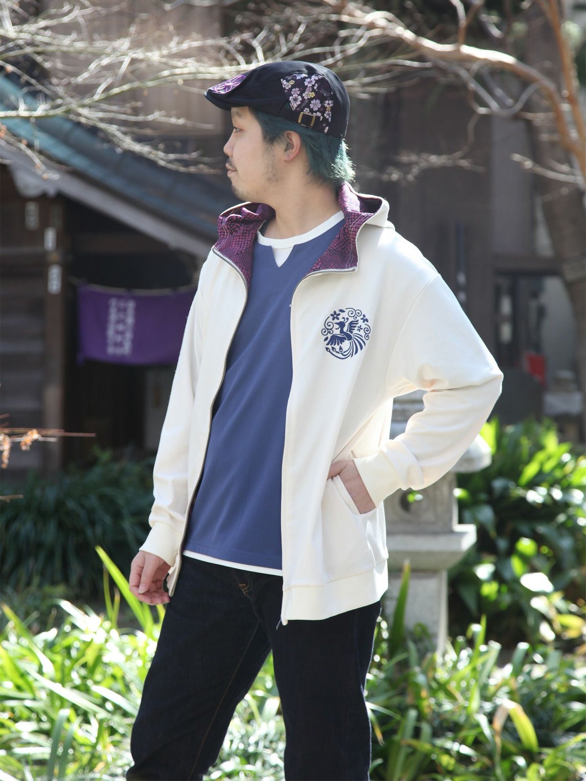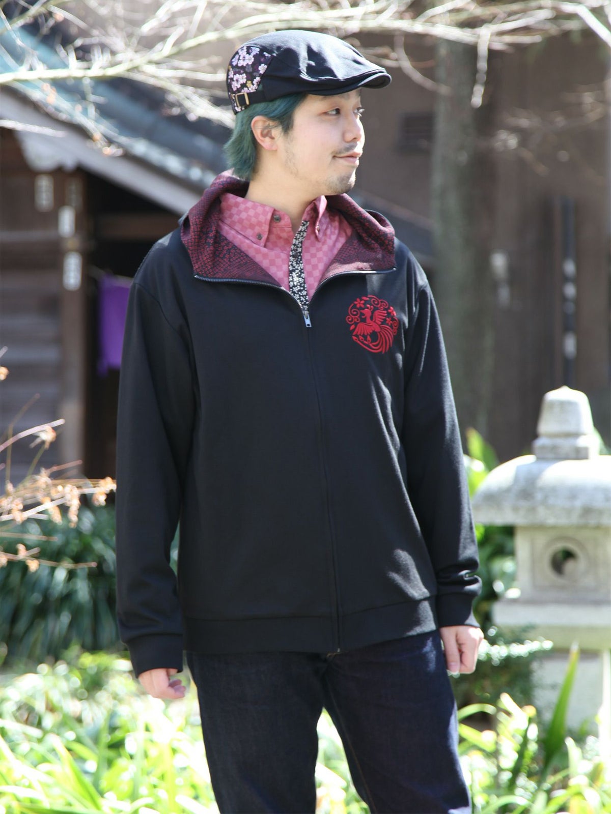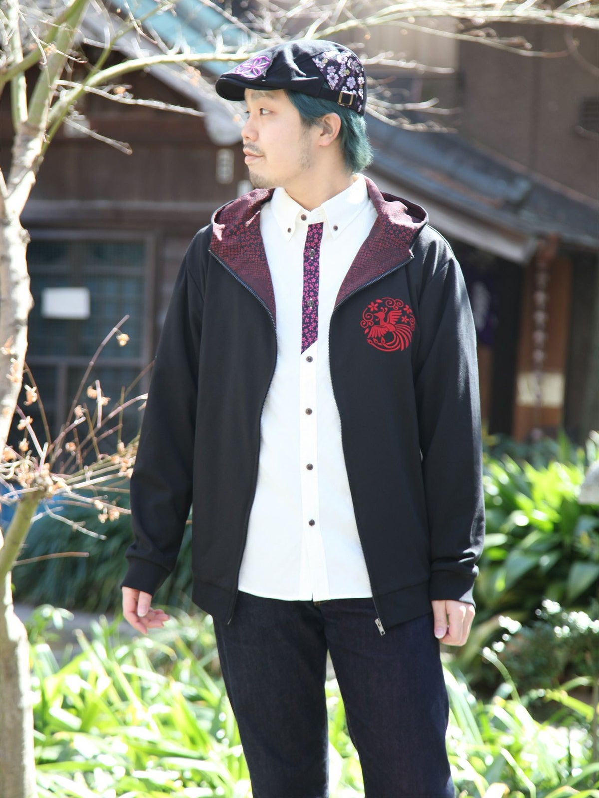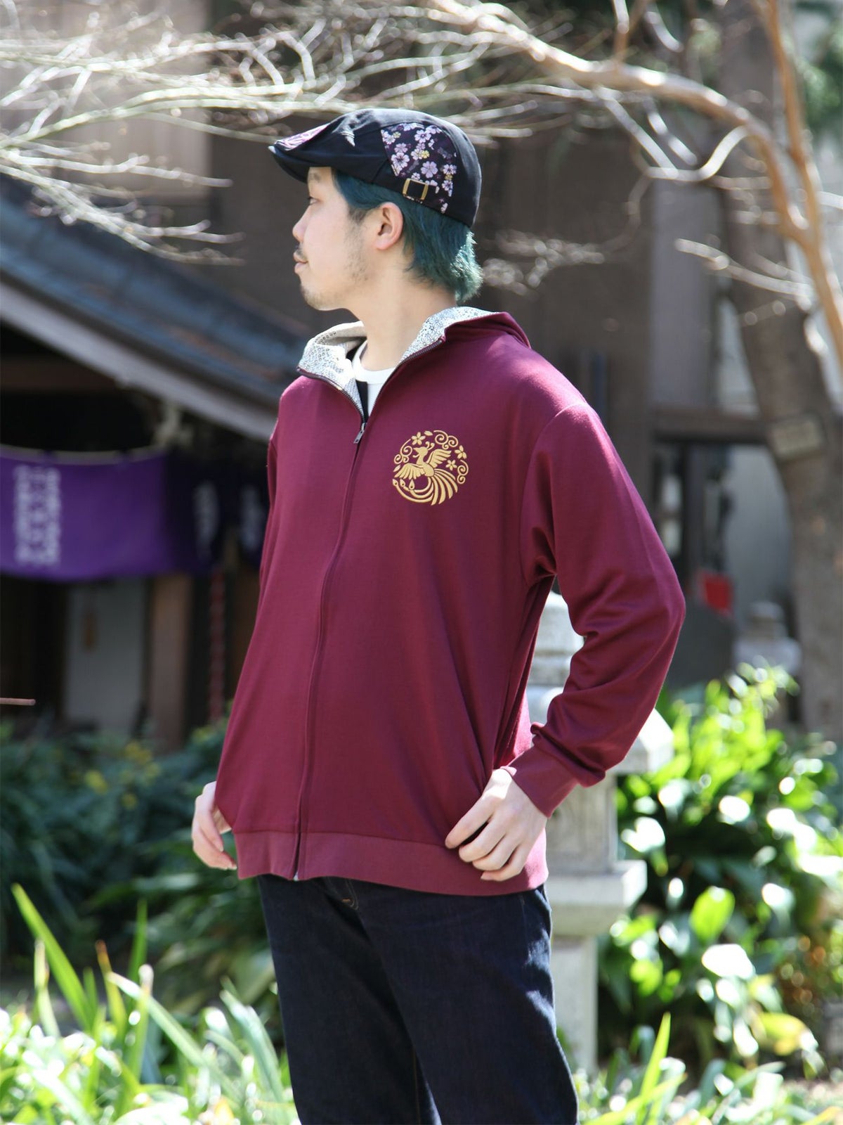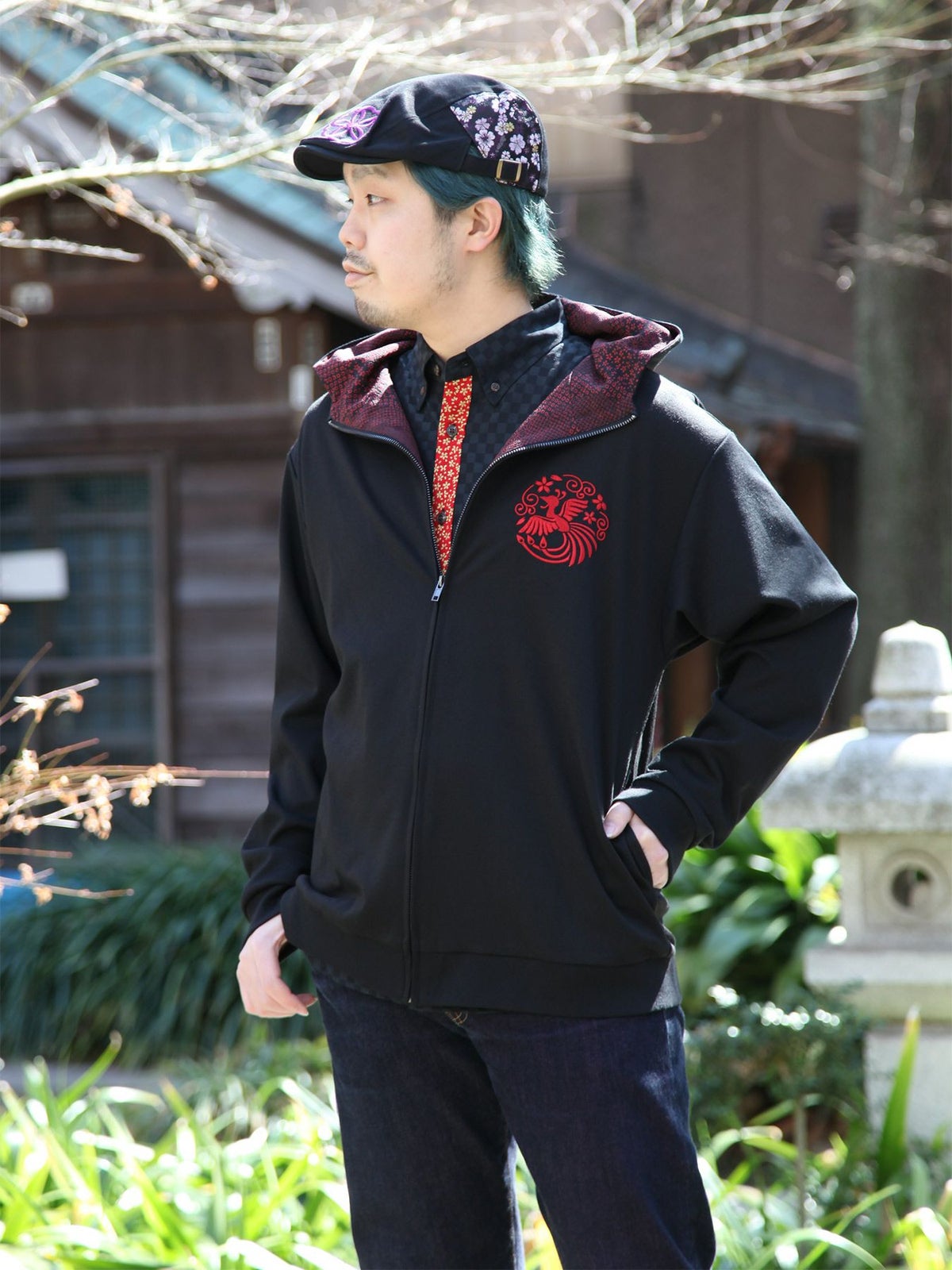 鳳凰刺繍ちりめん切替ZIPパーカー≪返品・取寄対応不可≫