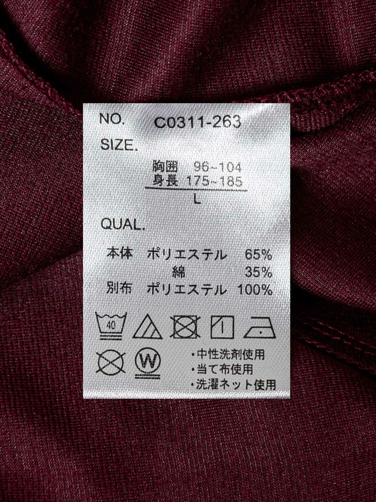 【モデルサイズ:H180cm / Lサイズ着用】