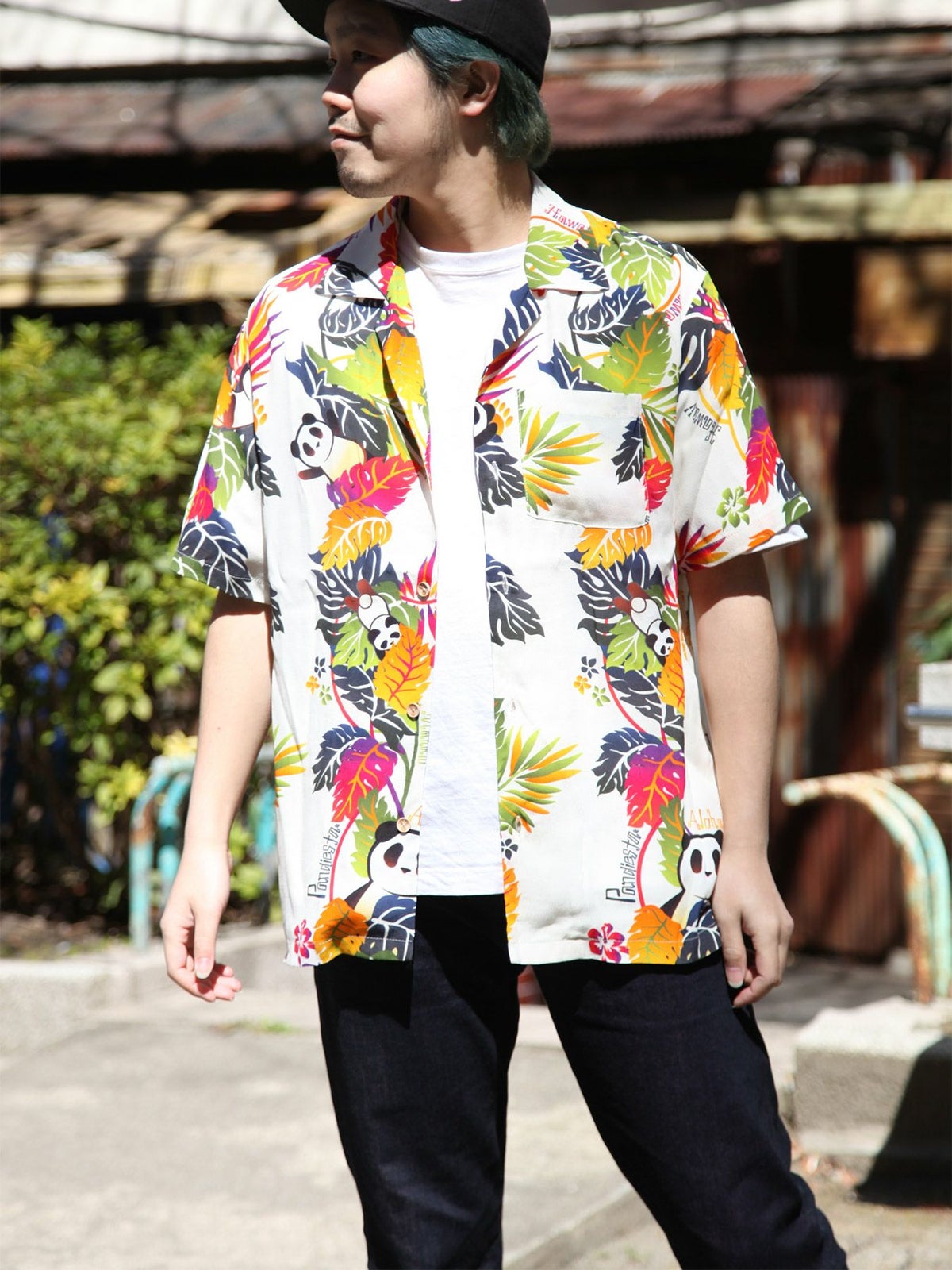 “モンステラパンダ”プリントアロハシャツ