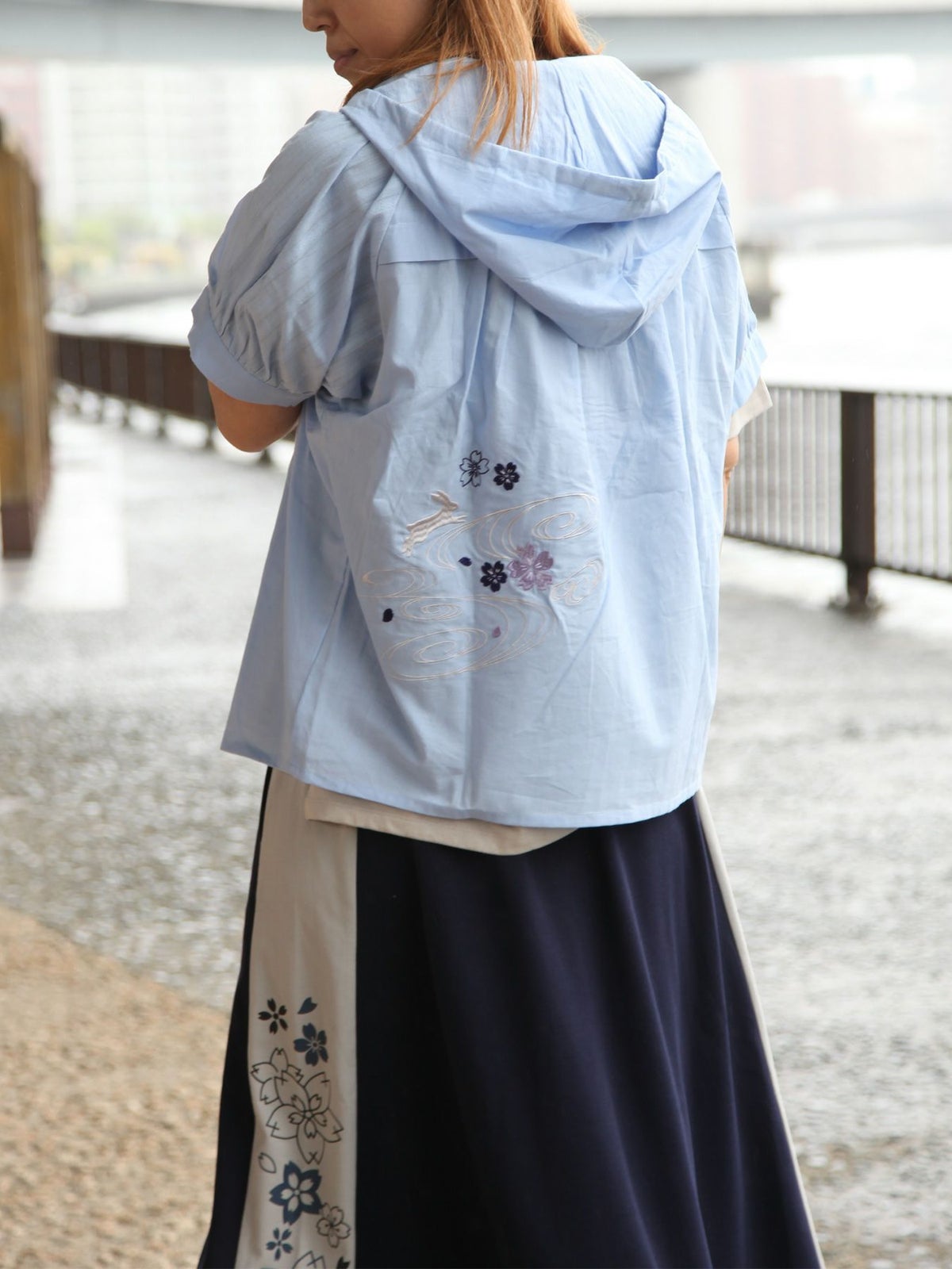 桜と兎刺繍半袖ブラウスパーカー≪返品・取寄対応不可≫