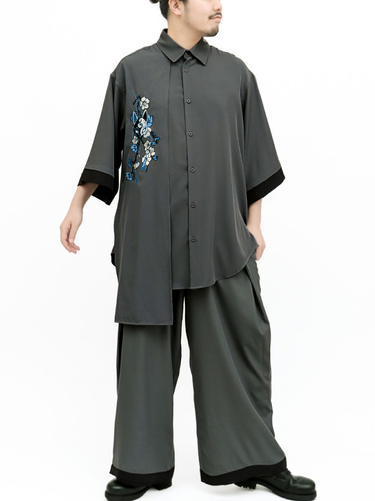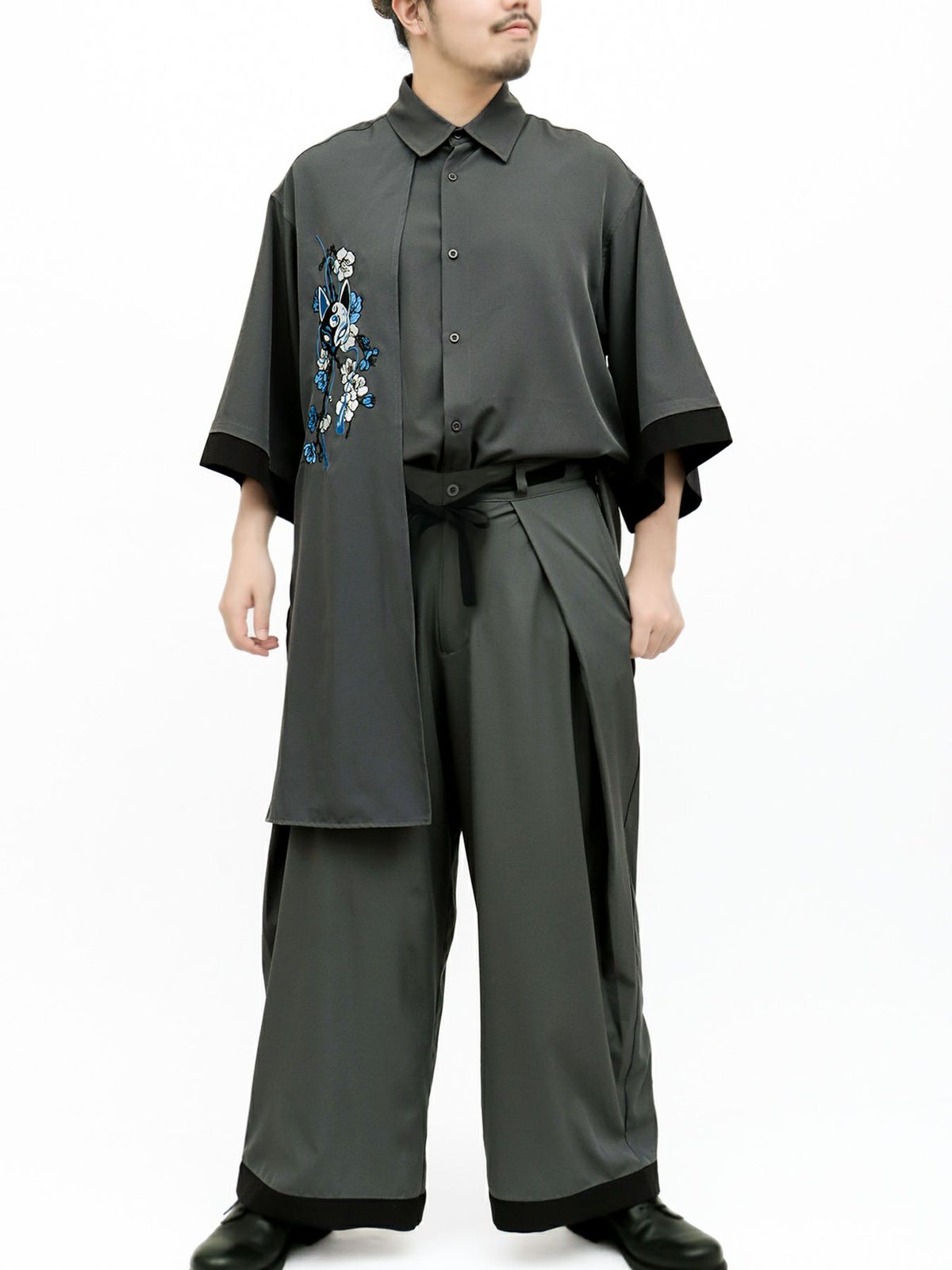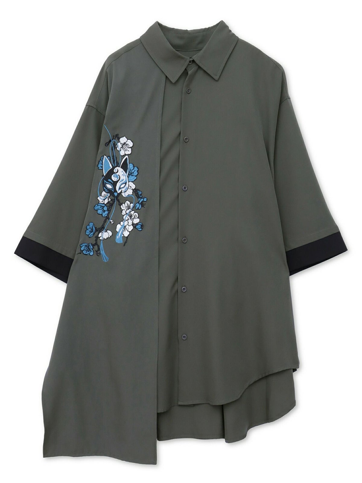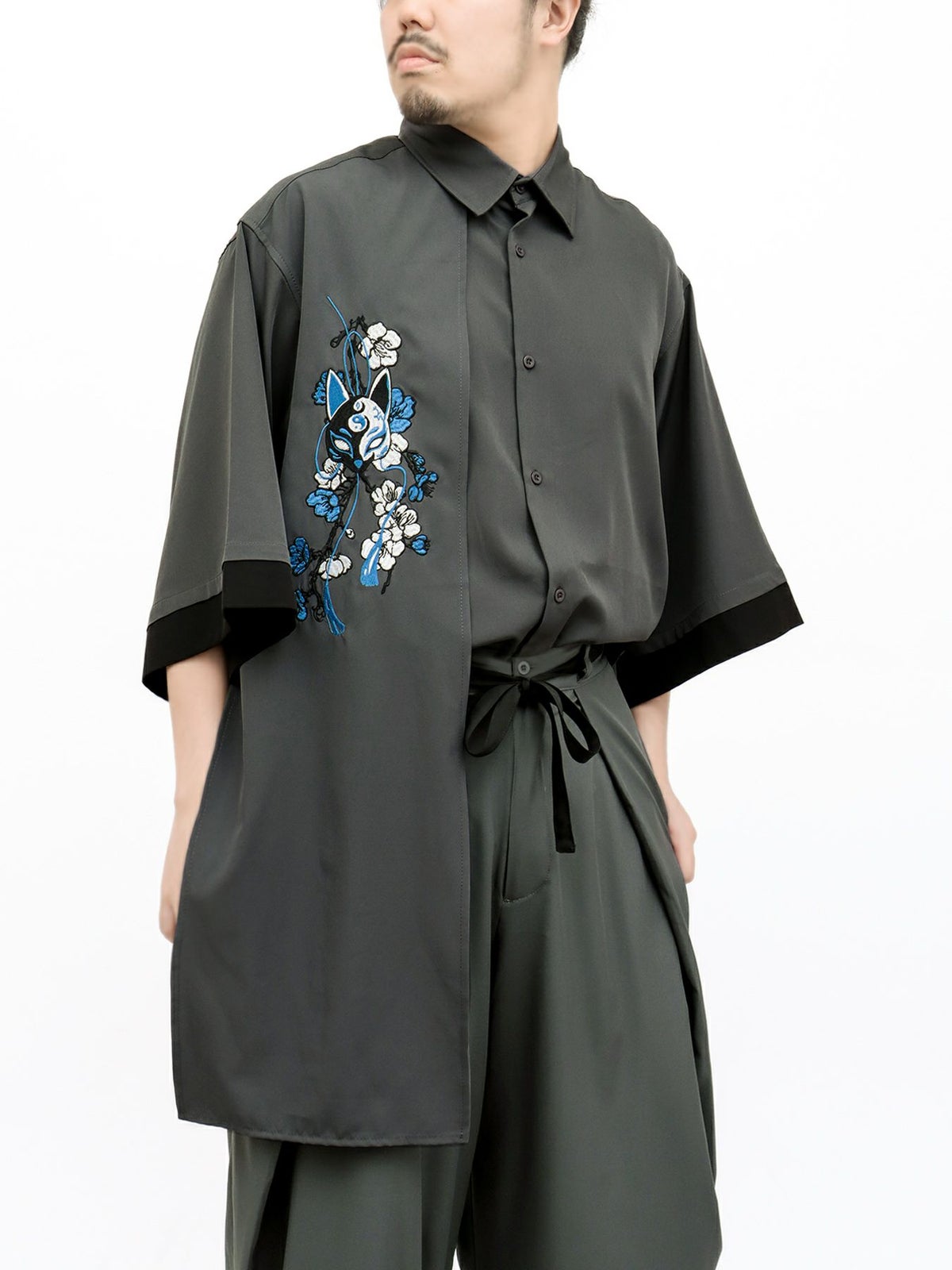 “狐面”総刺繍キモノスリーブ5分袖 変形シャツ