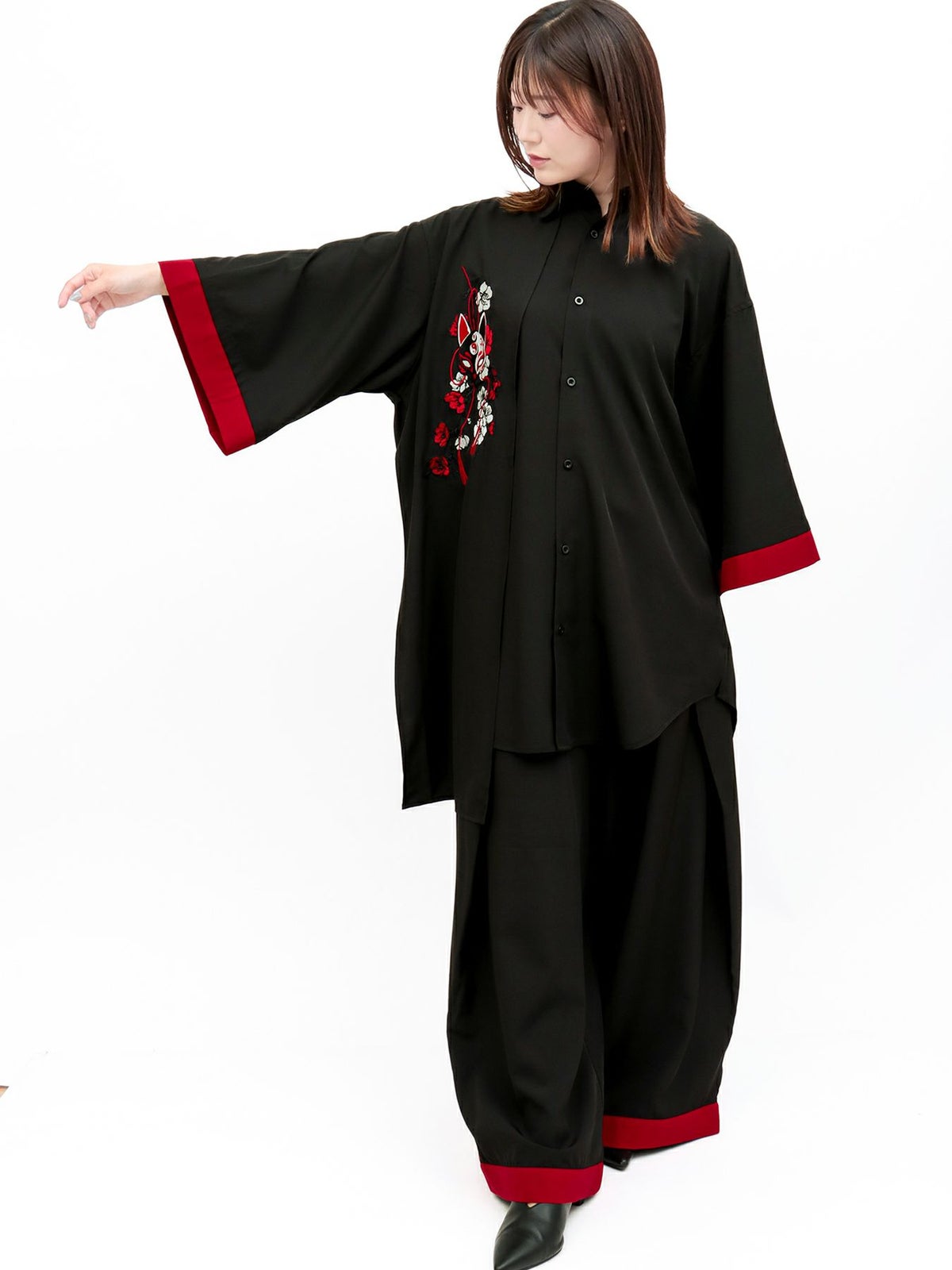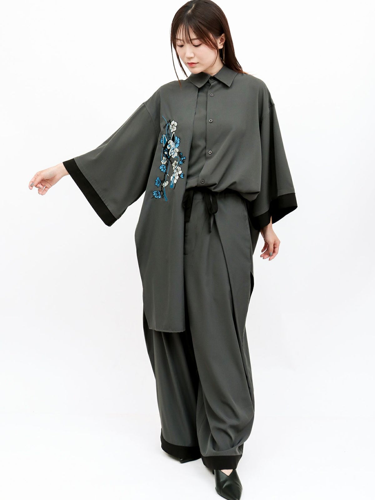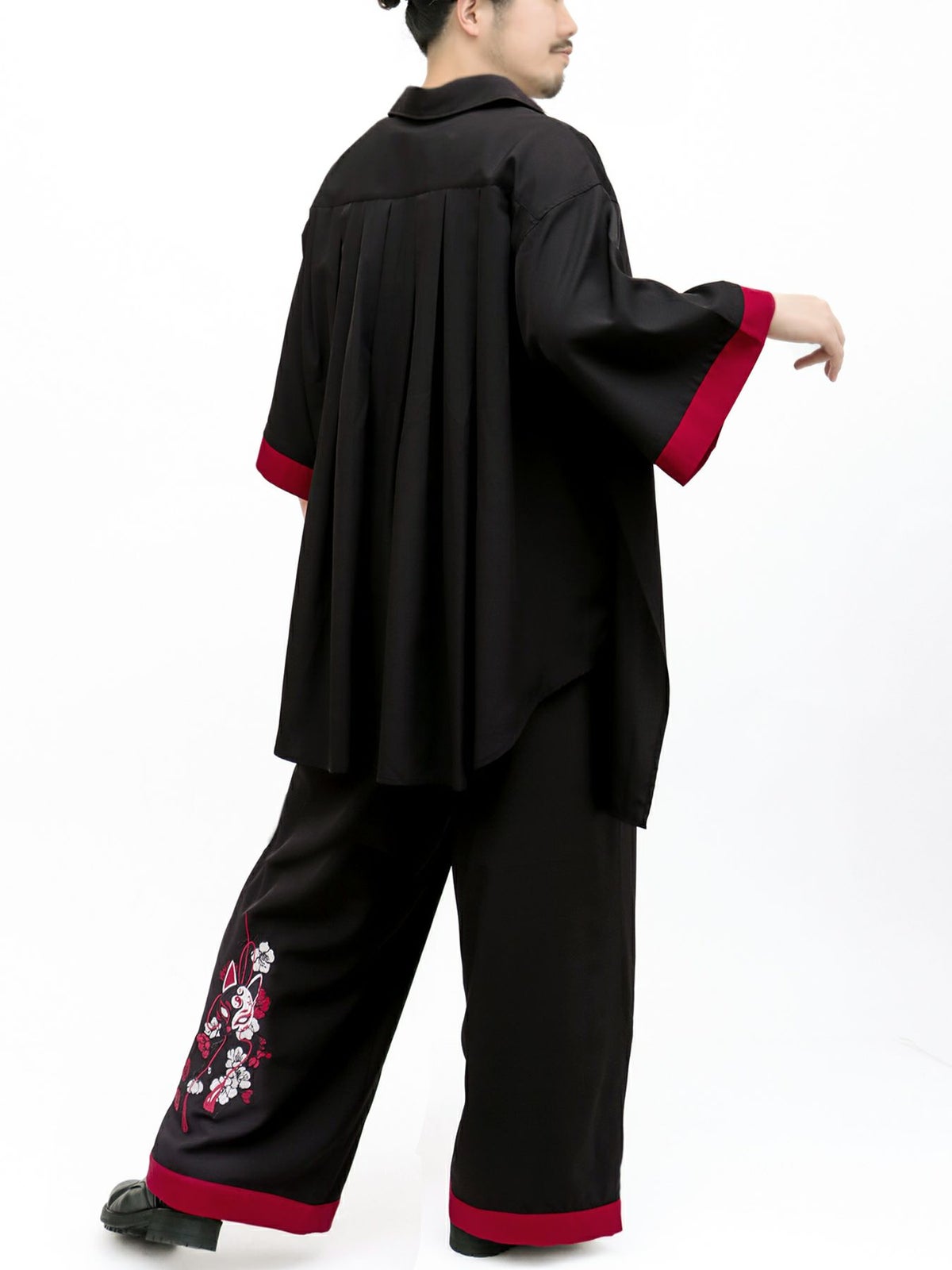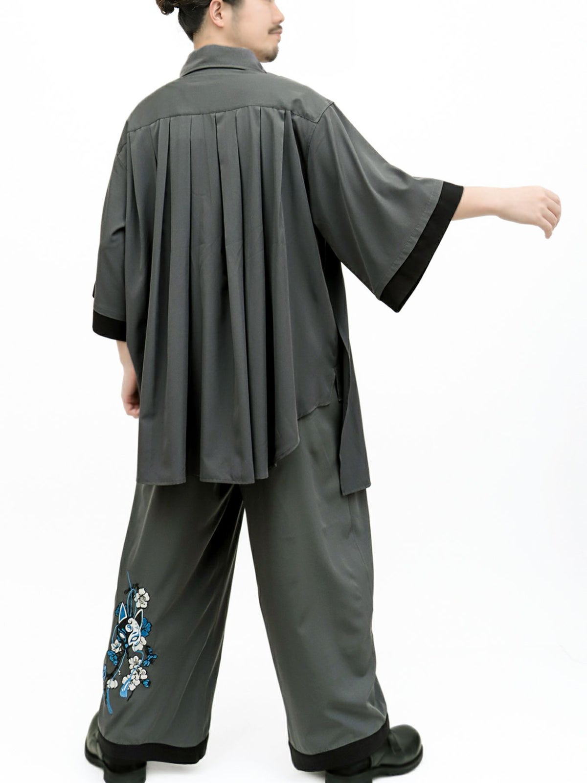 “狐面”総刺繍キモノスリーブ5分袖 変形シャツ