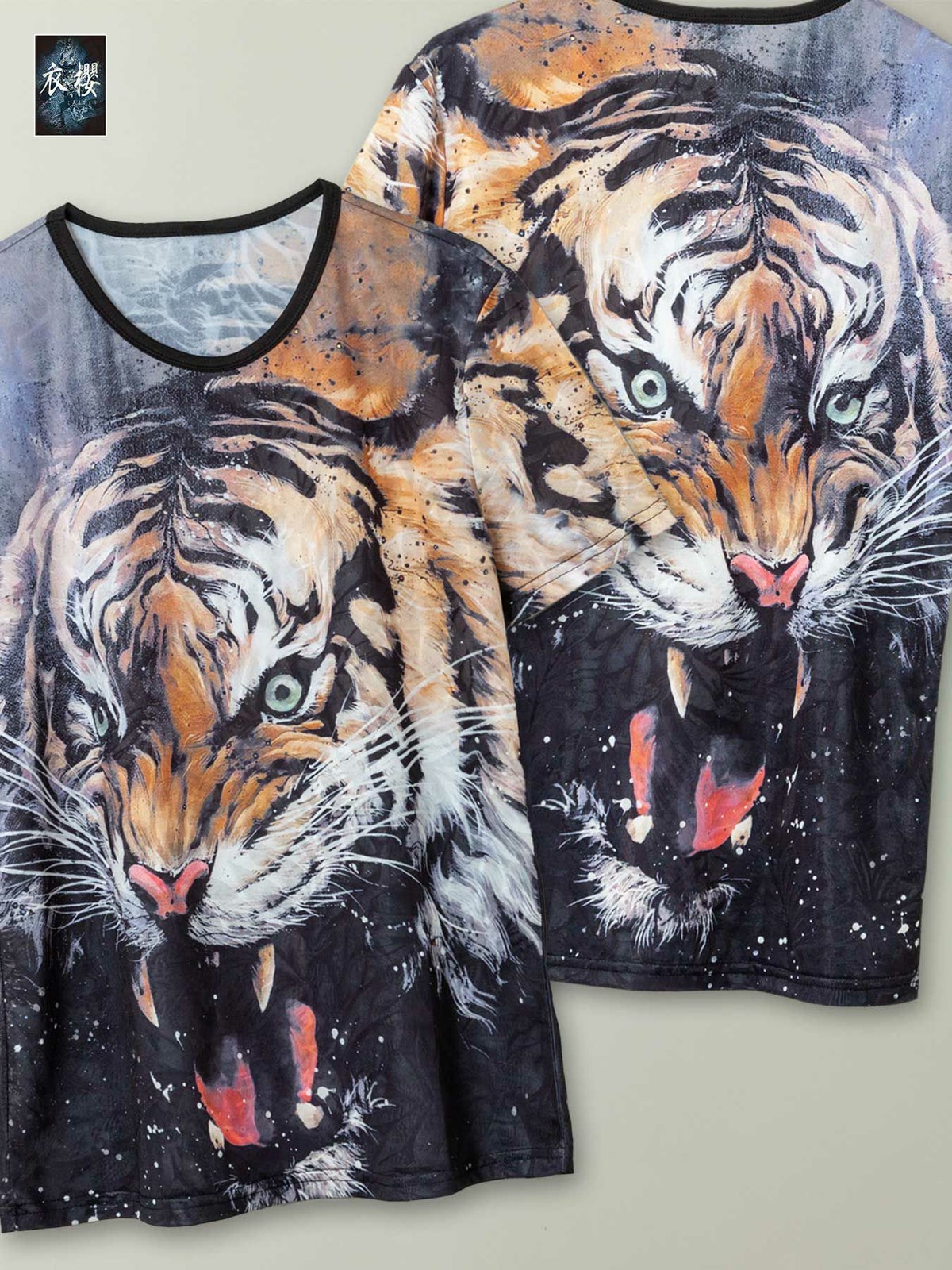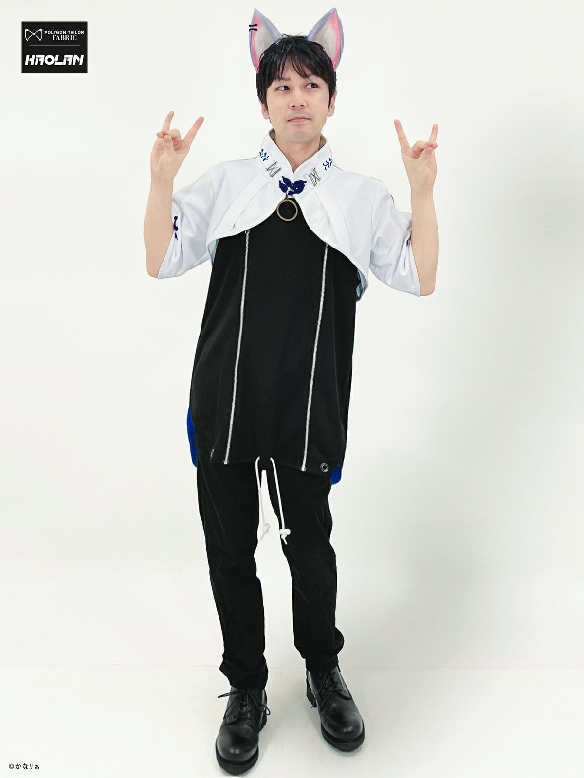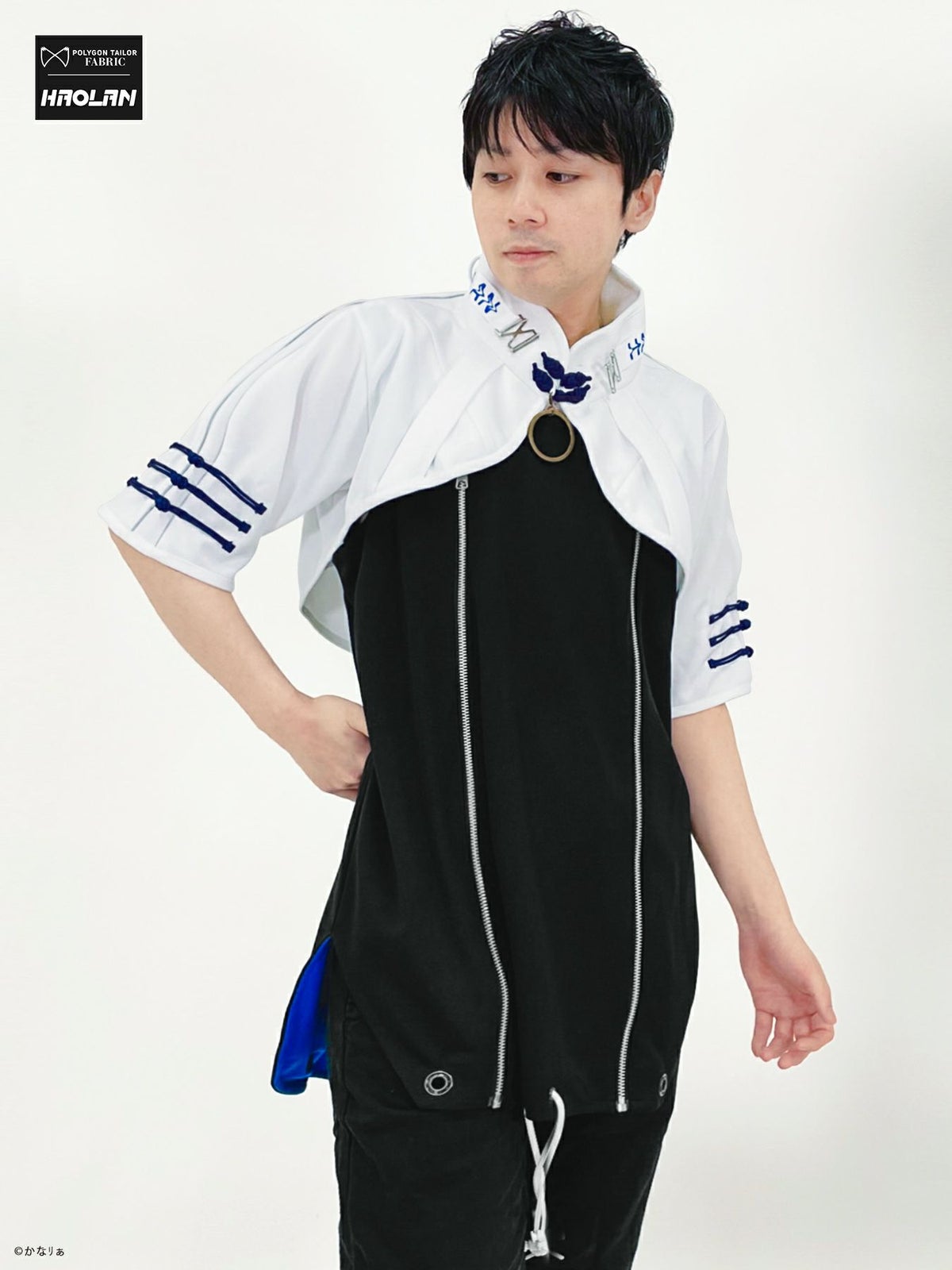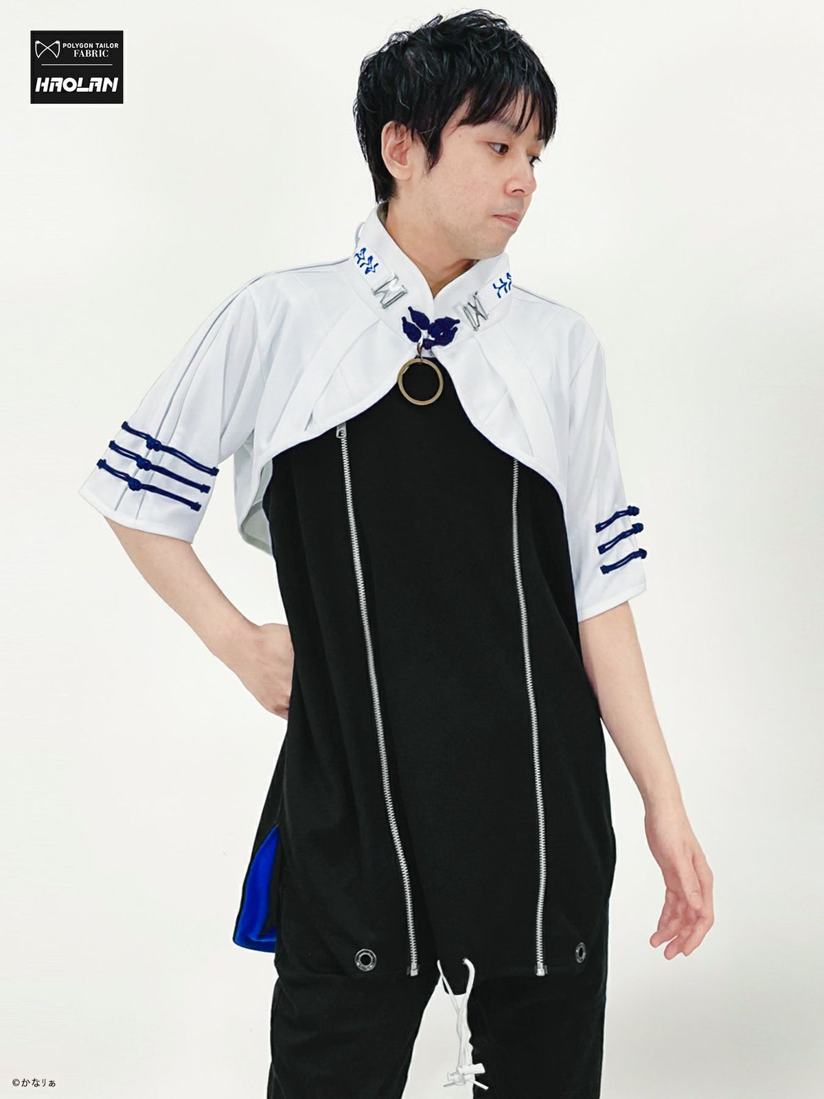 “狐面”総刺繍キモノスリーブ5分袖 変形シャツ