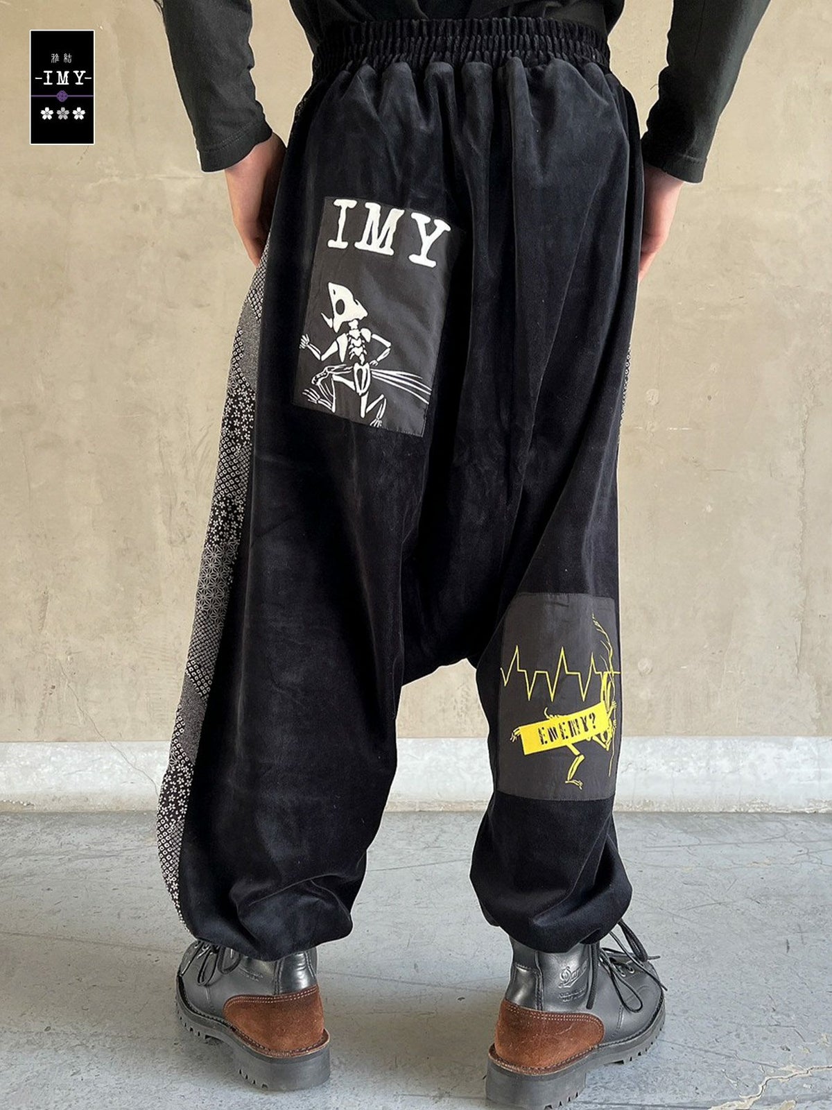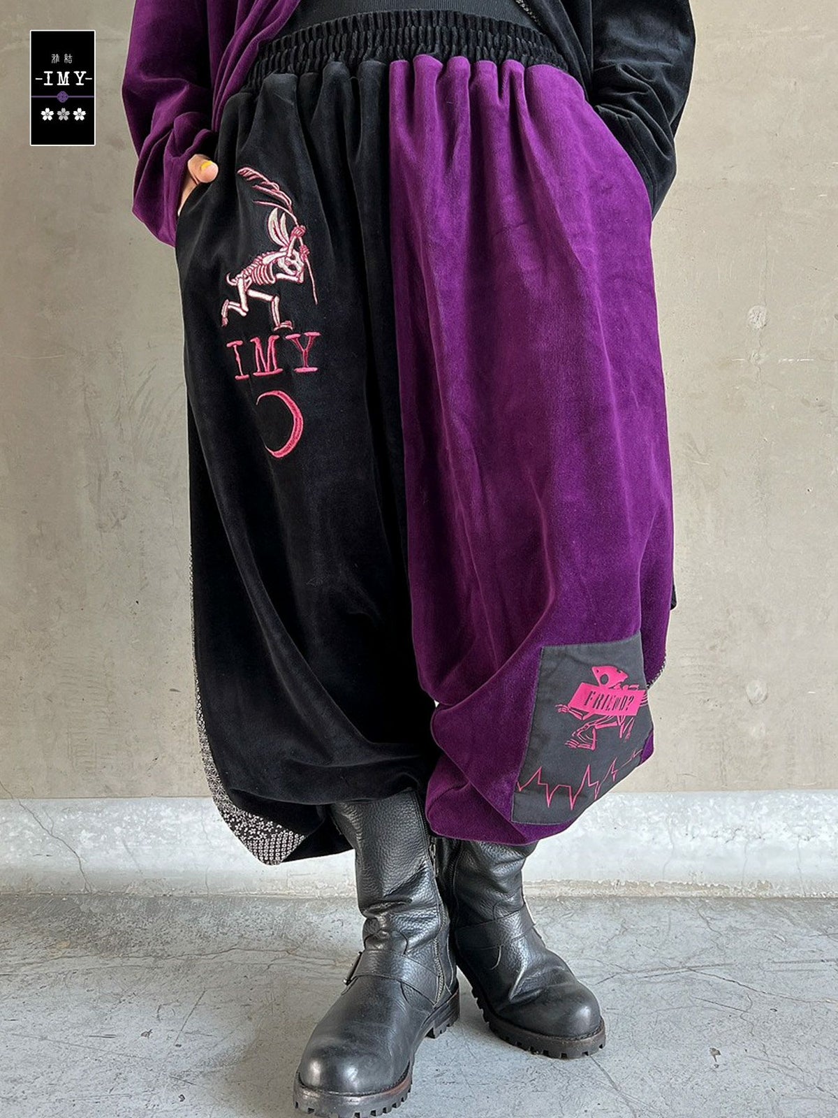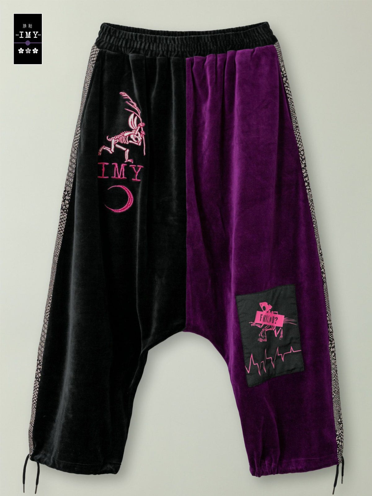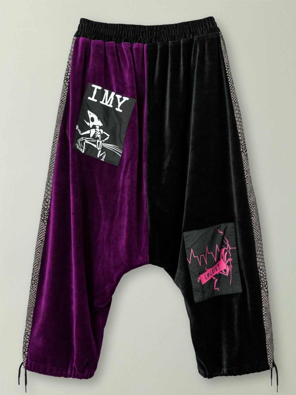 “レントゲン鳥獣戯画”ちりめん切替ベロア素材サルエルパンツ≪返品・取寄対応不可≫