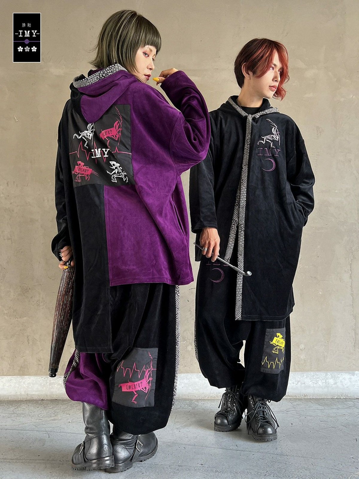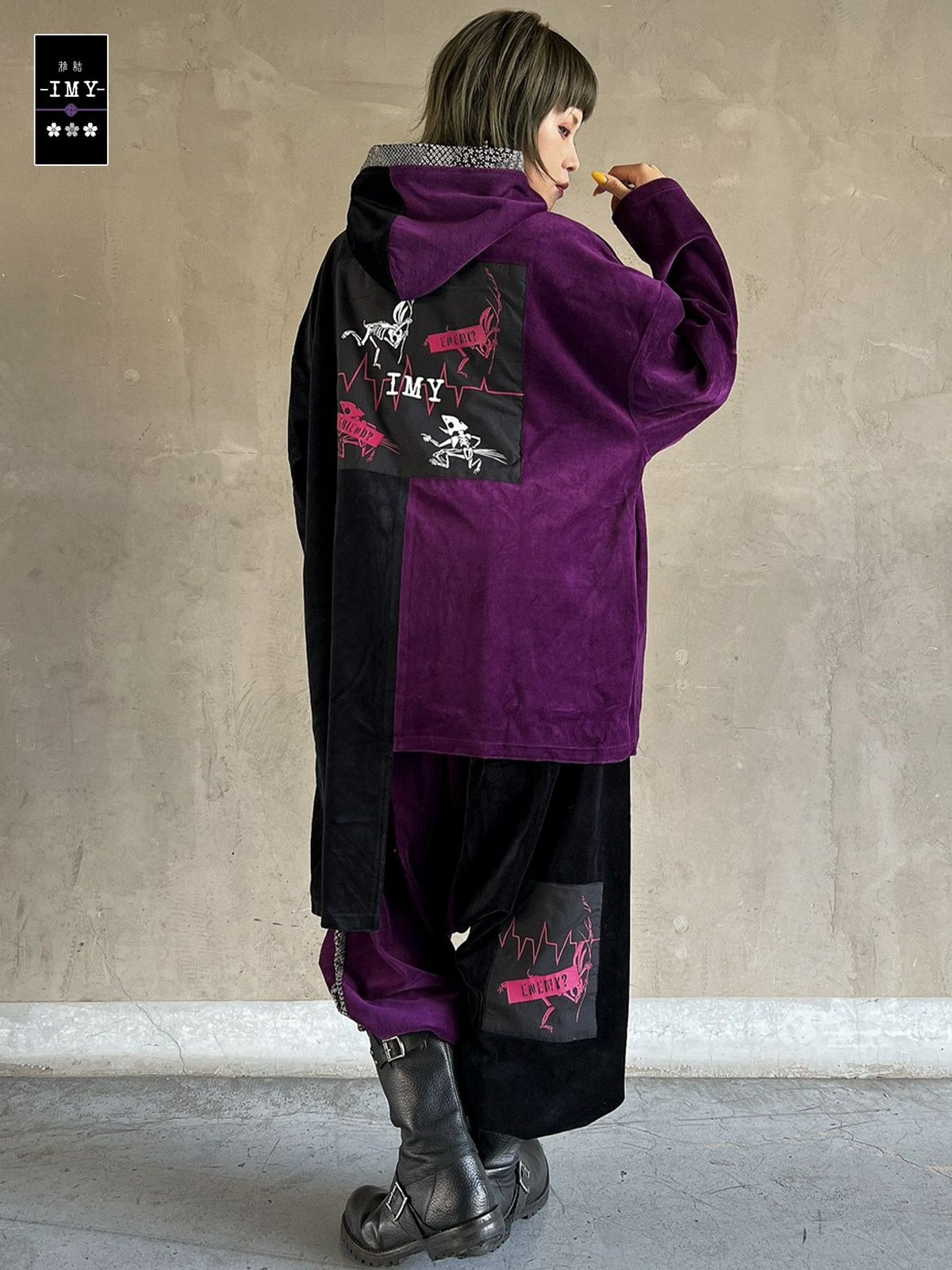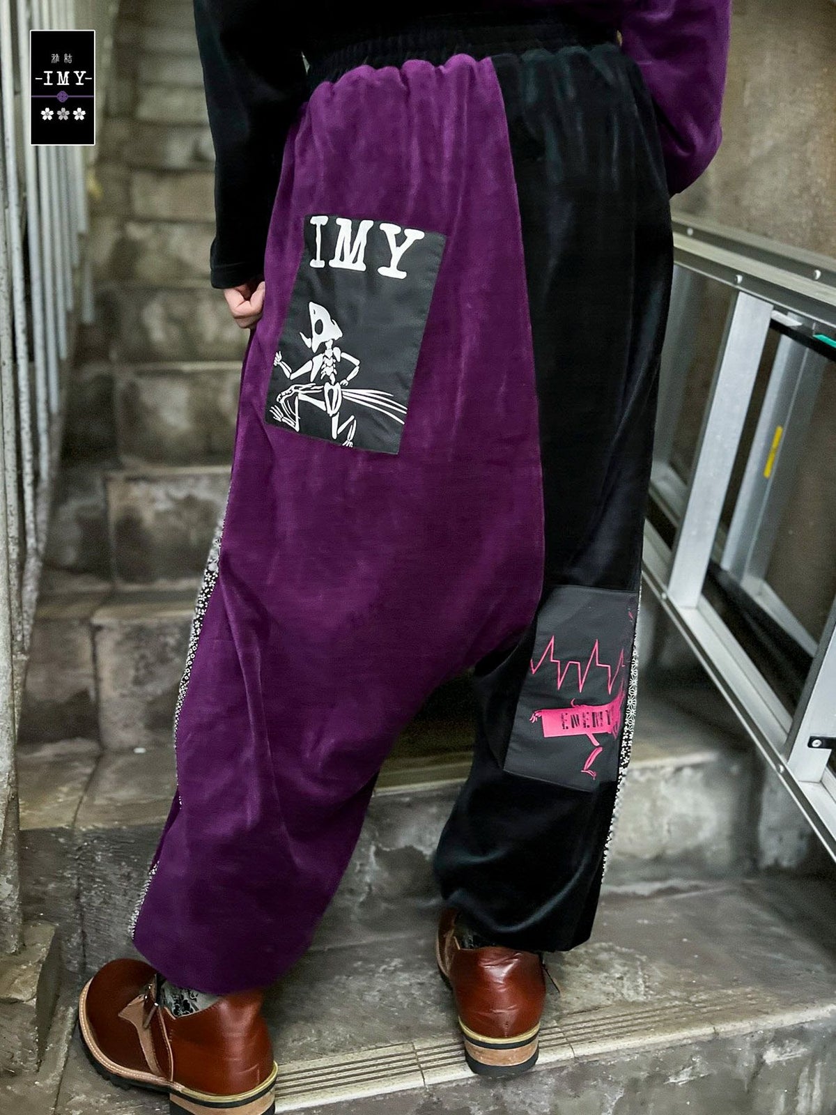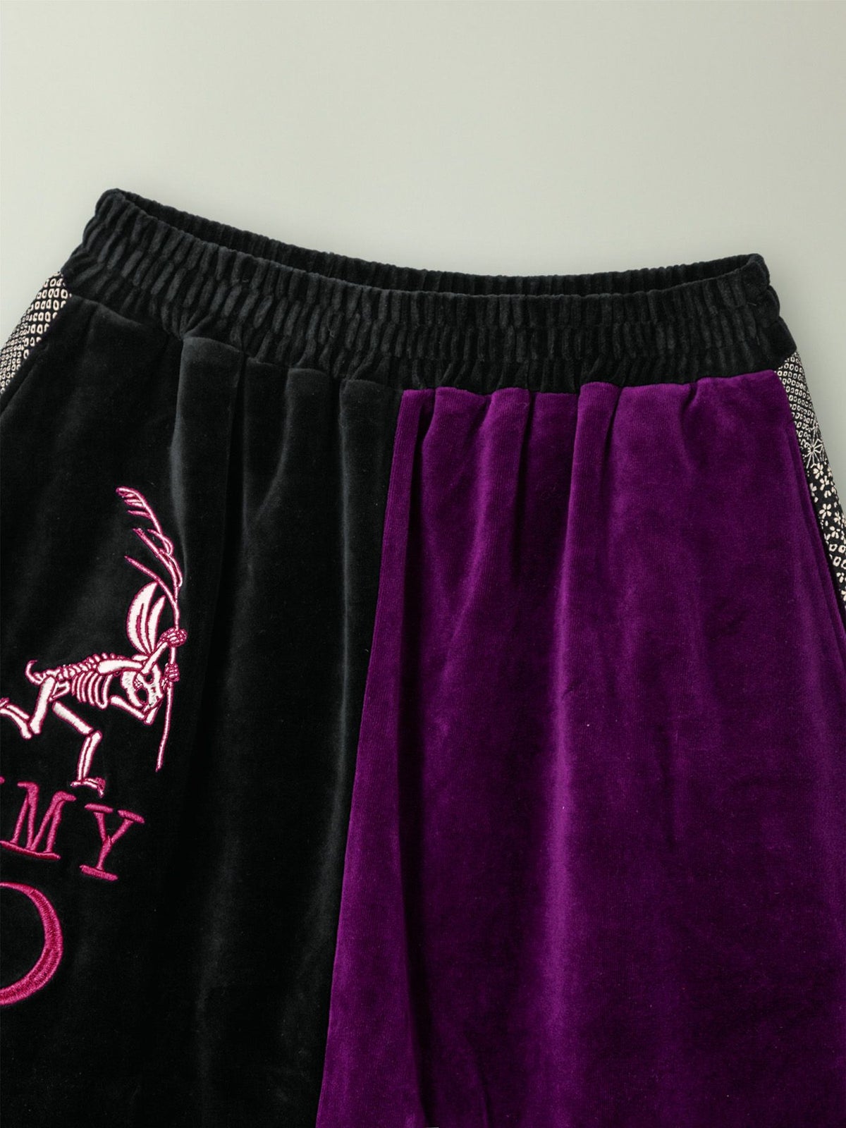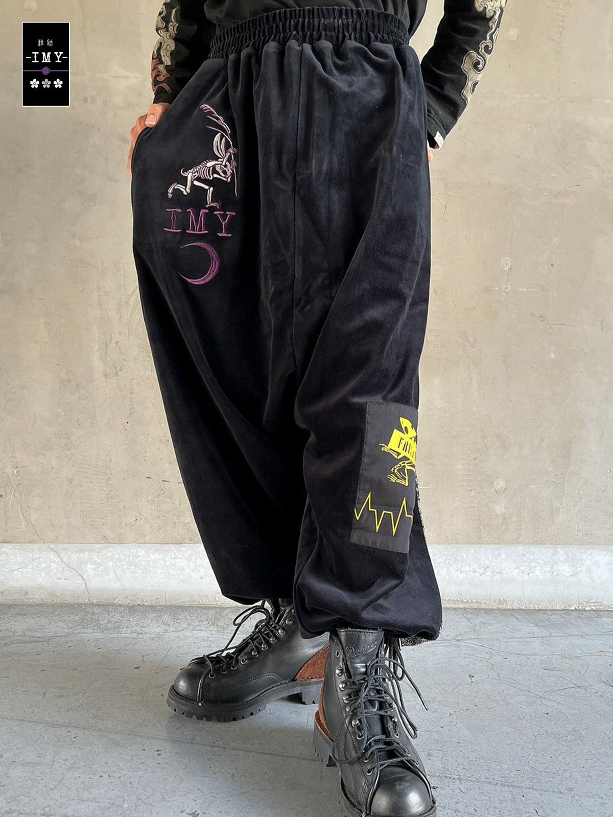 “レントゲン鳥獣戯画”ちりめん切替ベロア素材サルエルパンツ≪返品・取寄対応不可≫