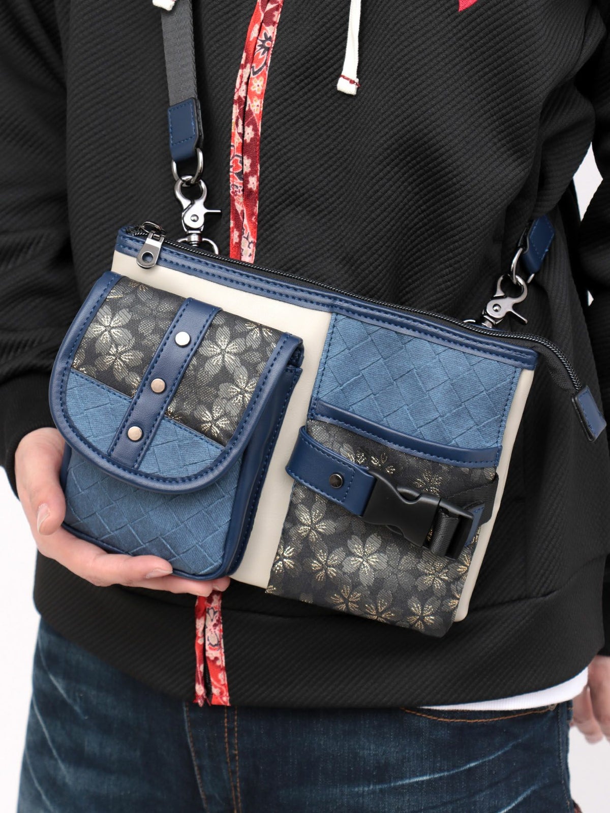 桜金襴切り替え 横型シザーバッグ