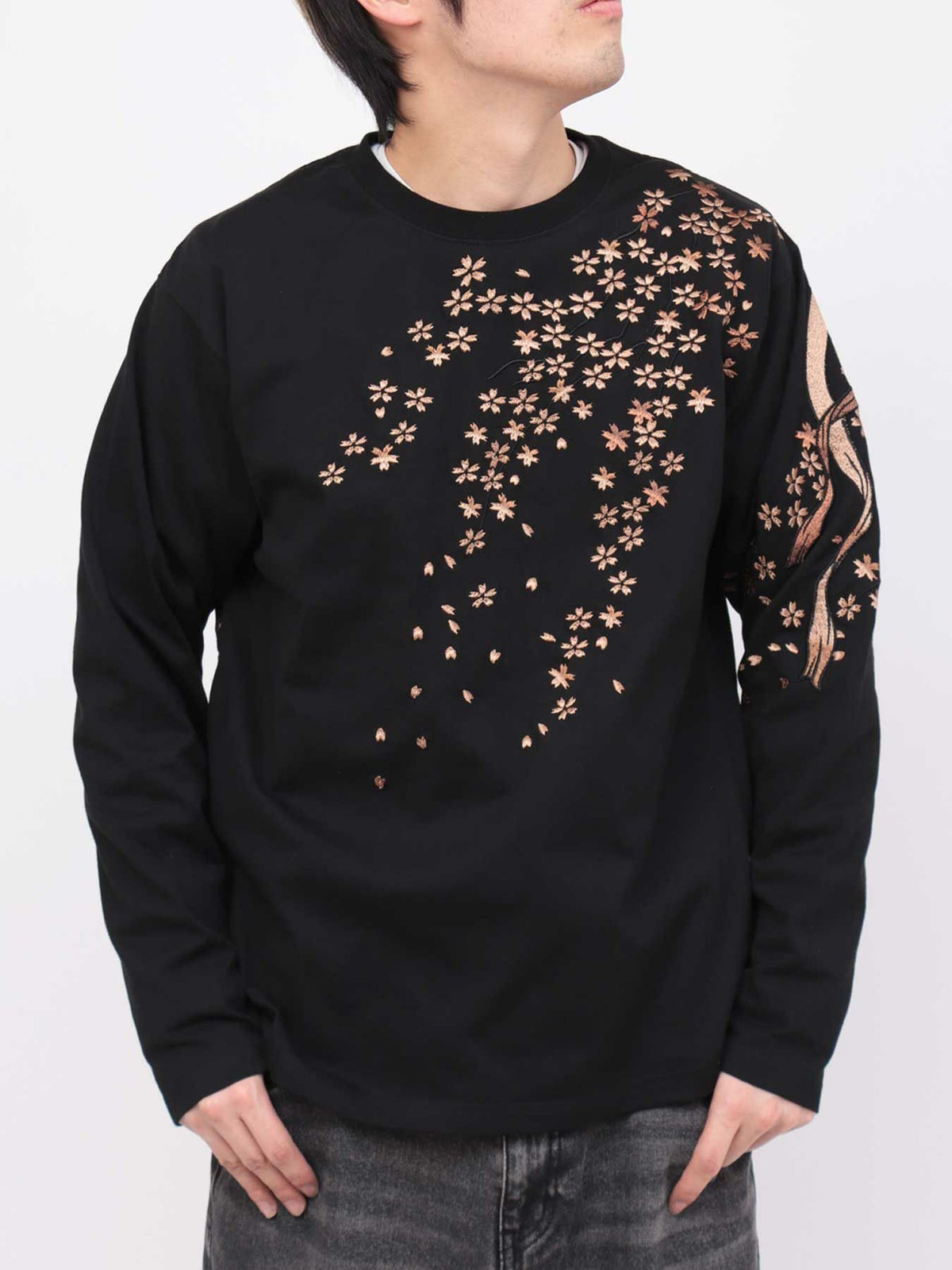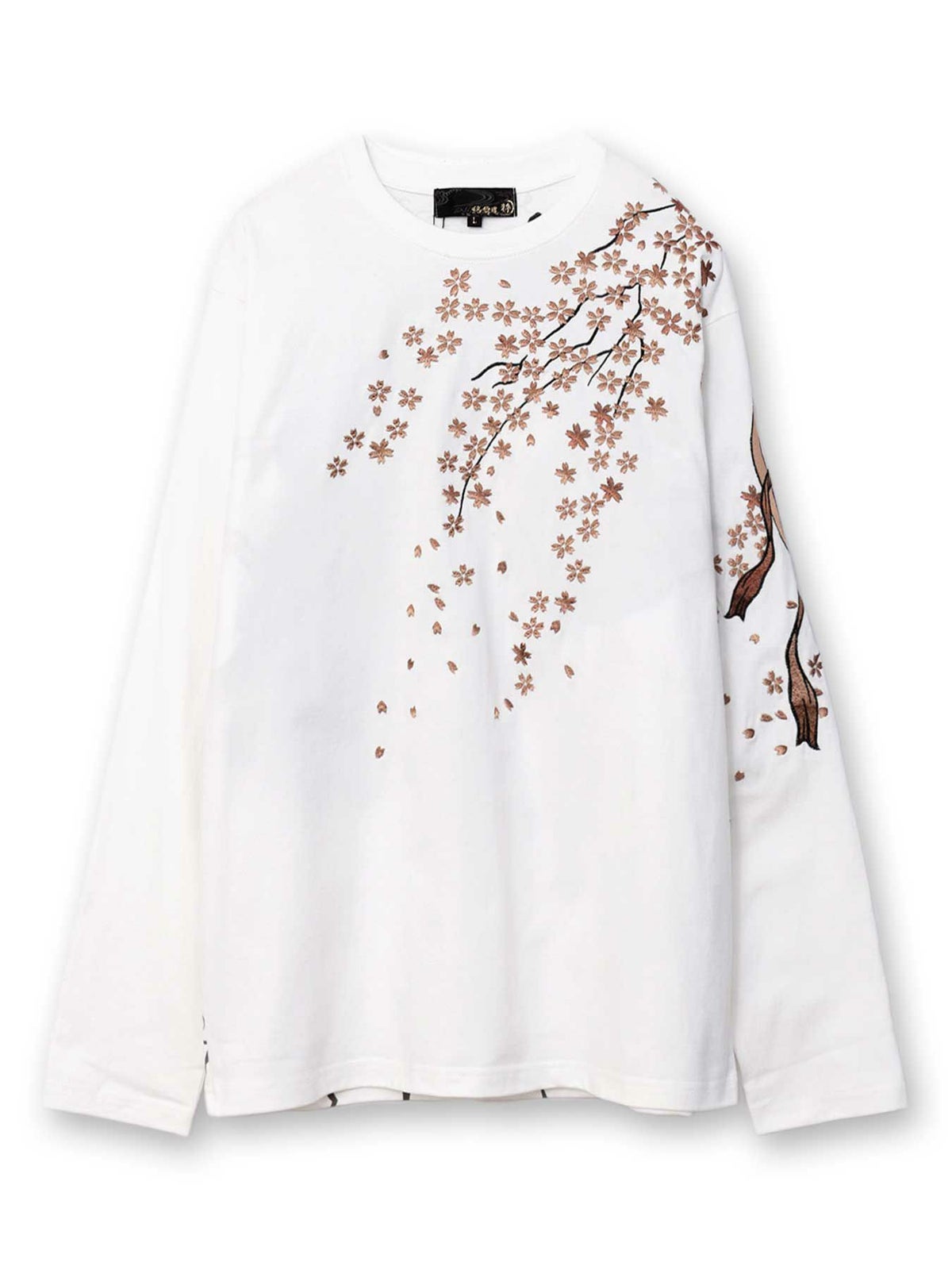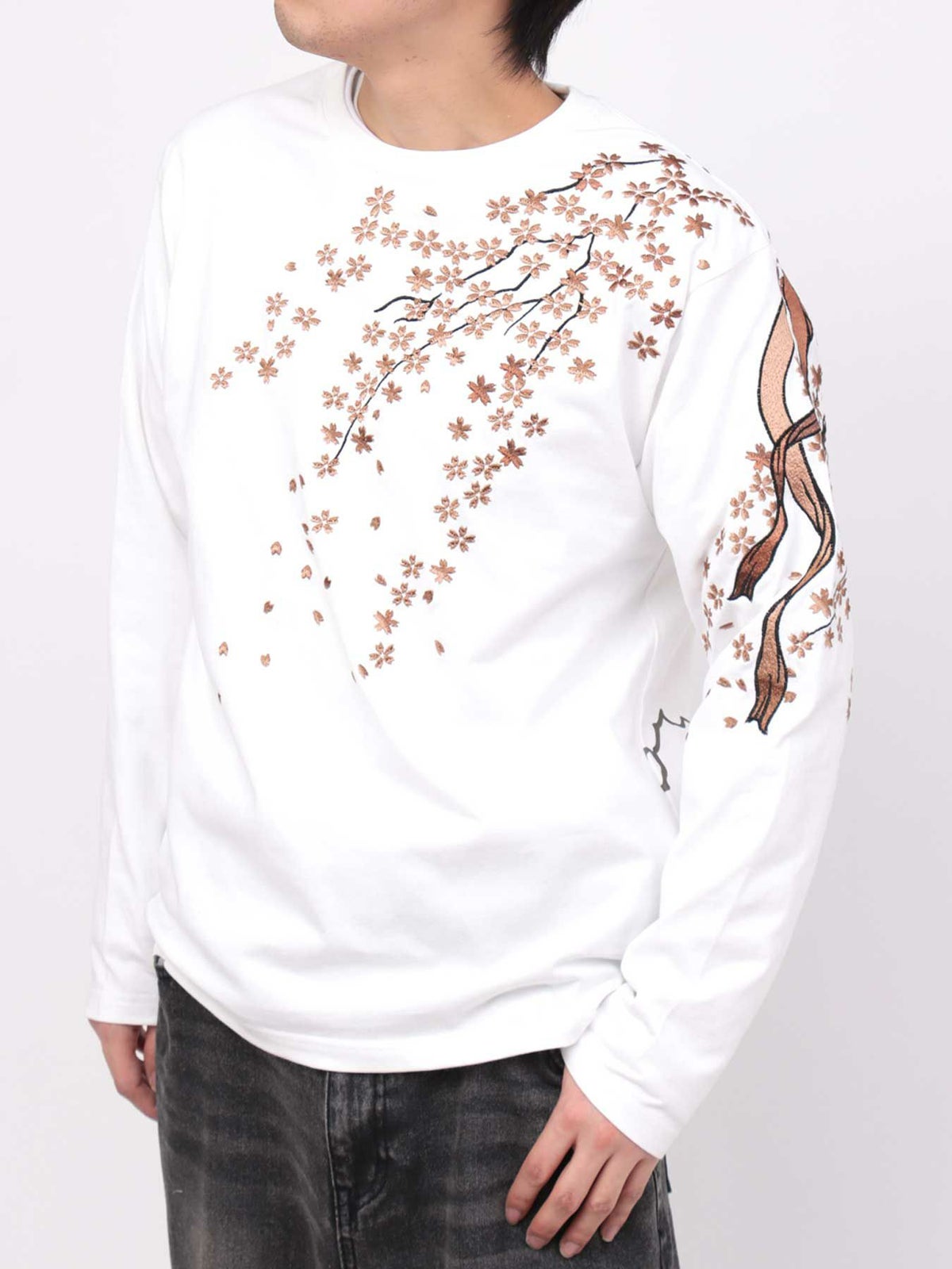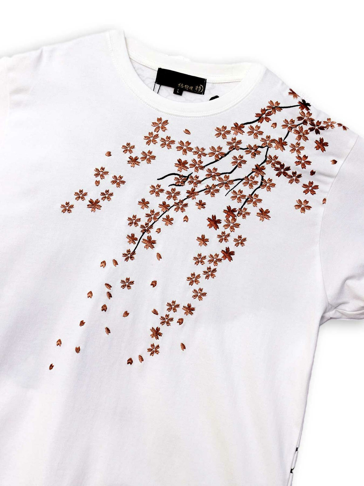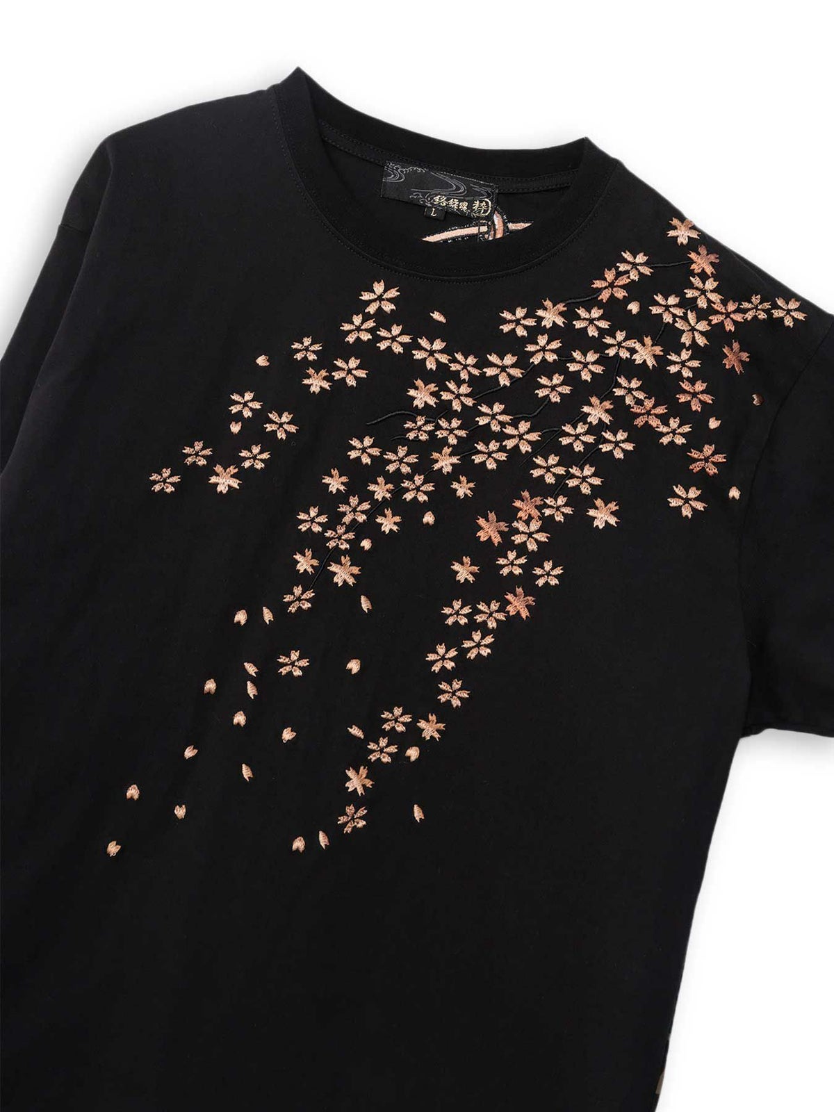 桜刺繍梨地素材 切り替えTシャツ≪返品・取寄対応不可≫