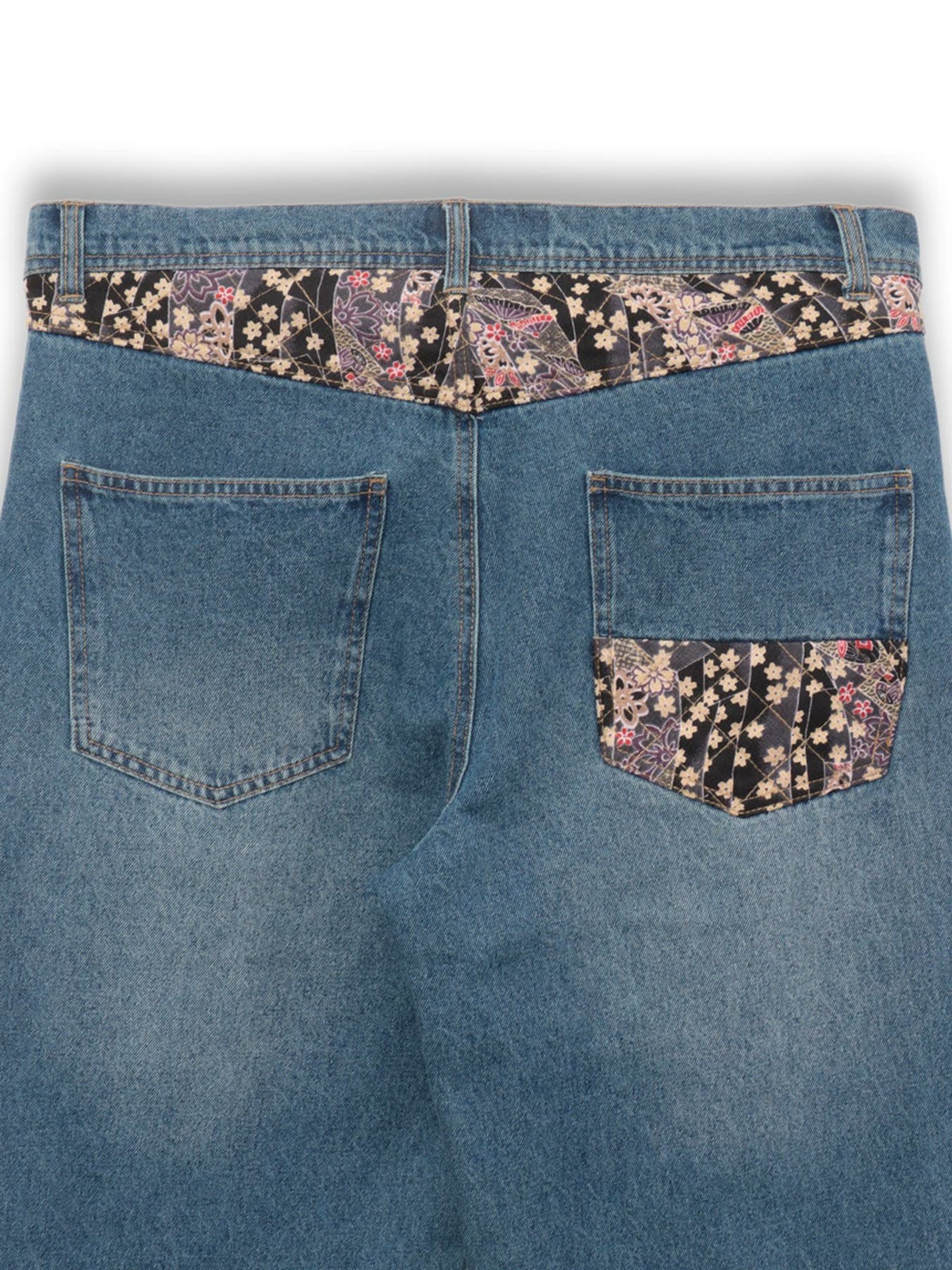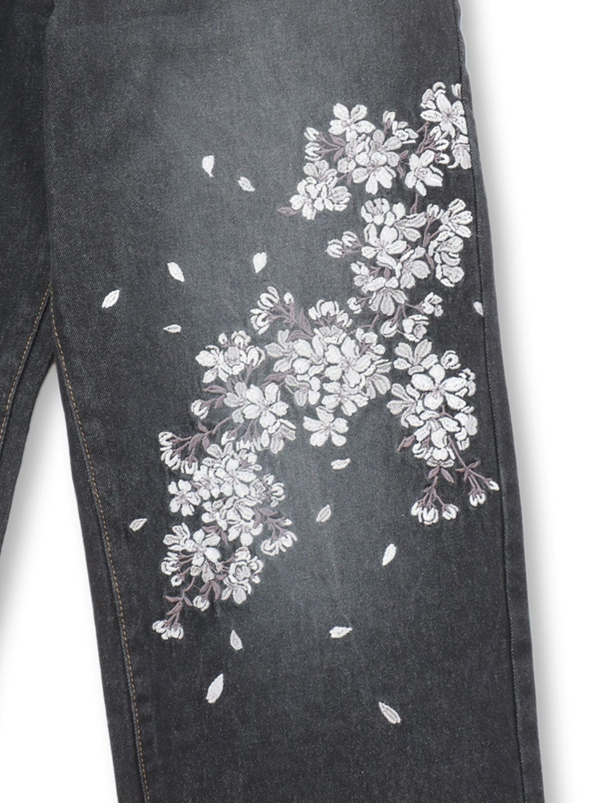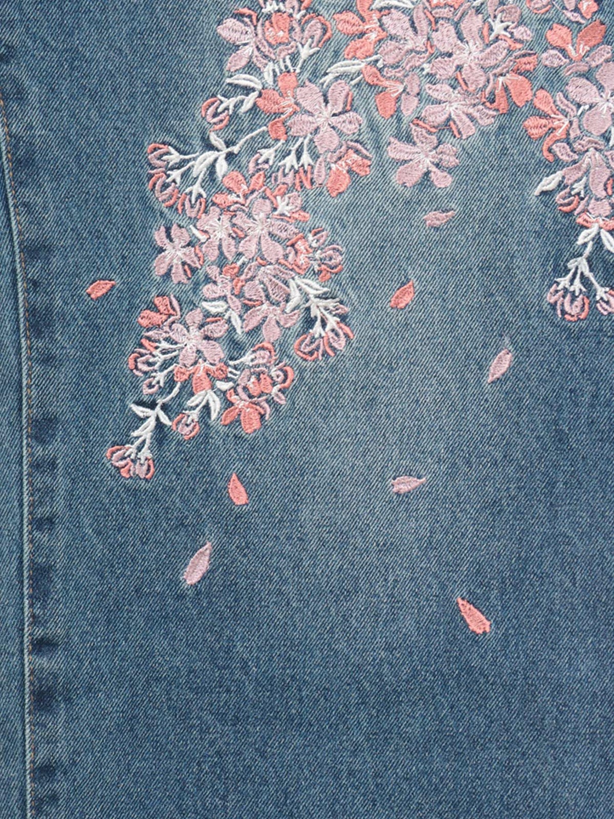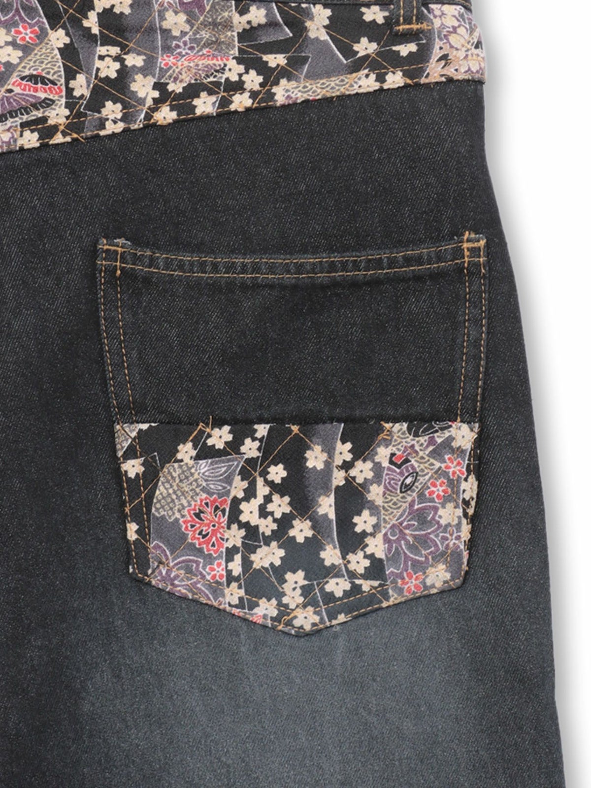 桜刺繍 ちりめん切替デニムパンツ