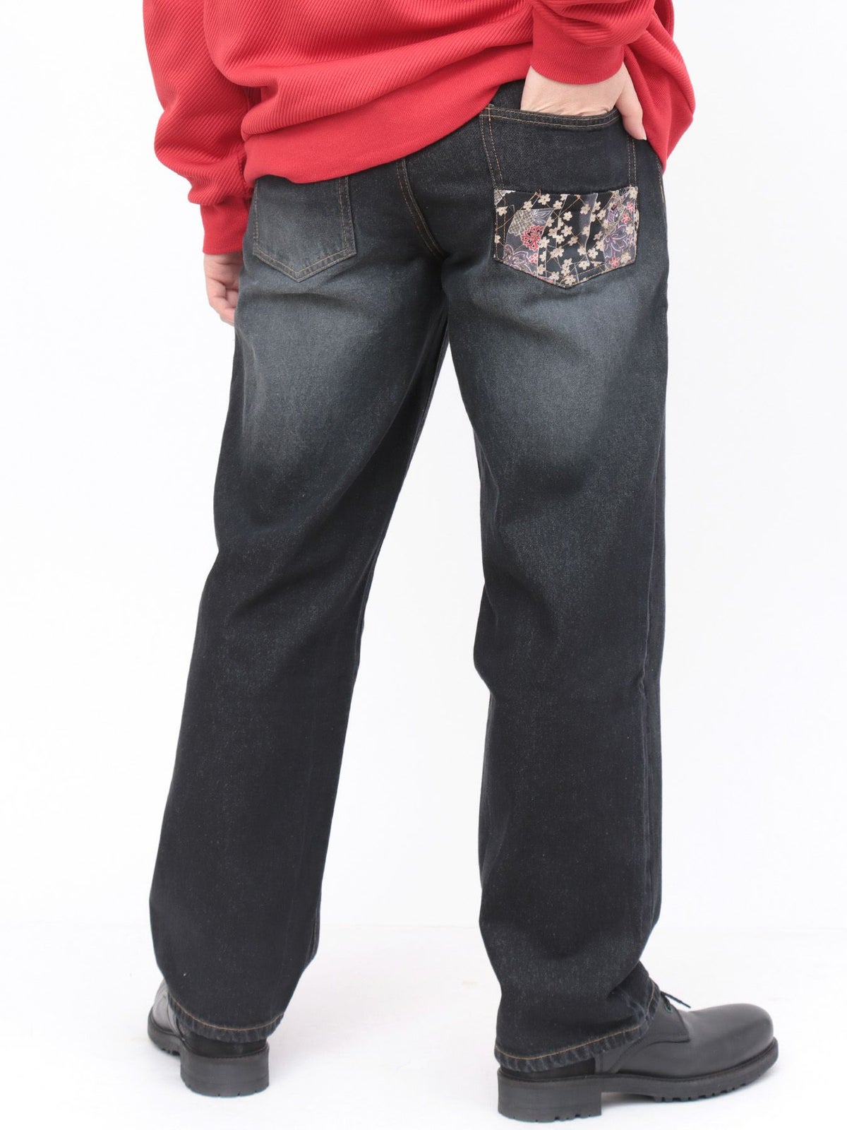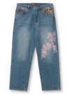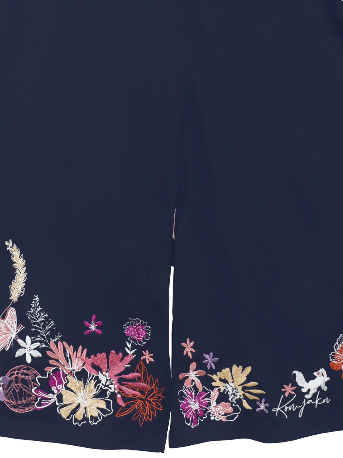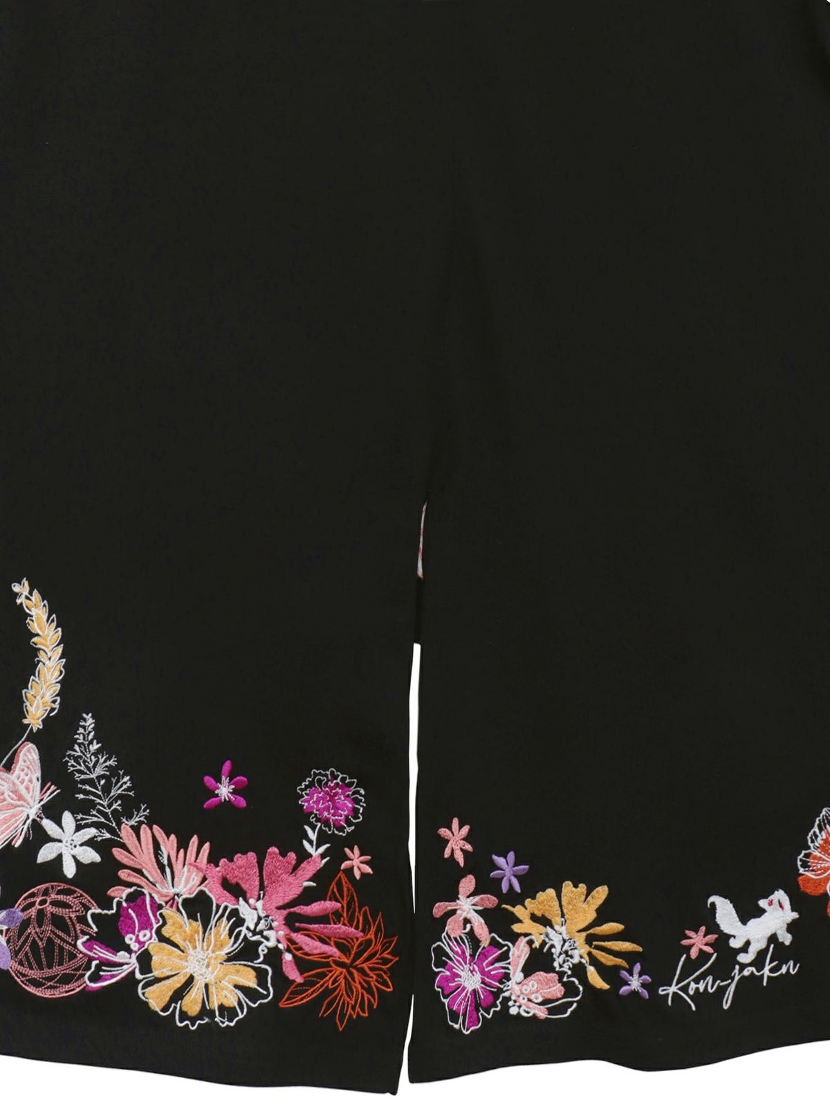 桜刺繍 ちりめん切替デニムパンツ