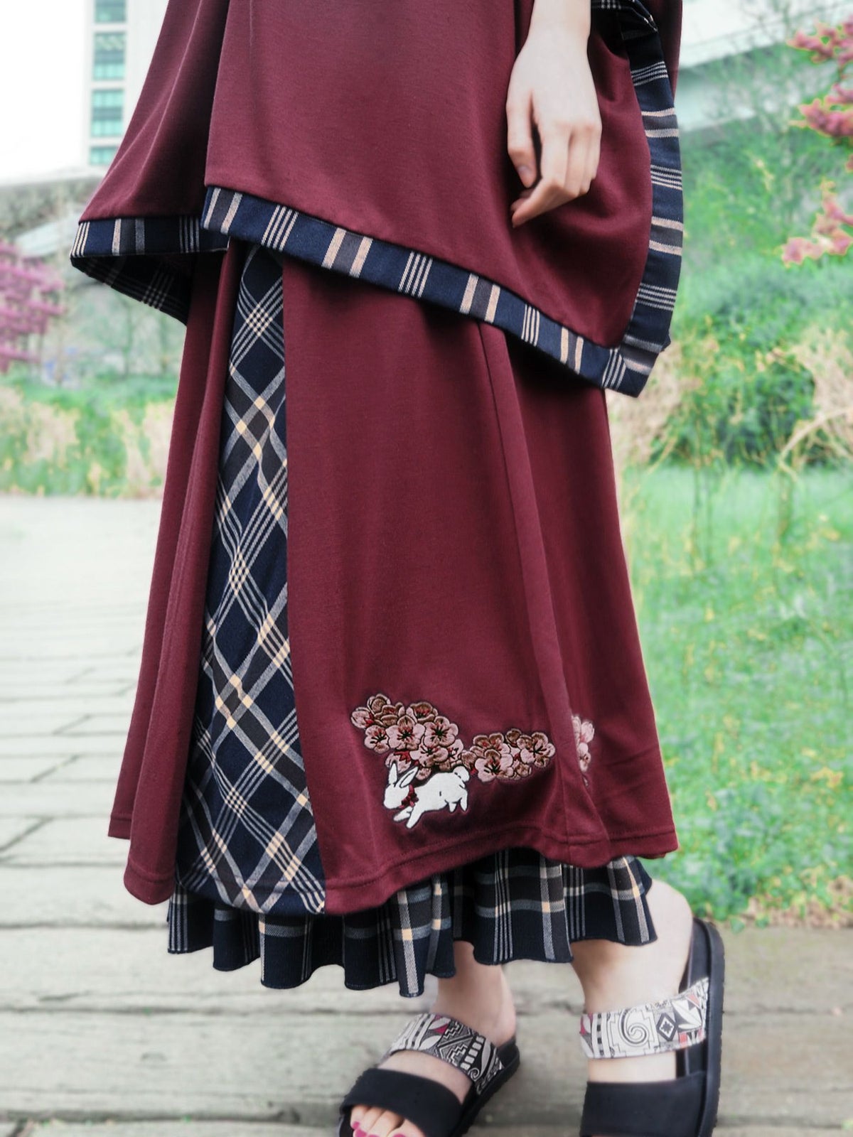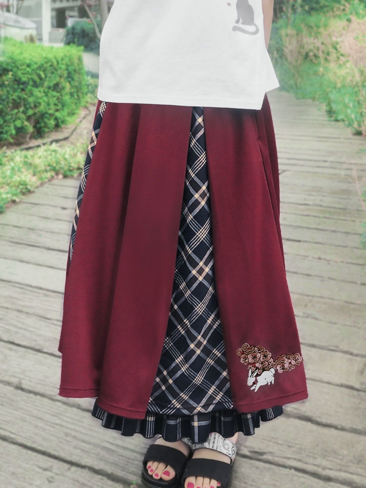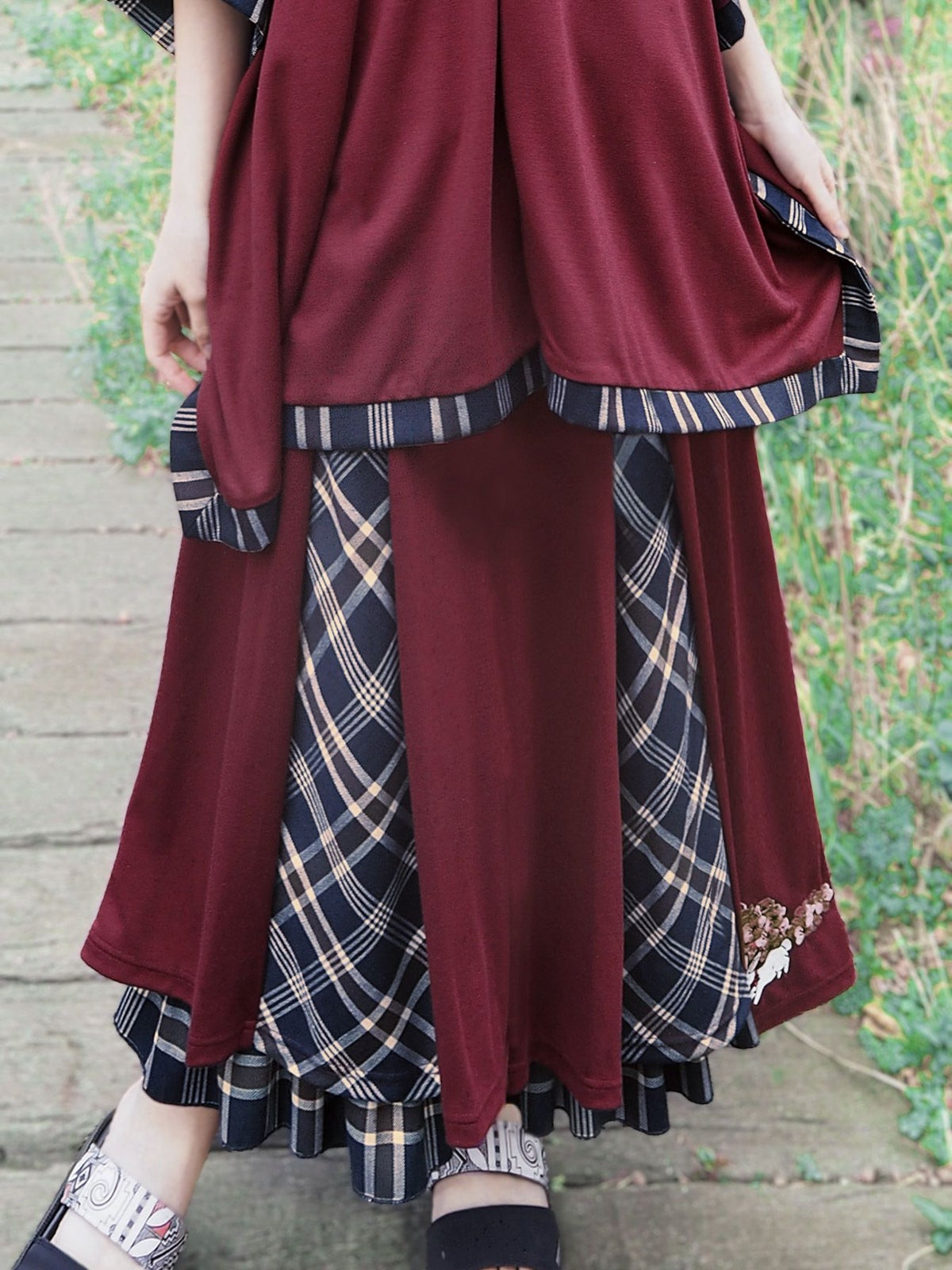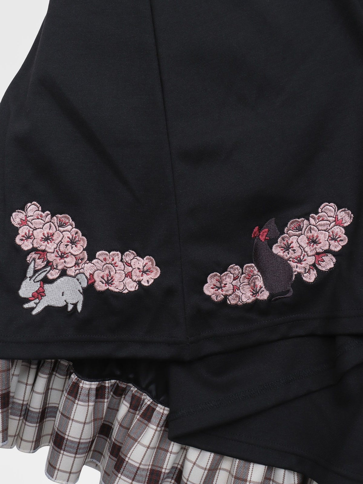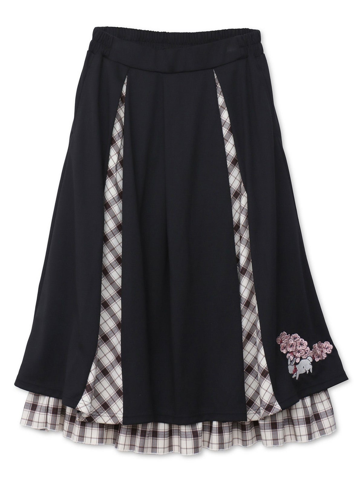 “白ウサギと黒ネコ”チェック切替ロングスカート≪返品・取寄対応不可≫