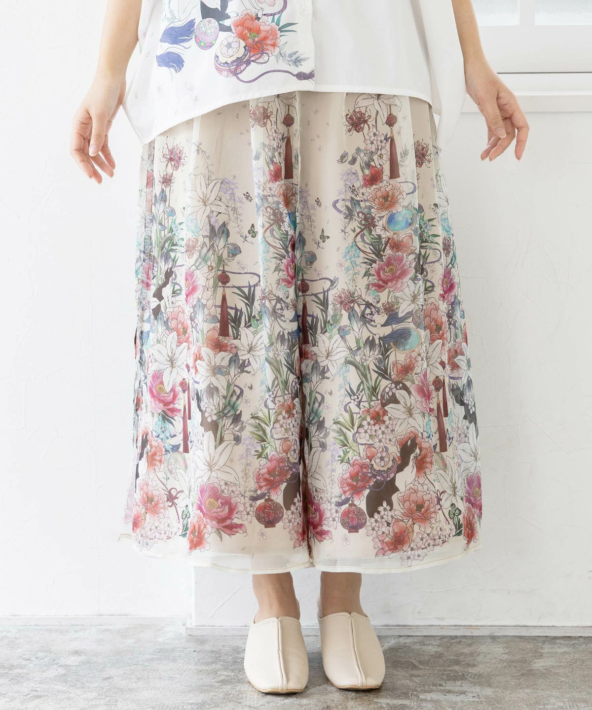 コラボ 和風花柄シフォン重ねパンツ≪返品・取寄対応不可≫