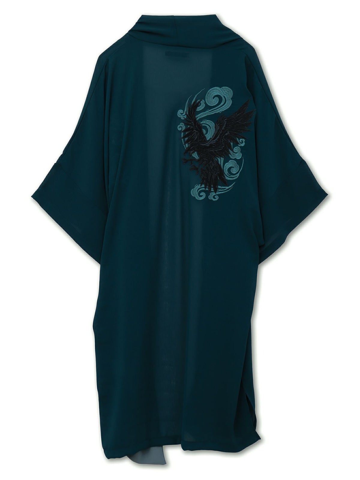 八咫烏刺繍 楊柳素材 着物ロングカーディガン