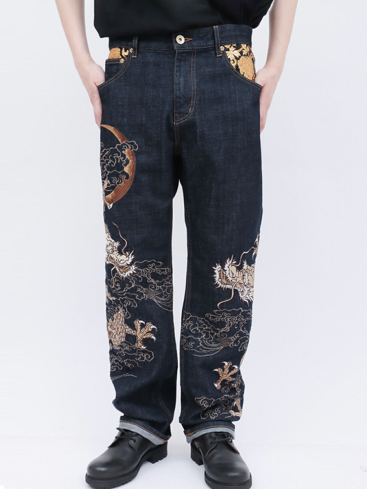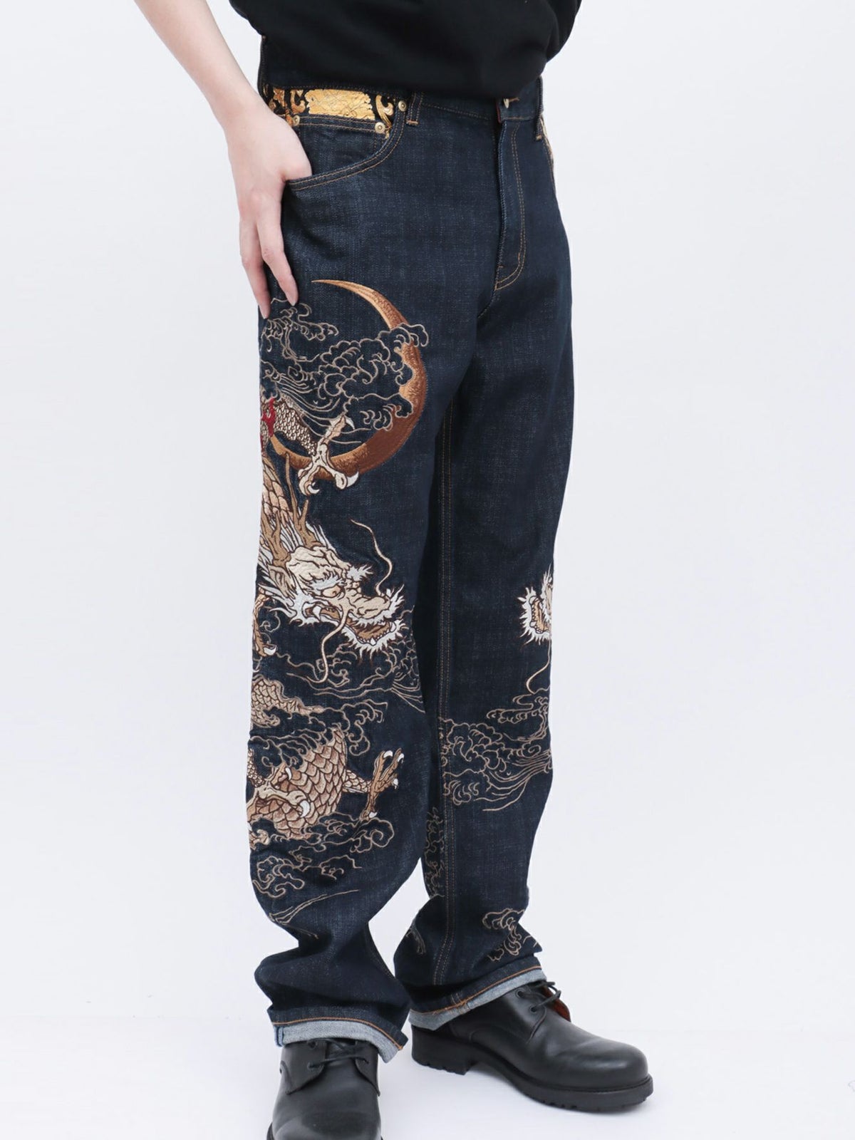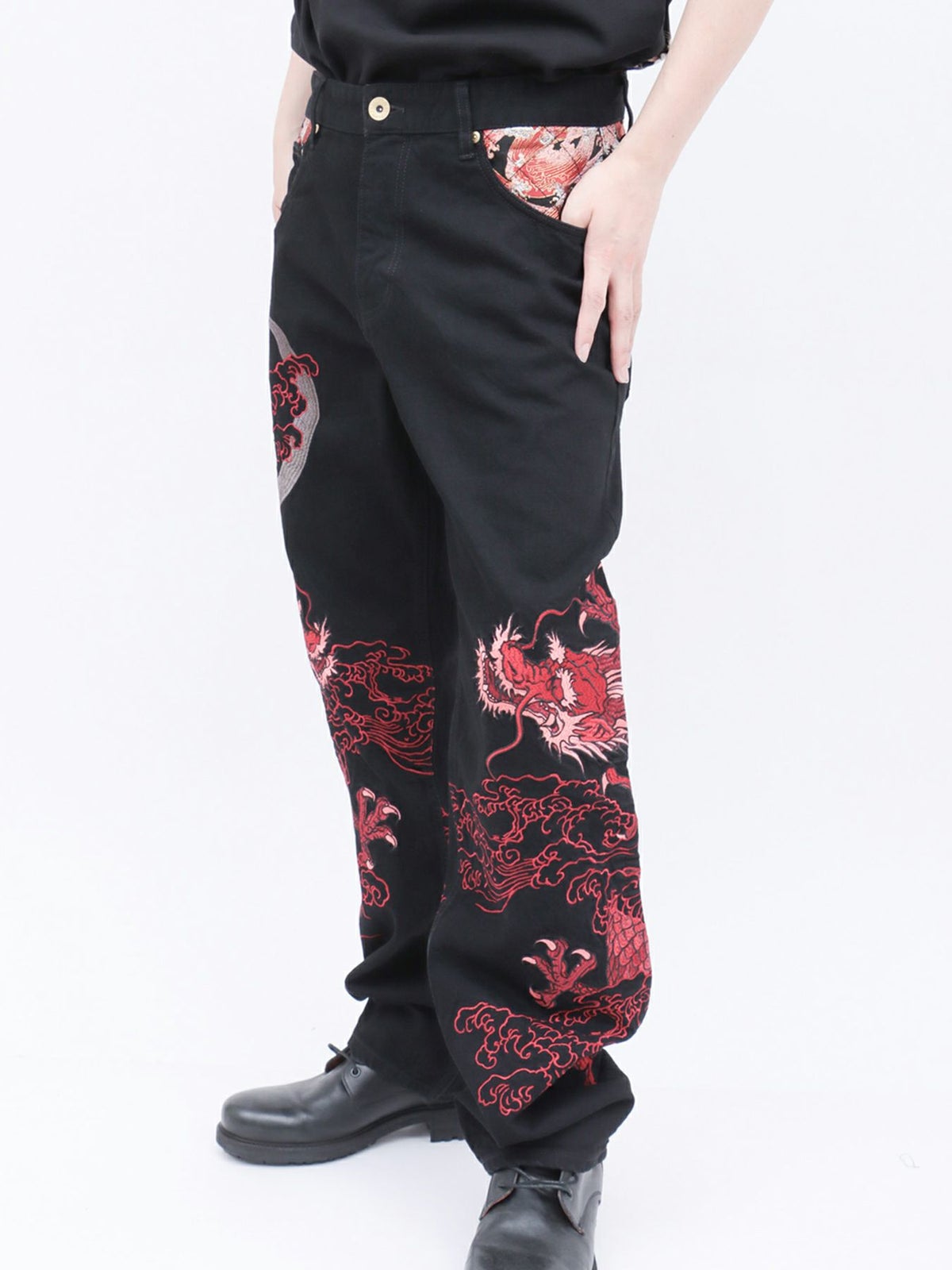 “月光双龍”総刺繍デニムパンツ