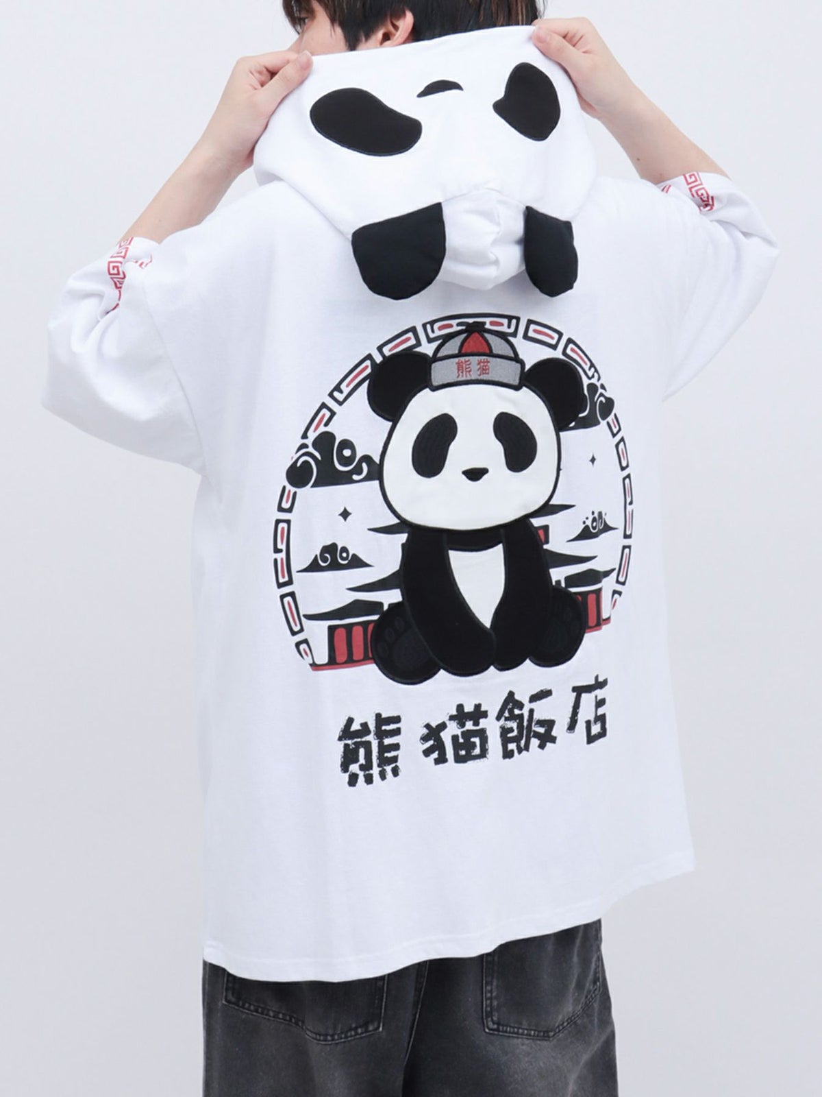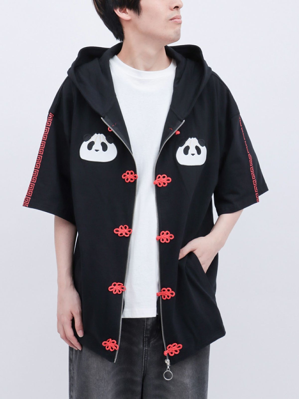 “中華屋パンダさん”BIGシルエット半袖ZIPパーカー