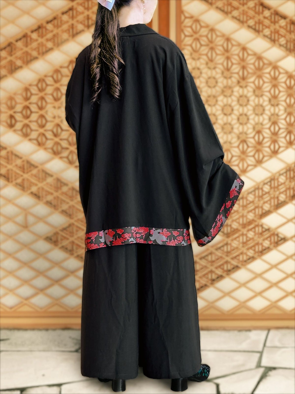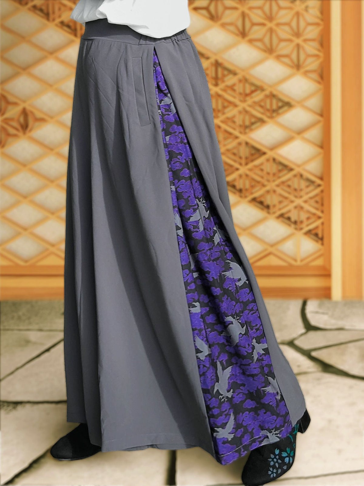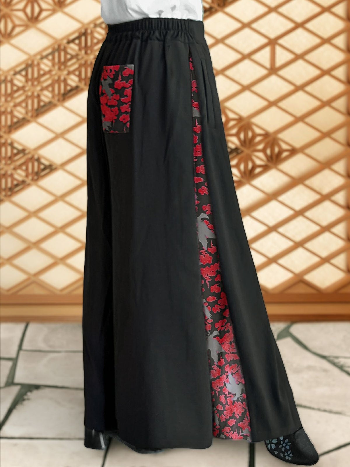 “八咫烏と雲”和生地遣いハカマガウチョパンツ