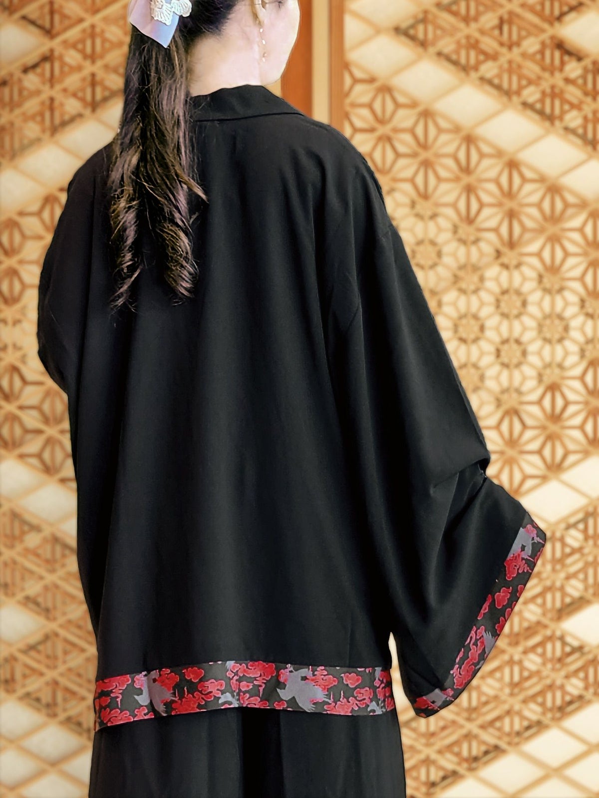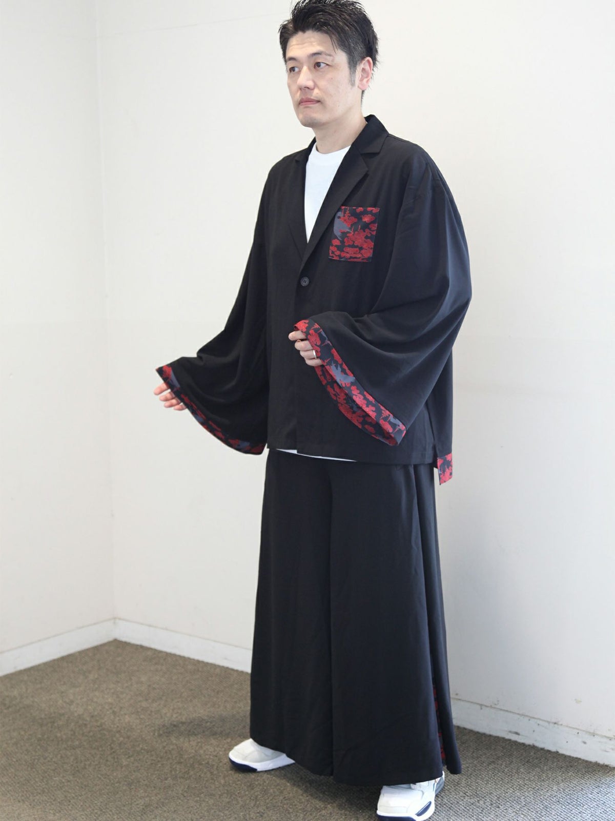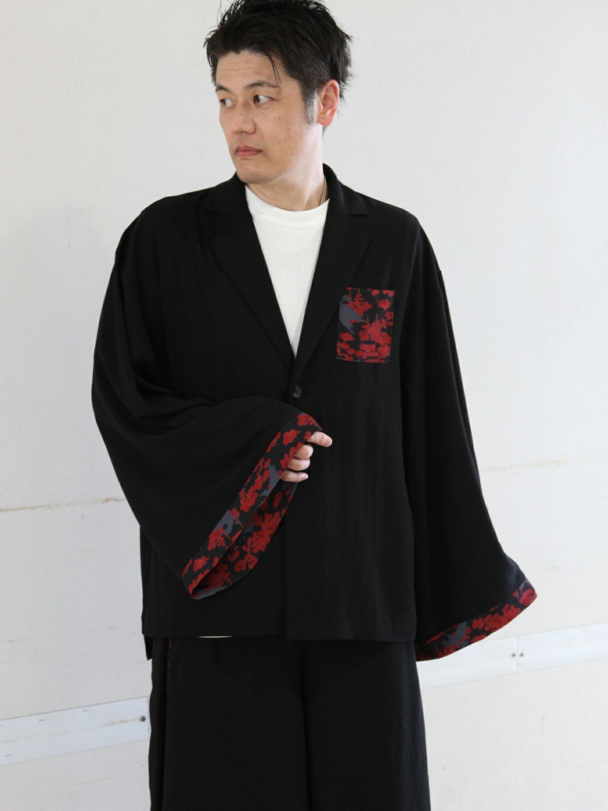 “八咫烏と雲”和生地遣いキモノスリーブ テーラードジャケット