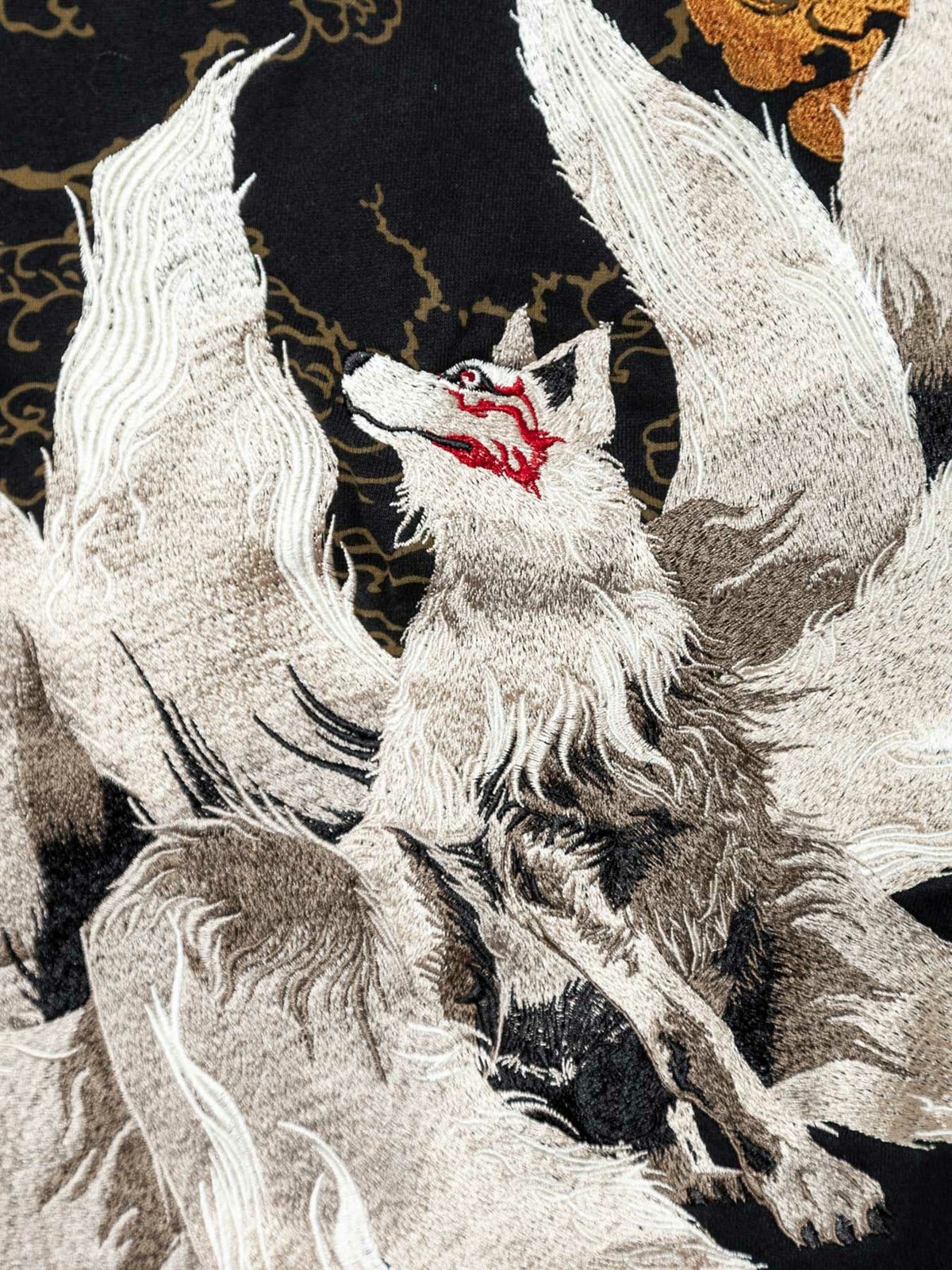 “九尾灯火”総刺繍ZIPパーカー