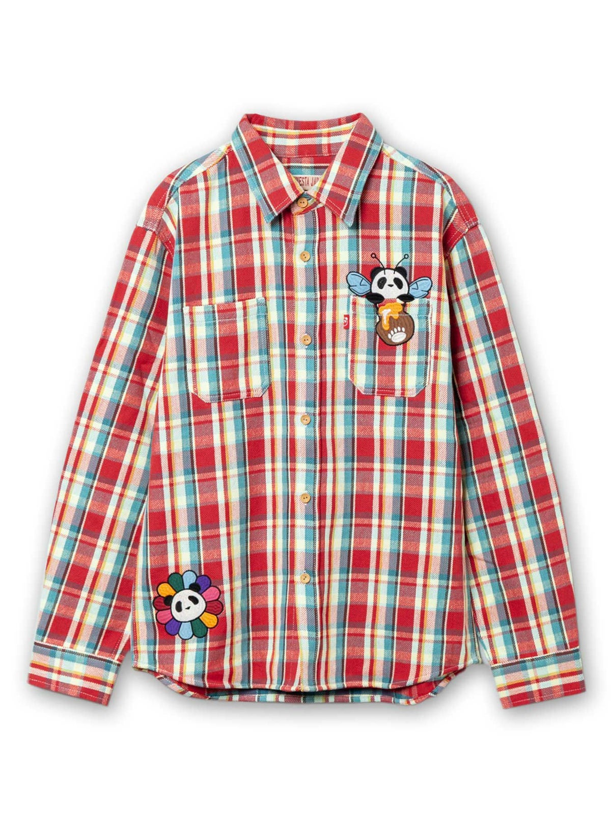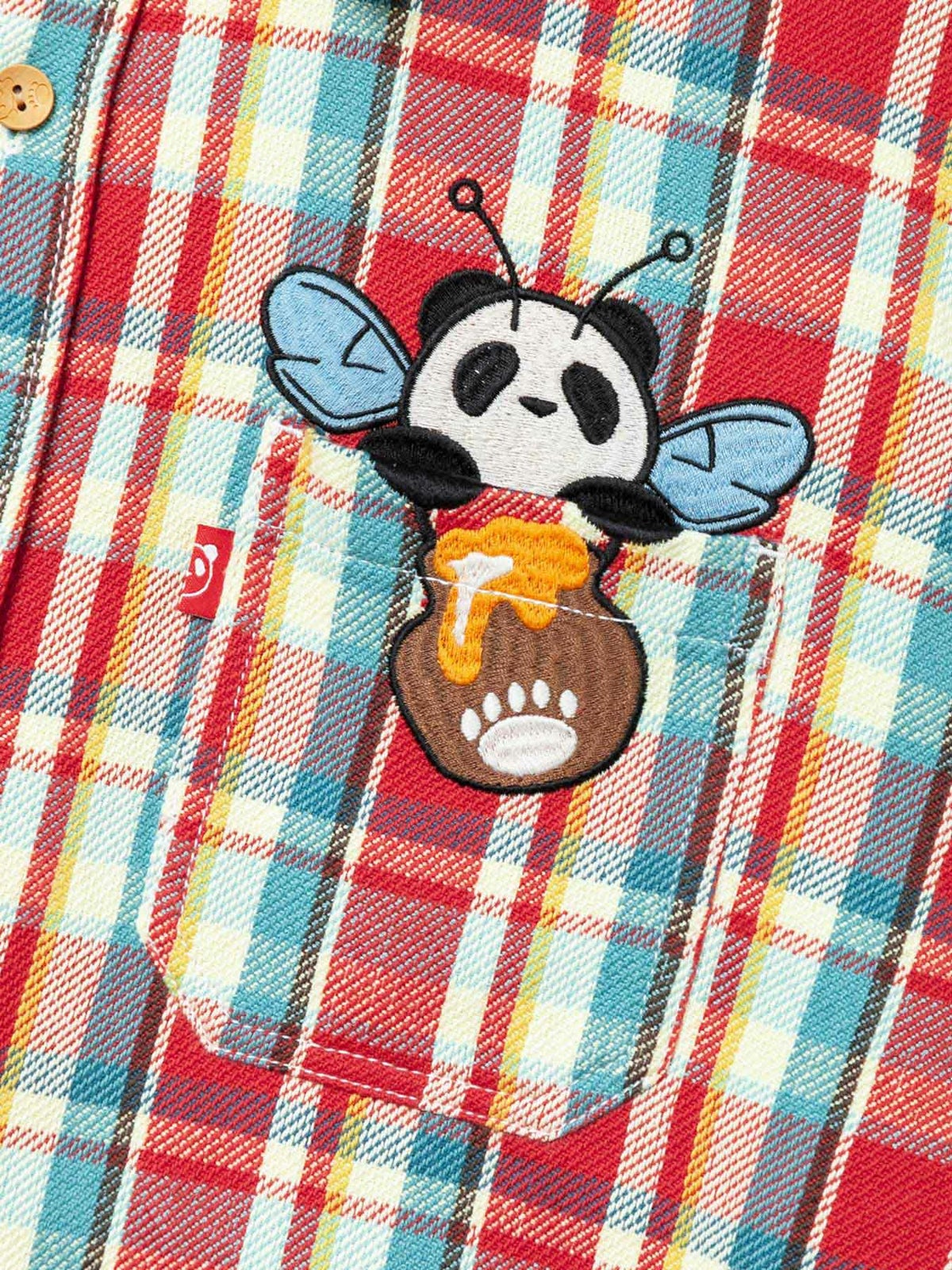 “ハニーパンダ”刺繍入りヘビーフランネルチェックシャツ