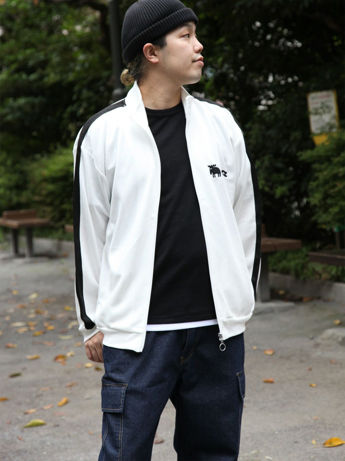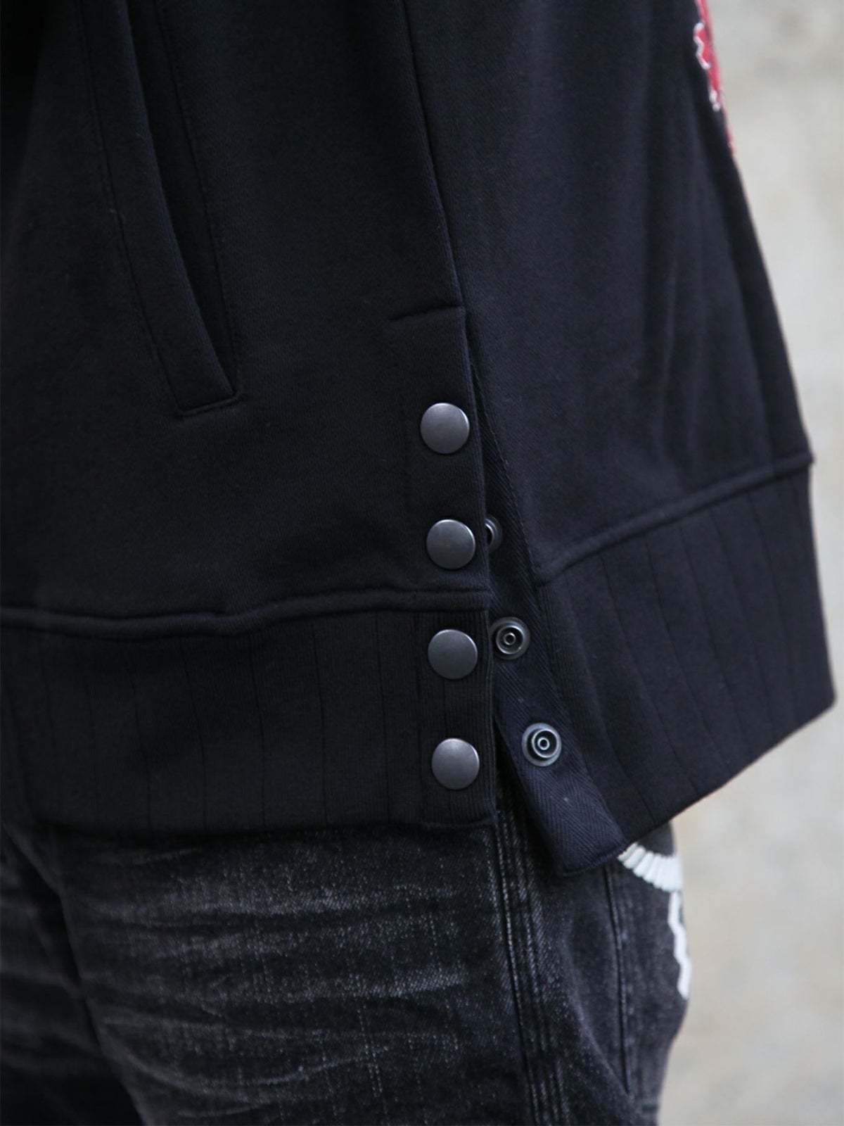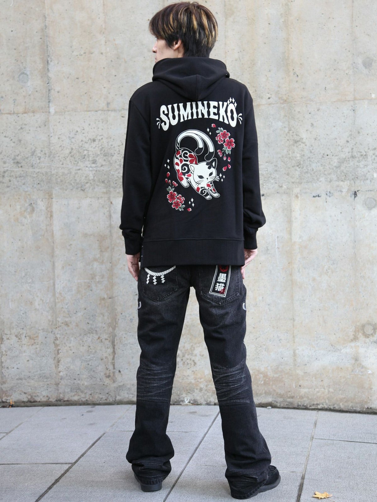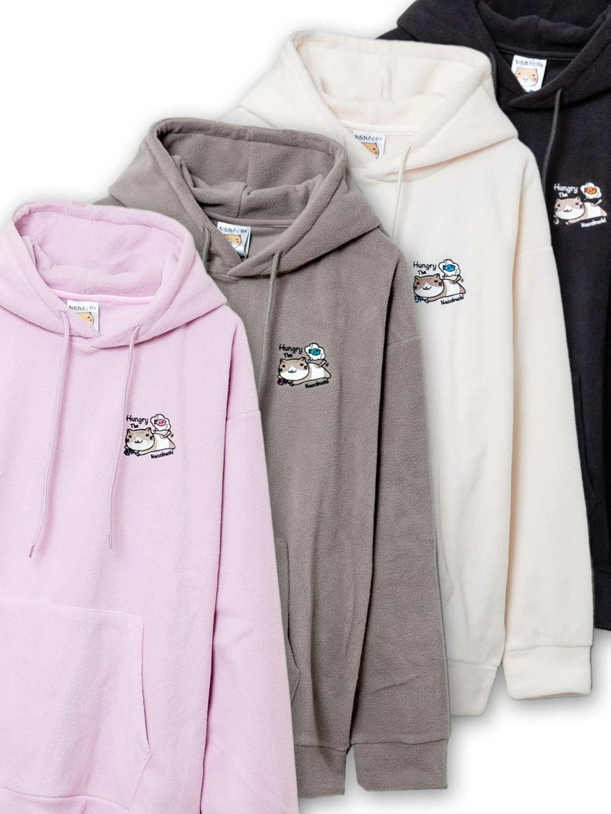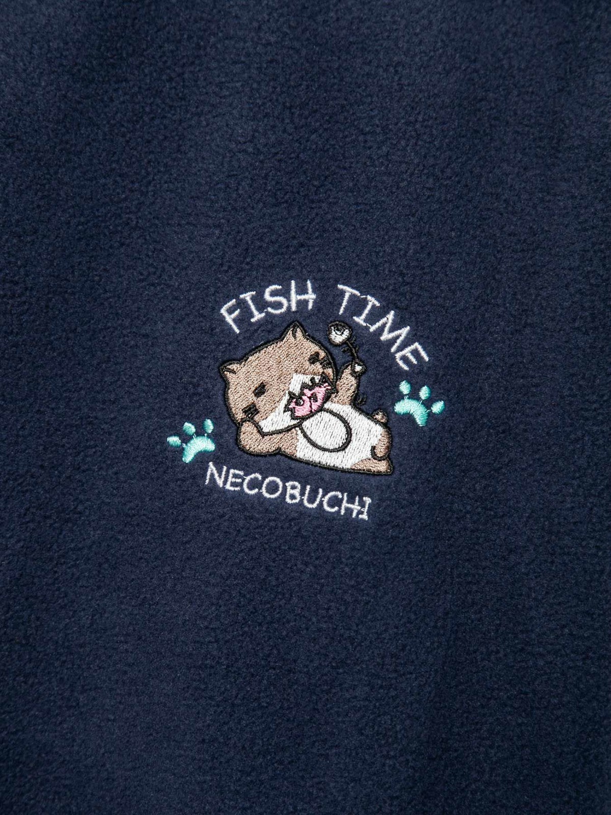 “伸び猫”刺繍入りサイドボタンZIPパーカー