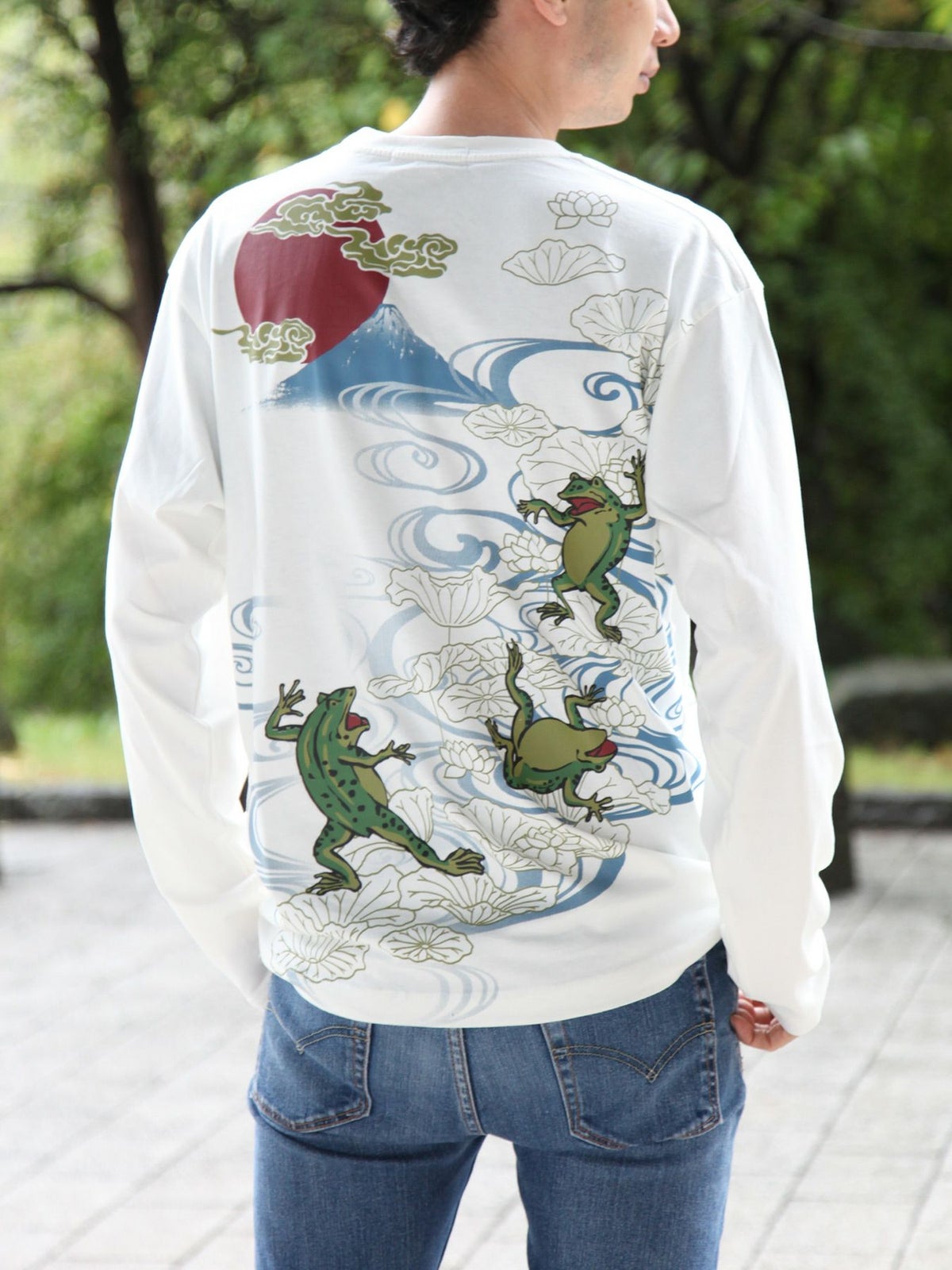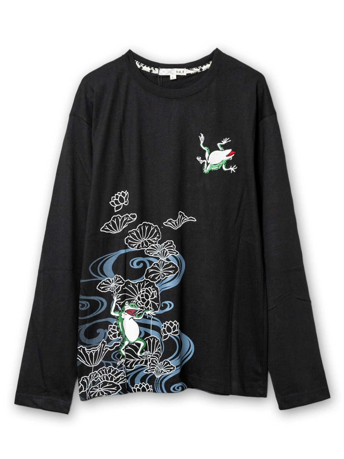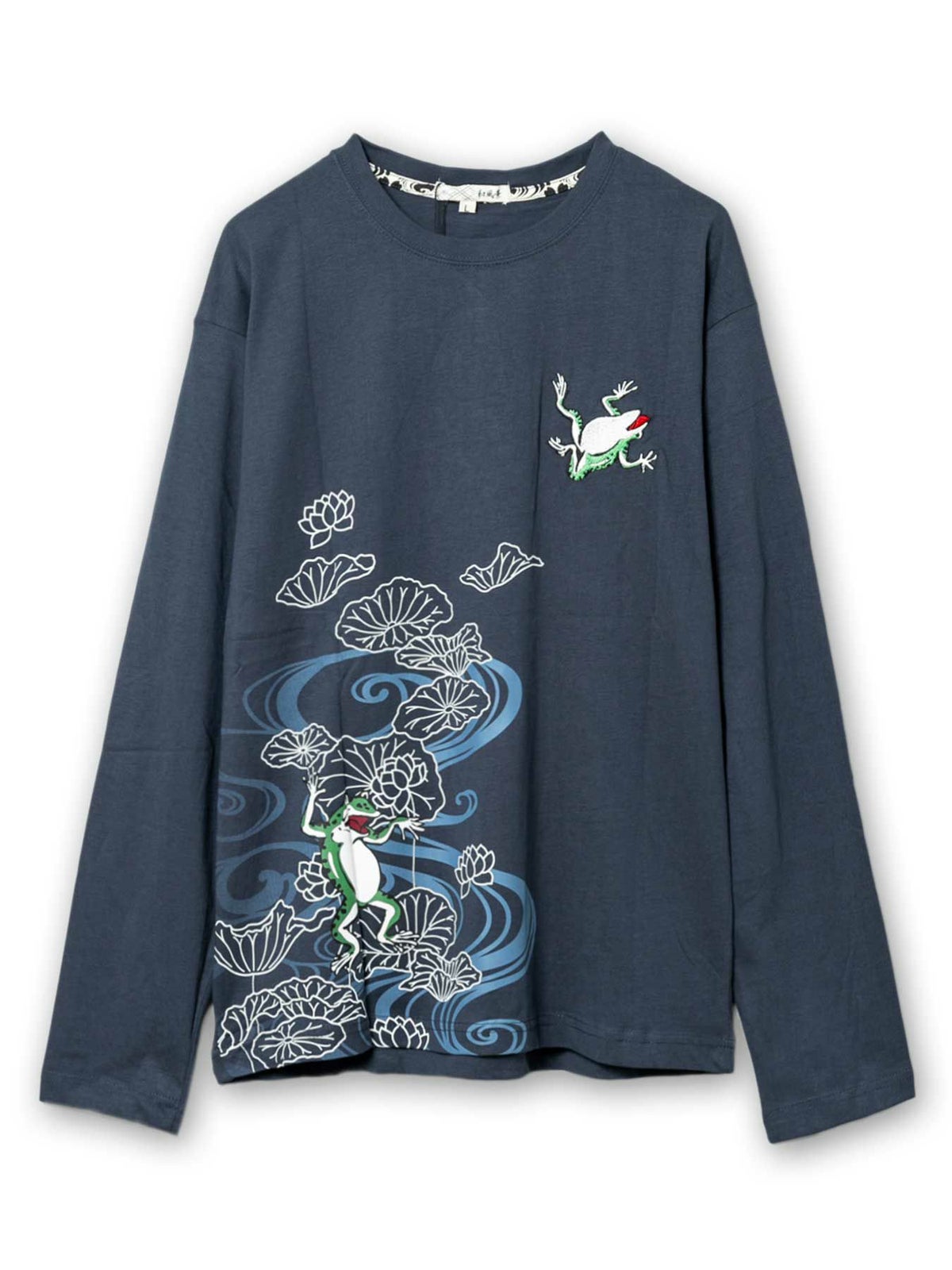 “蛙と蓮”刺繍入りプリントロンT
