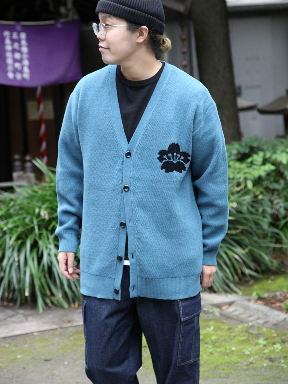 菊刺繍カーディガン×5分袖Tシャツセット