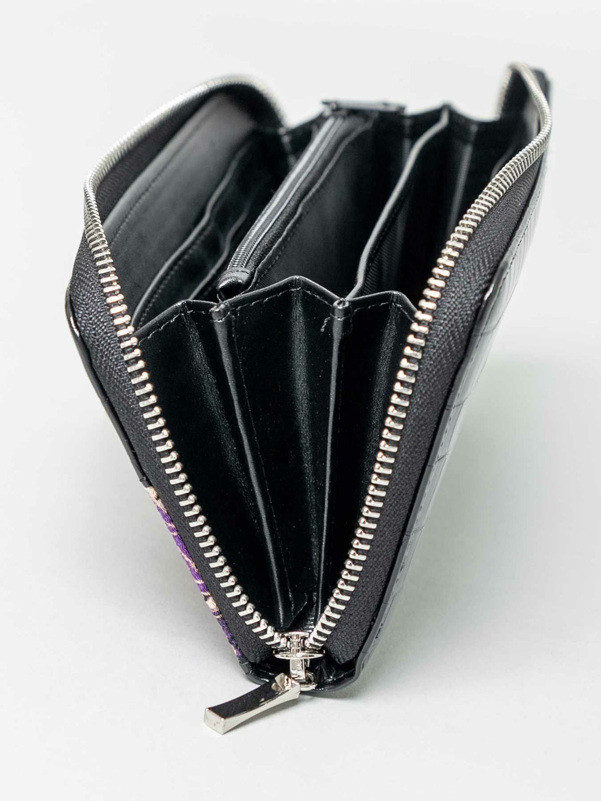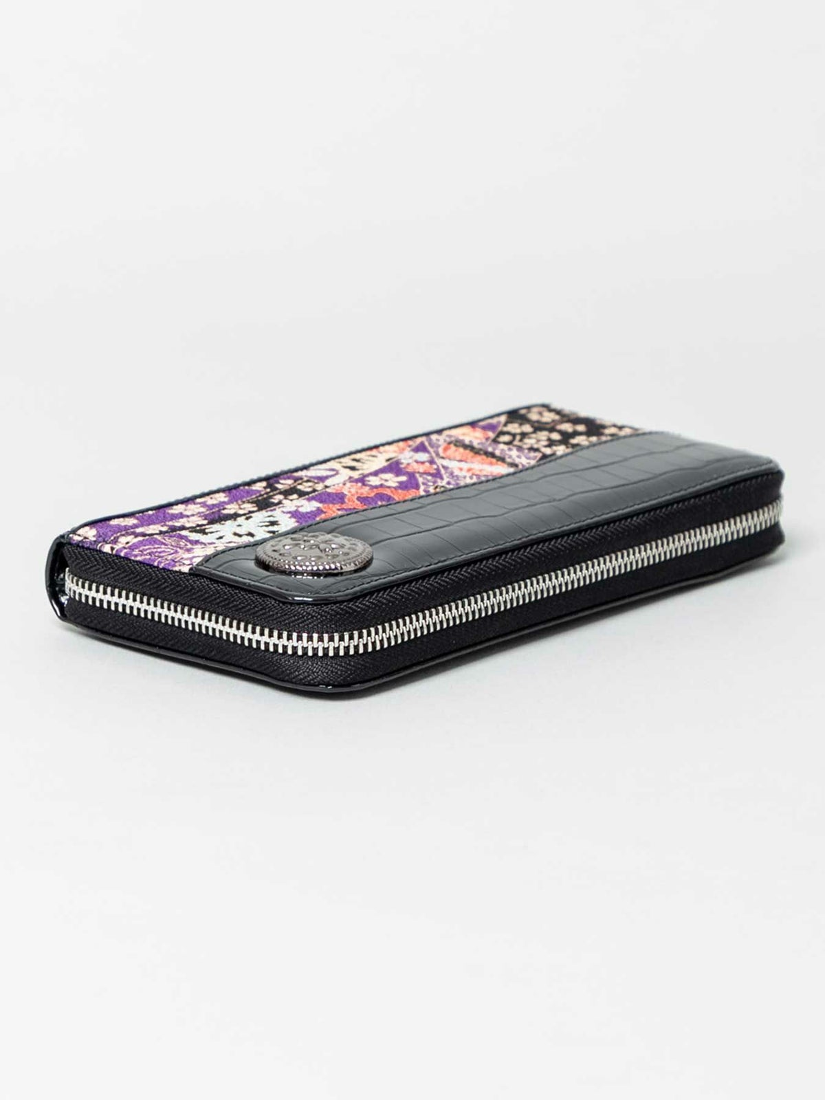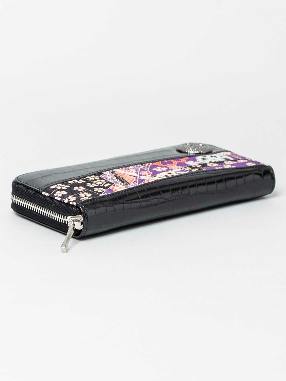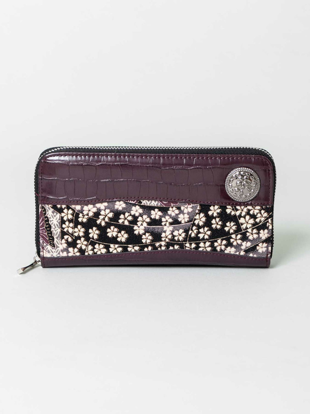 ちりめん×クロコ切替コンチョ付きZIPロングウォレット
