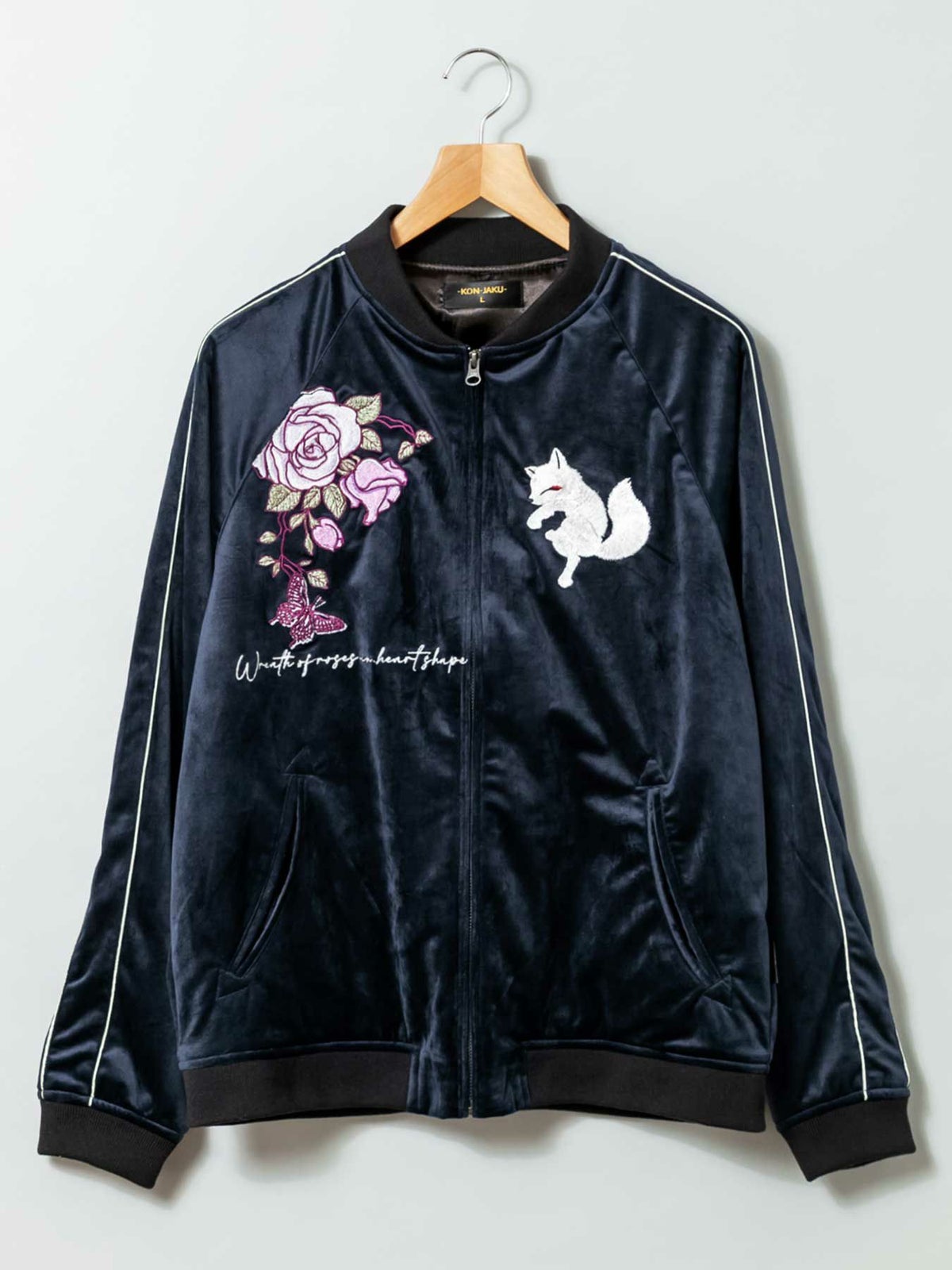 “ハートの形の薔薇のリース”総刺繍ベロアスカジャン