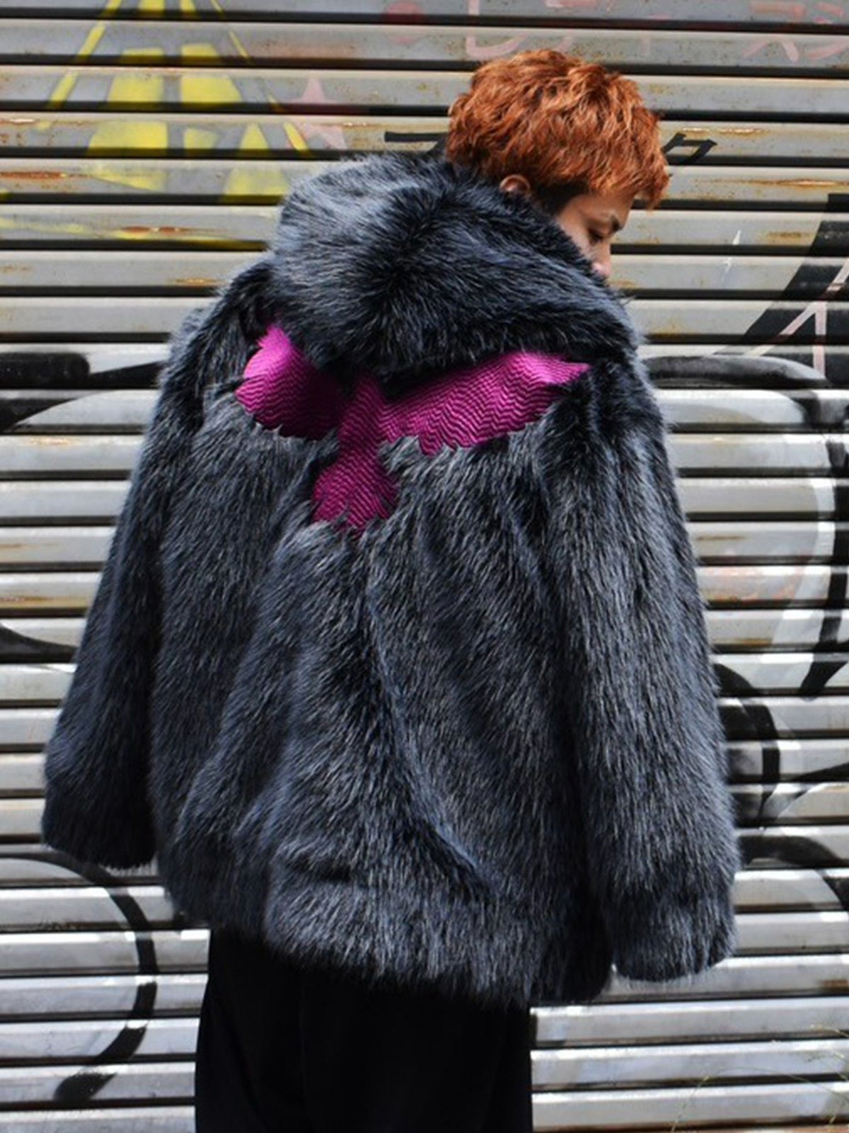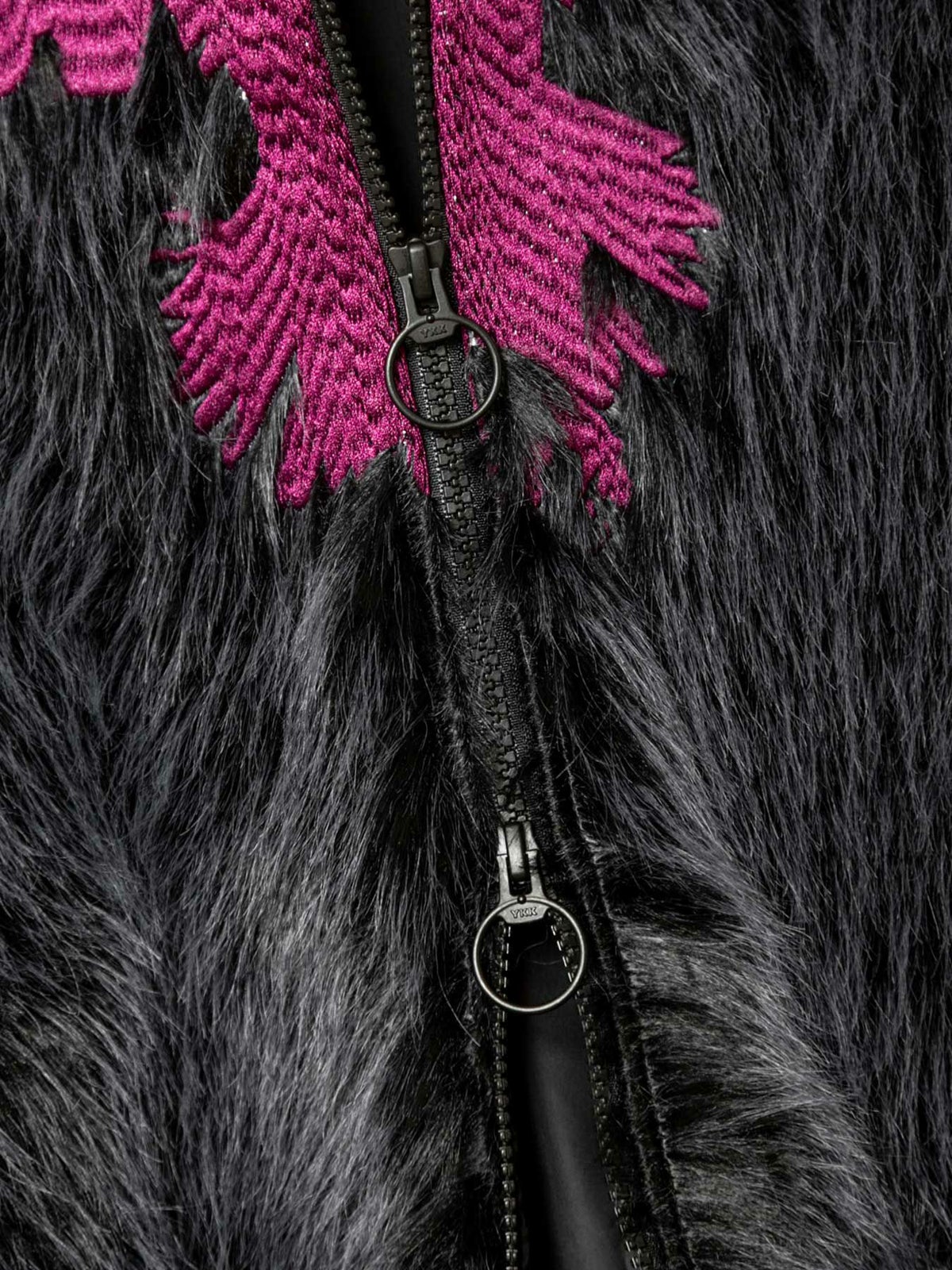 “カラス”総刺繍フェイクファーパーカー