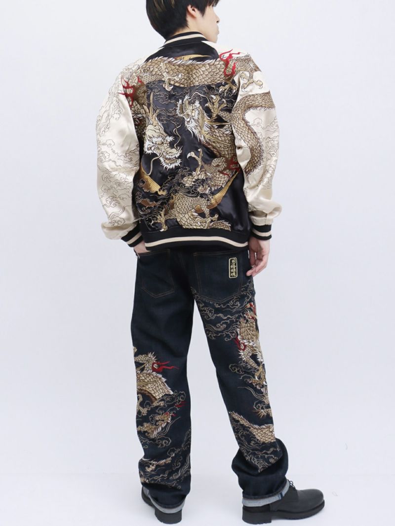 【絡繰魂・粋】“月光双龍”総刺繍デニムパンツ