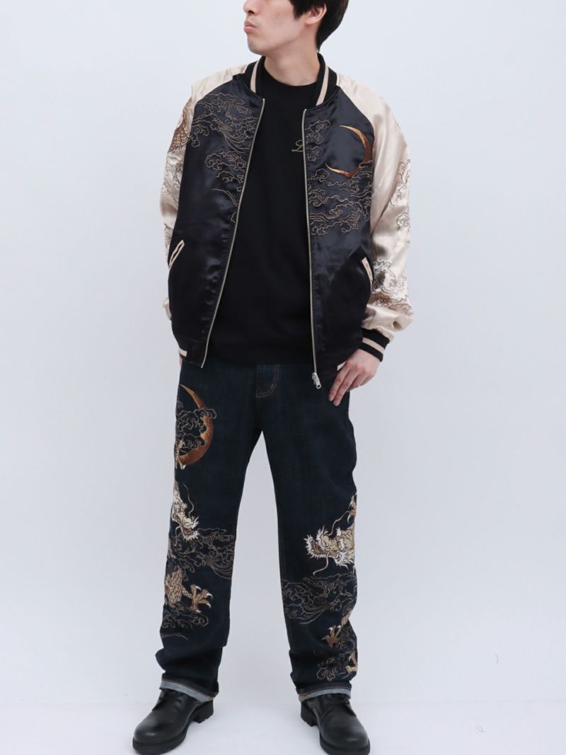 “月光双龍”総刺繍デニムパンツ