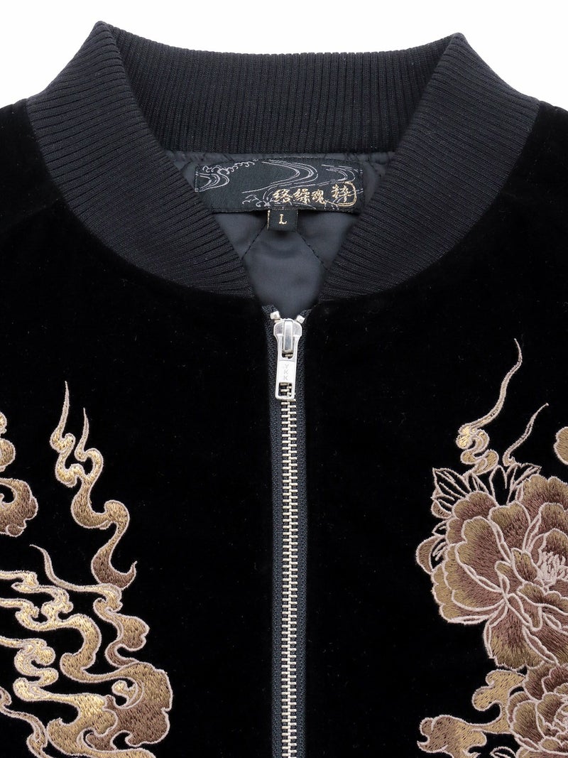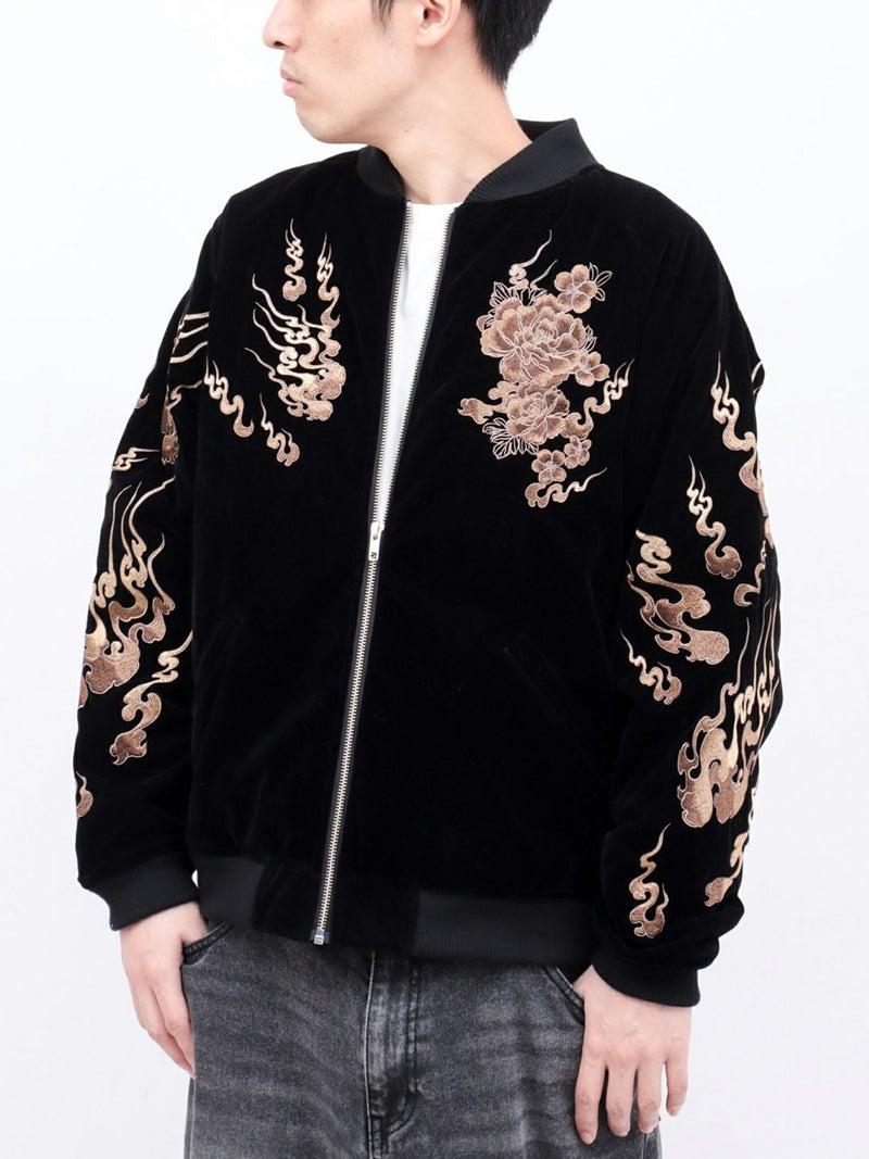 “火炎九尾”総刺繍 ベロア素材スカジャン
