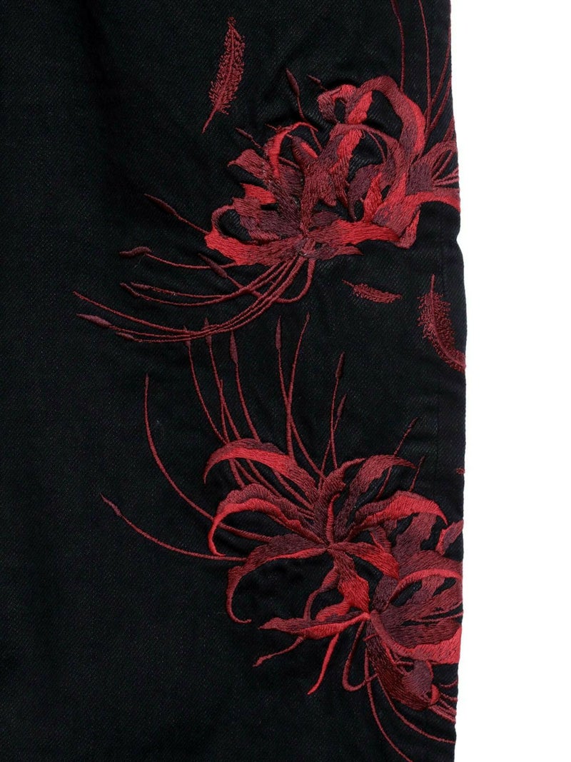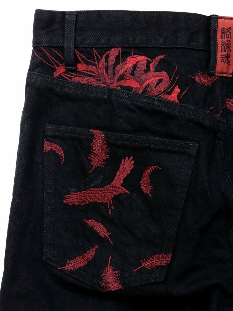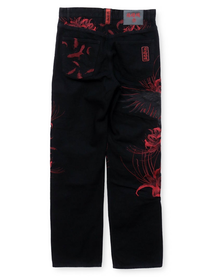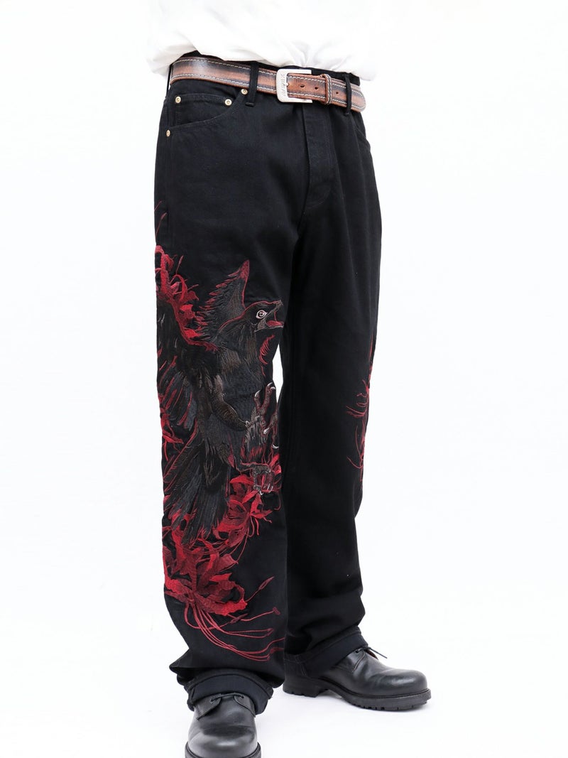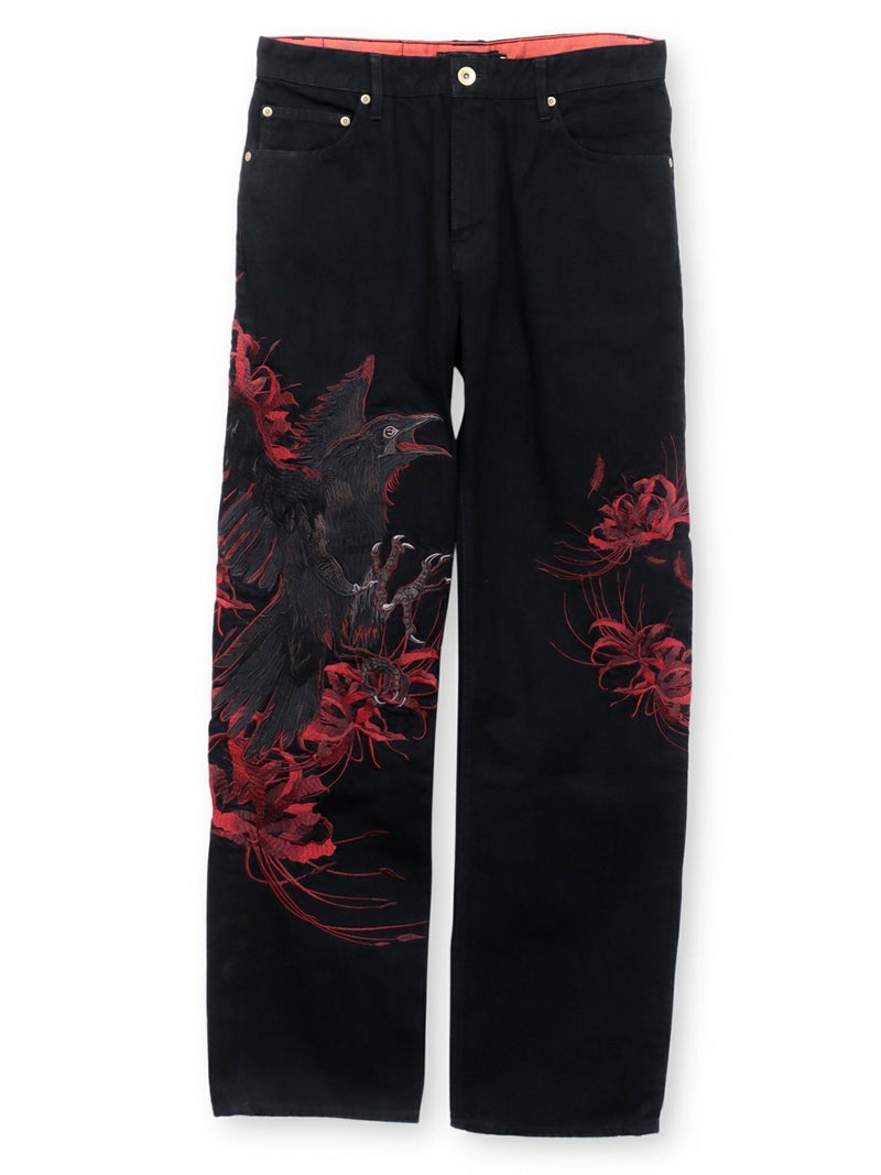 - 【絡繰魂・粋】“八咫烏と彼岸花”総刺繍デニムパンツ〔別注〕