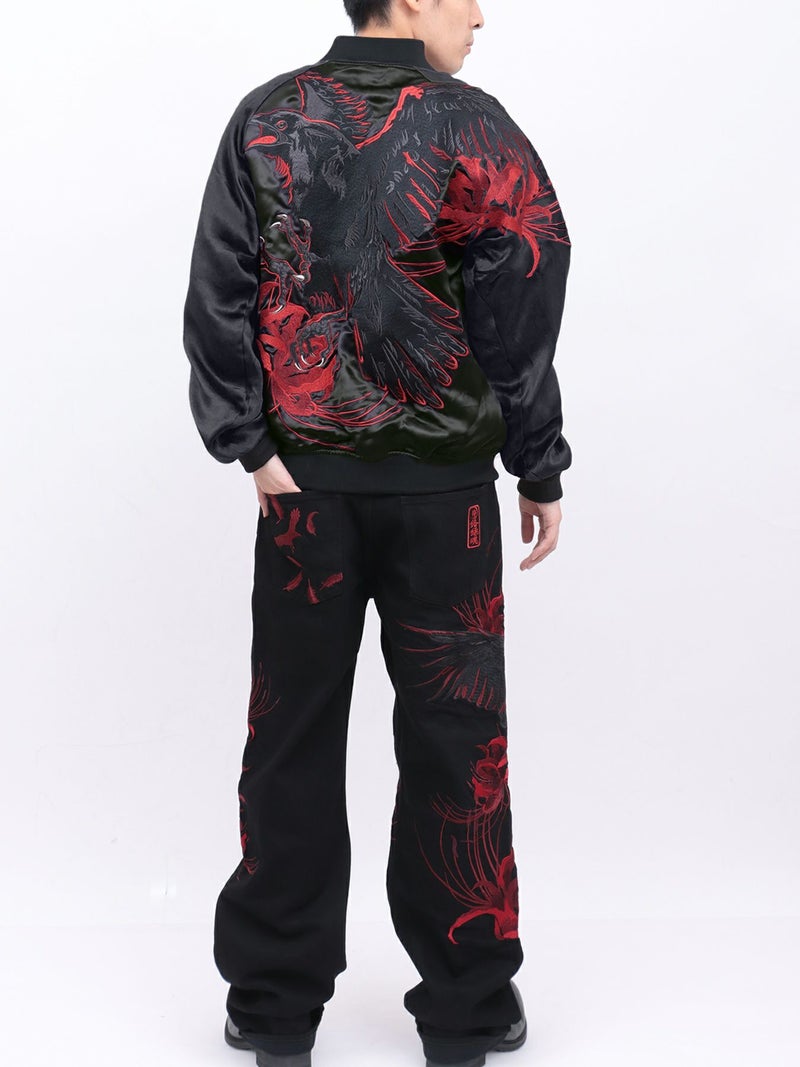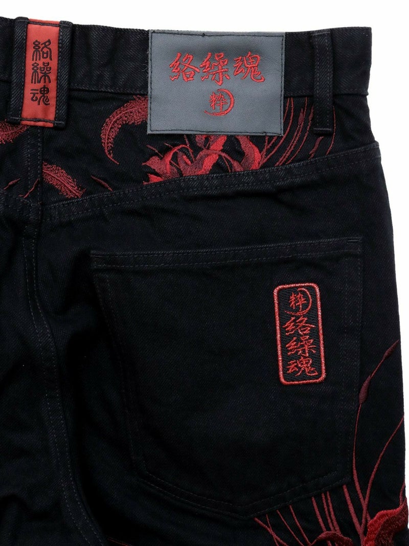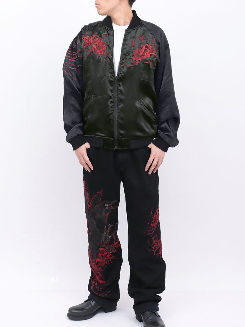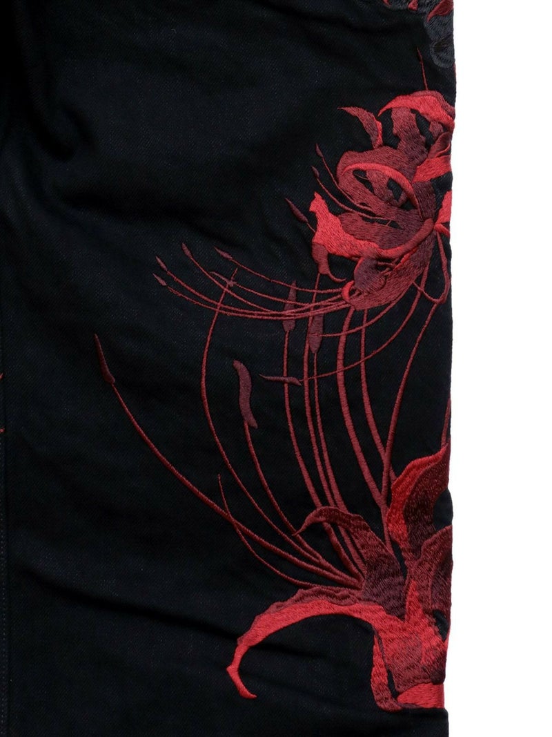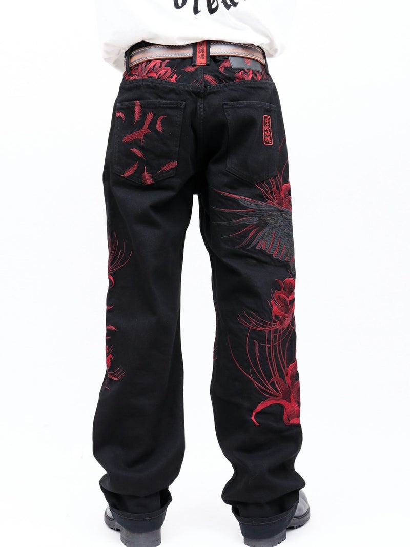 - 【絡繰魂・粋】“八咫烏と彼岸花”総刺繍デニムパンツ〔別注〕