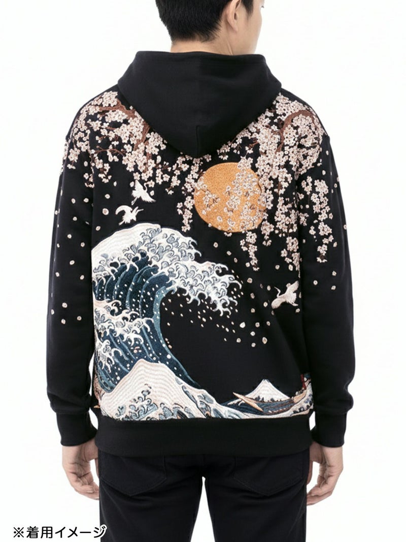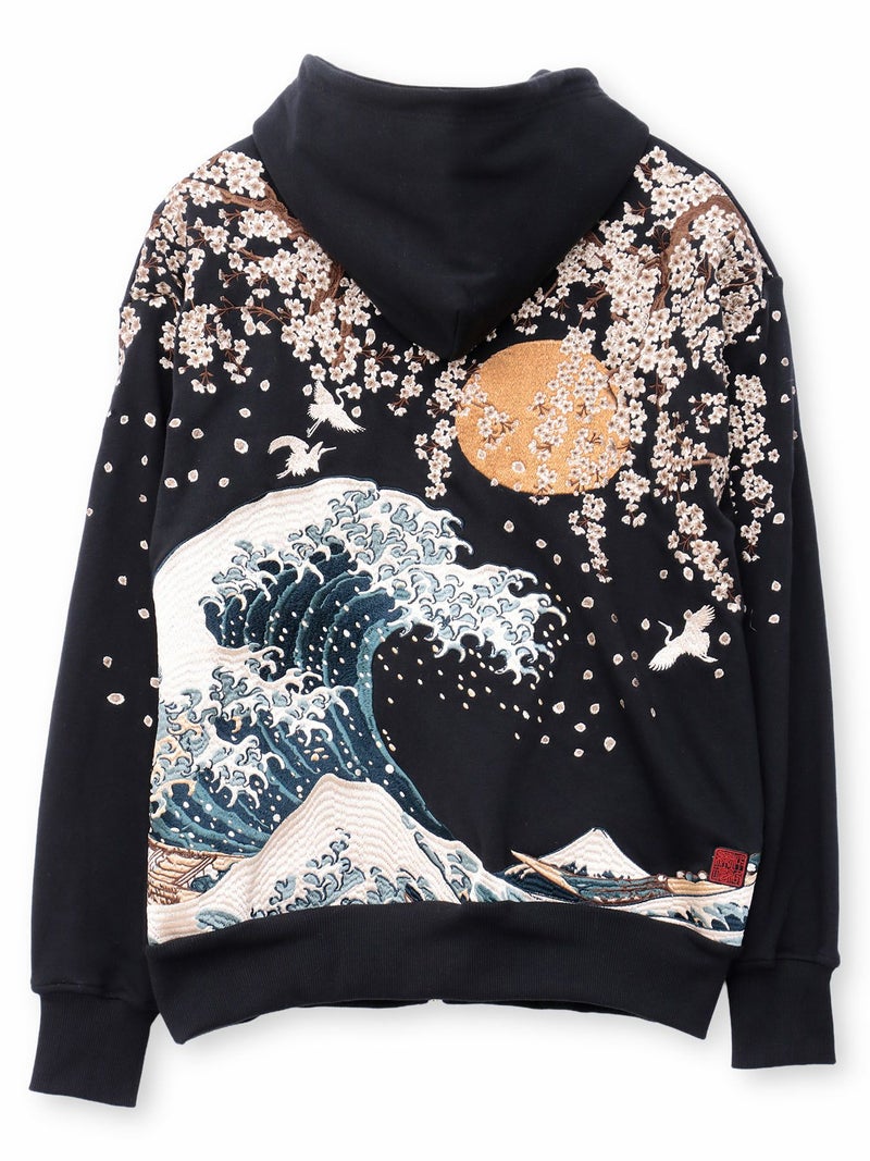 “北斎神奈川沖浪裏”総刺繍ZIPパーカー