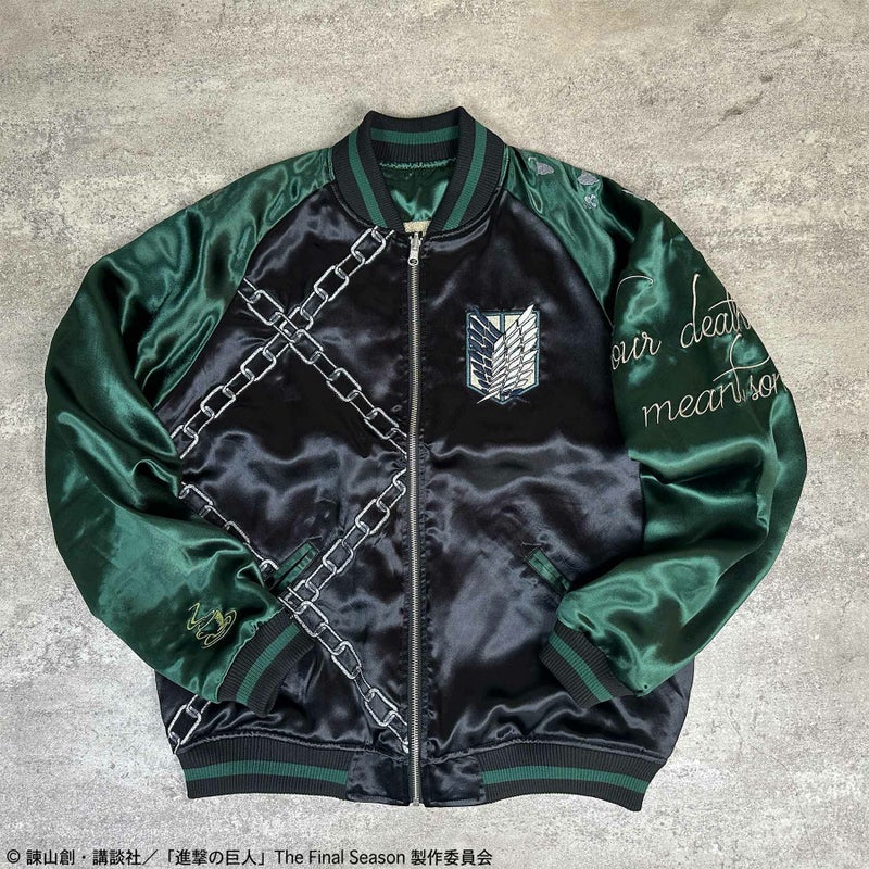 リバーシブル裏面にすると、調査兵団が作成したようなスカジャンとして着用する事が可能!