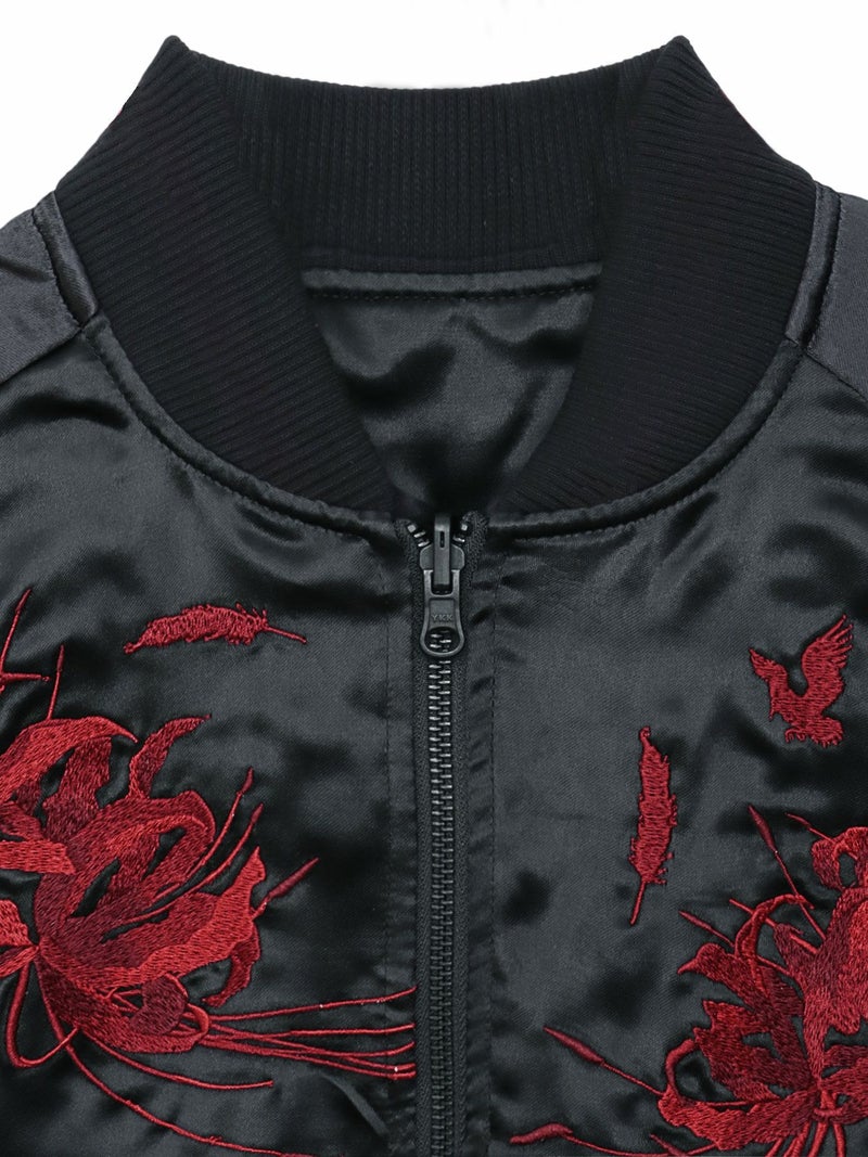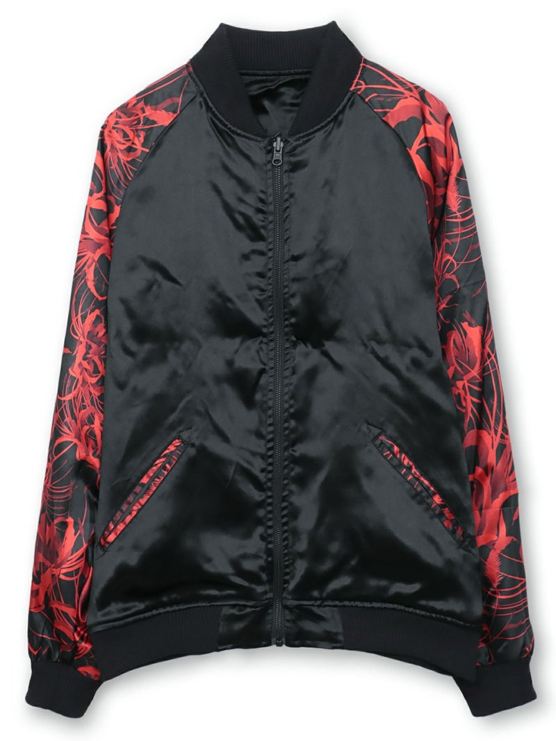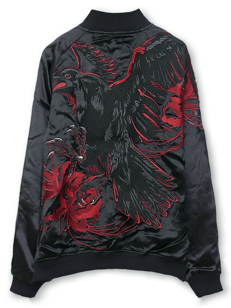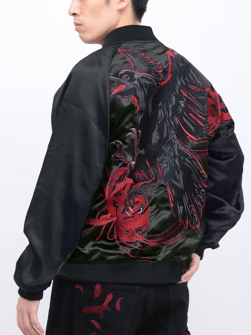 - 【絡繰魂・漆】“八咫烏と彼岸花”総刺繍リバーシブルスカジャン〔別注〕
