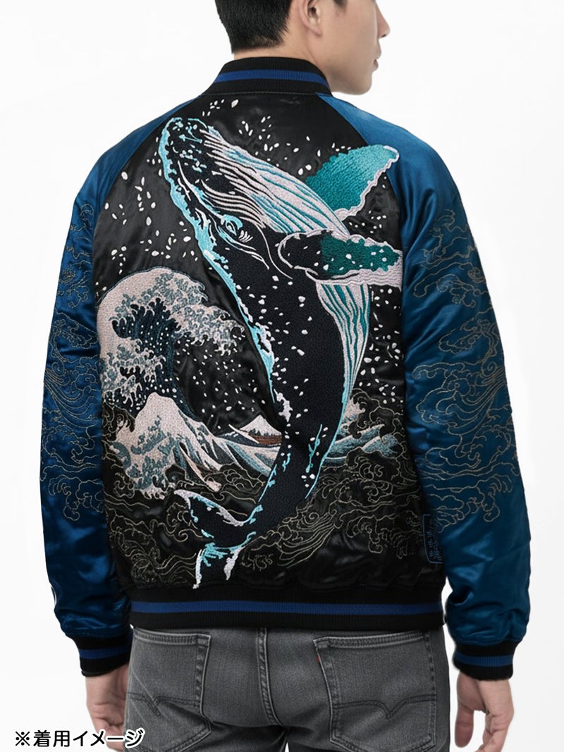 “座頭鯨飛翔”総刺繍リバーシブルスカジャン