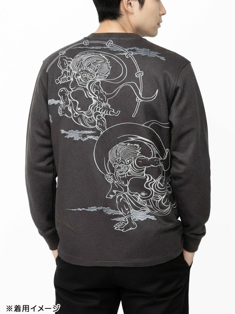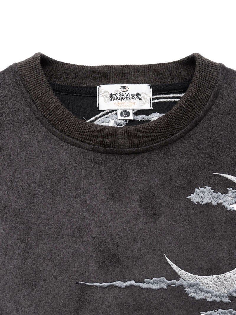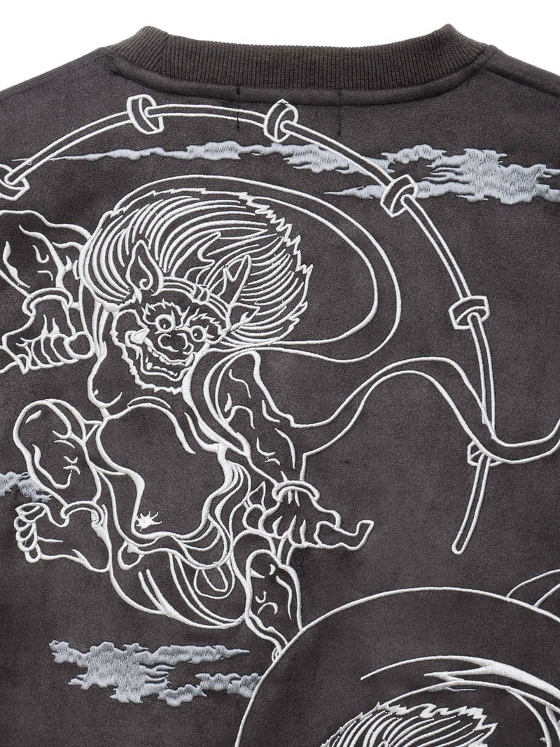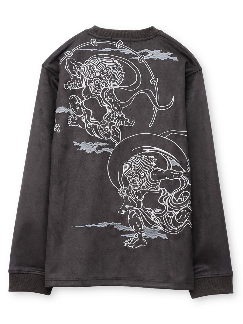 “風神雷神”刺繍入りフェイクスウェードロンT