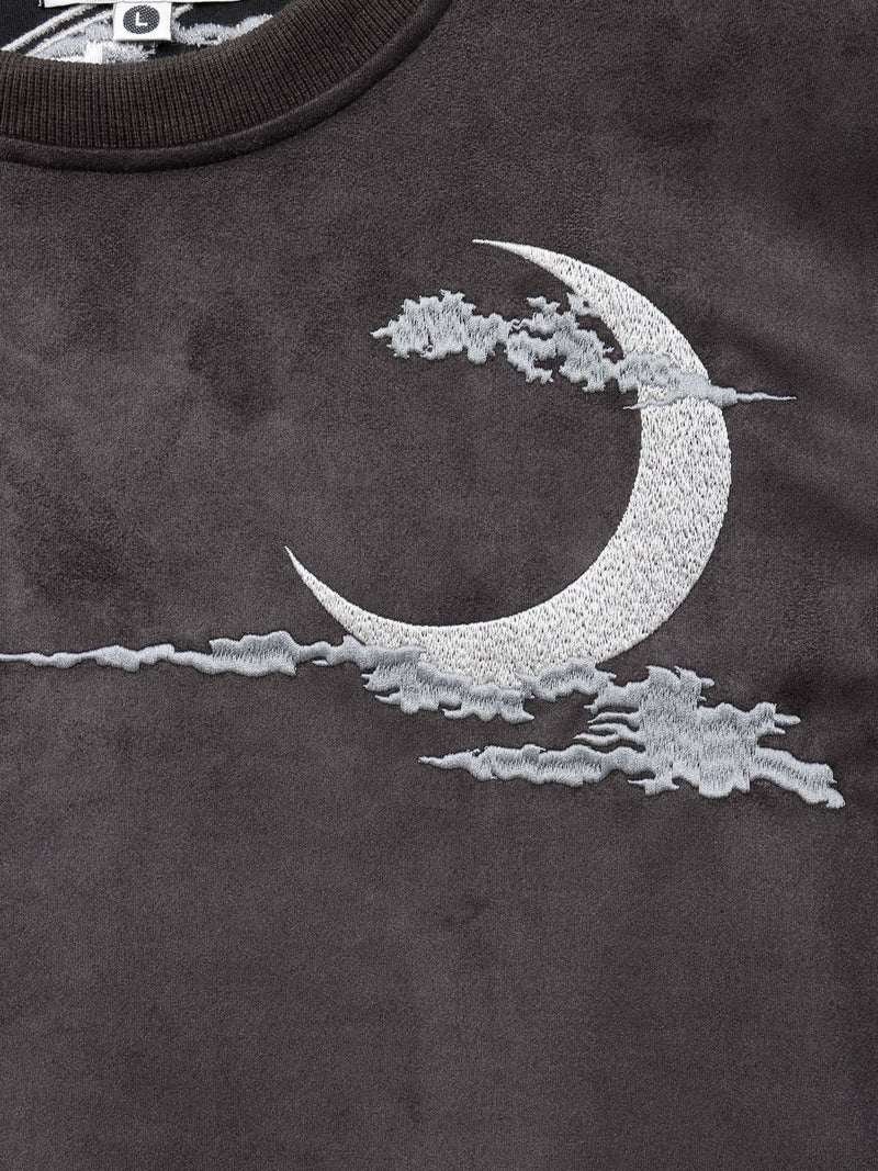 前面はシンプルに左胸部分に雲から見え隠れする三日月を刺繍で施しました。