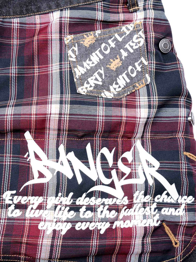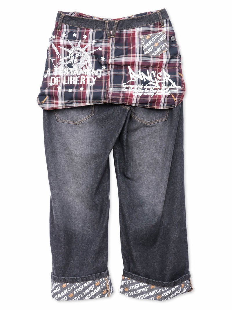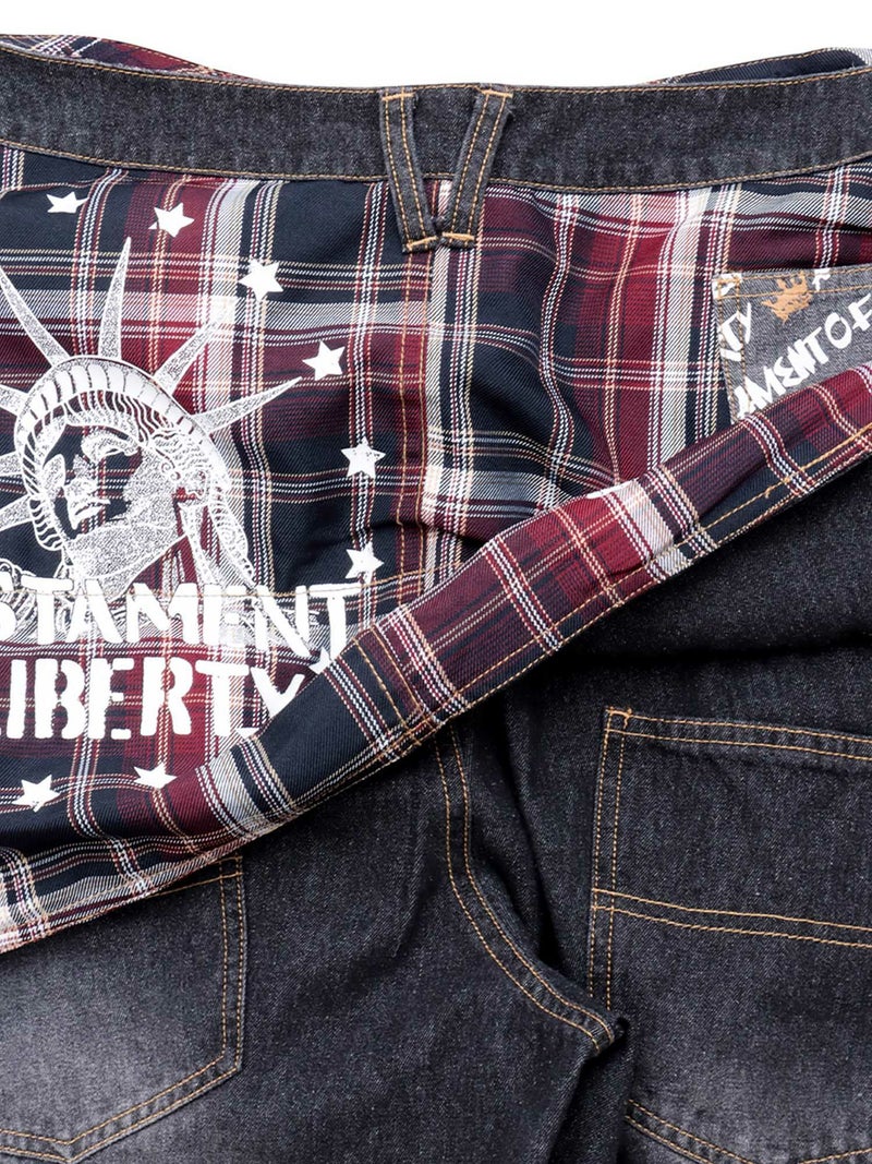 ゆったりとしたシルエットに、遊び心のあるディテールを加え、バックスタイルにはチェック柄の別布があしらわれ、自由の女神のプリントが存在感を放ちます。