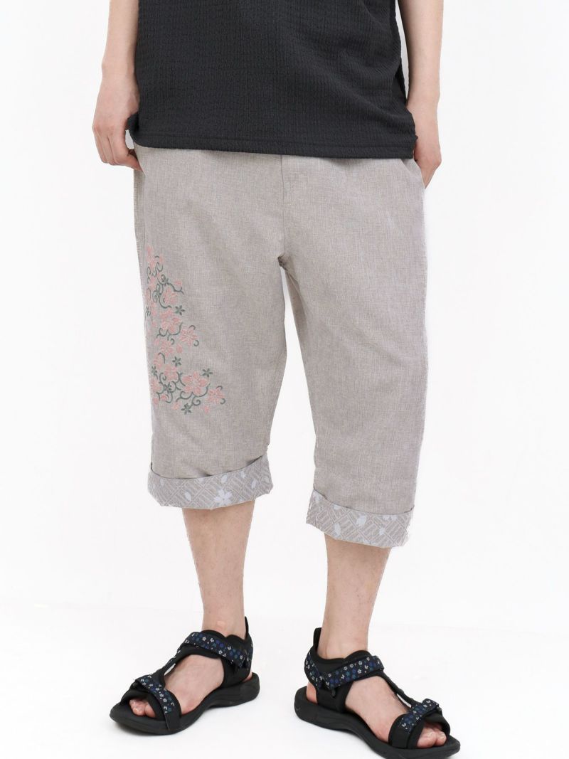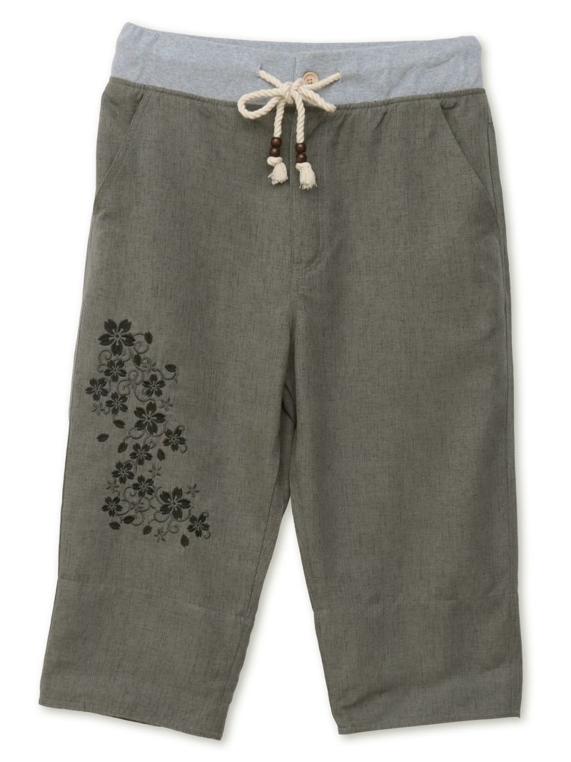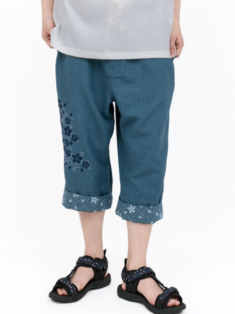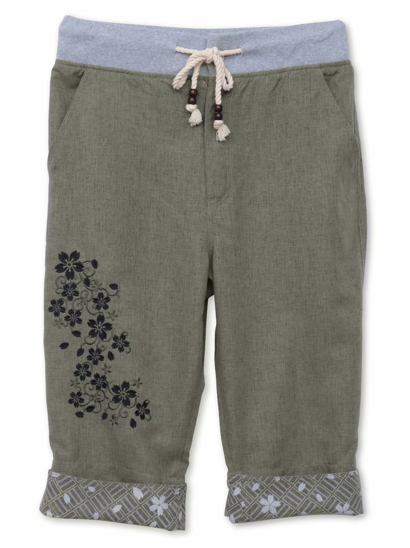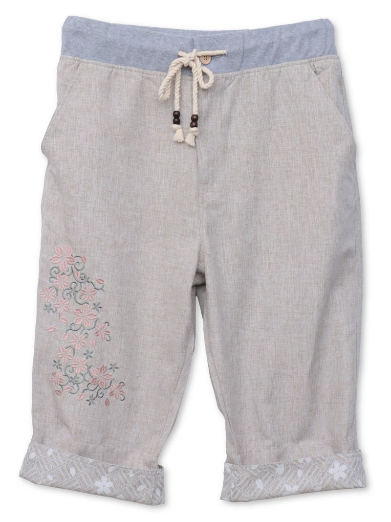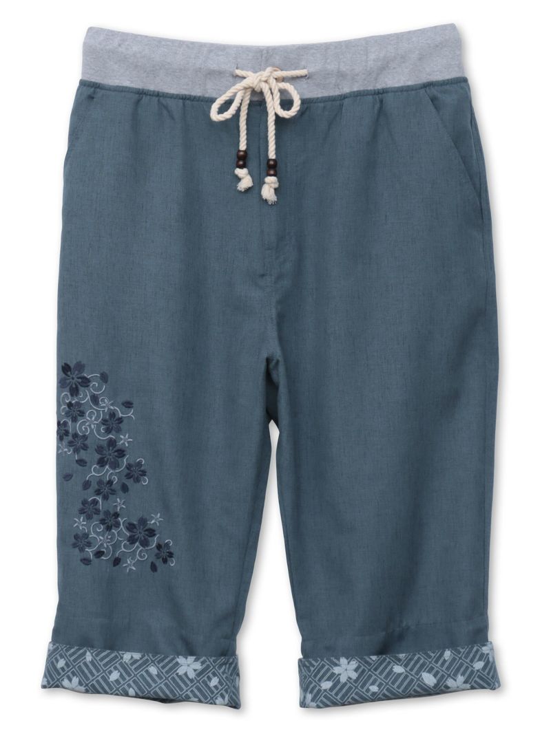 - ≪30%OFF≫【雅結】桜唐草刺繍シャンブレー素材クロップドパンツ≪返品・取寄対応不可≫