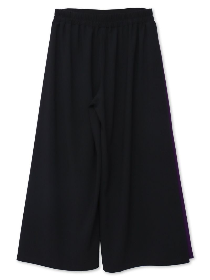 上品な配色切替が目を惹く、和の雰囲気漂うワイドシルエットのロングガウチョパンツ。
