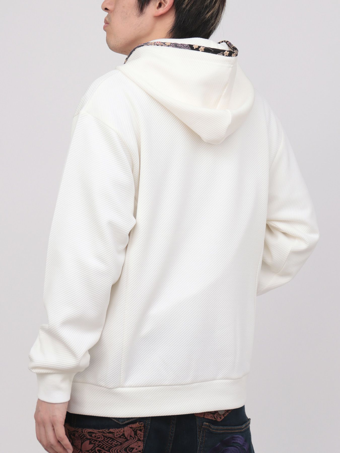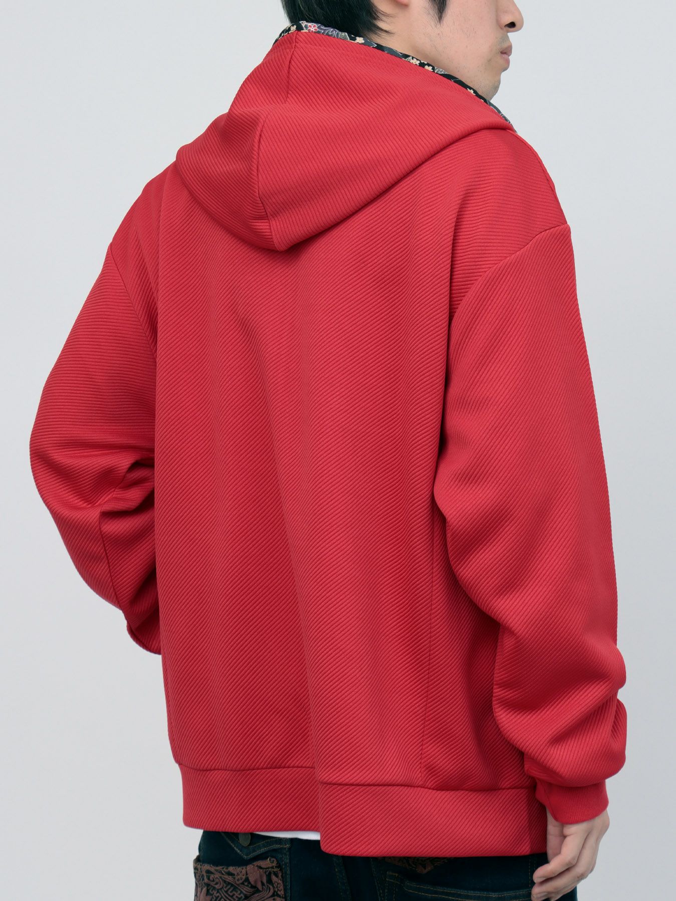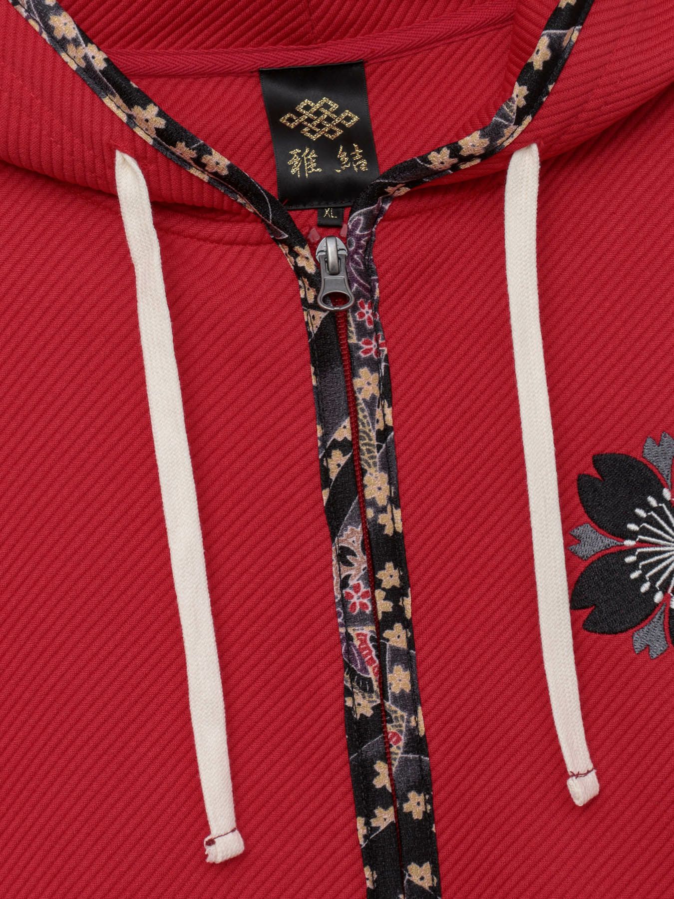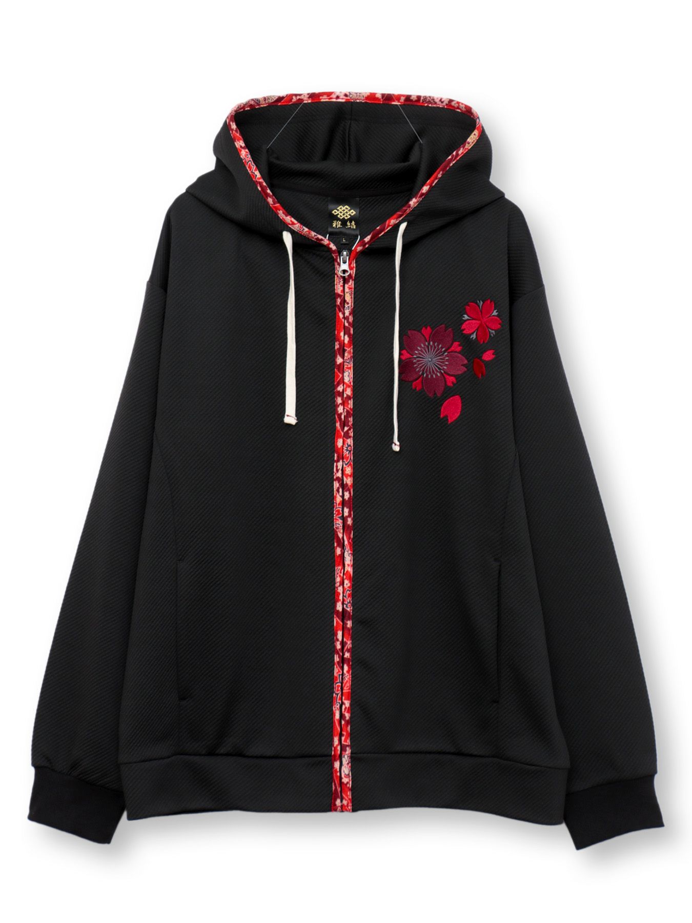 - ≪25%OFF≫【雅結】桜刺繍ふくれジャガード素材 和生地遣いZIPパーカー≪返品・取寄対応不可≫