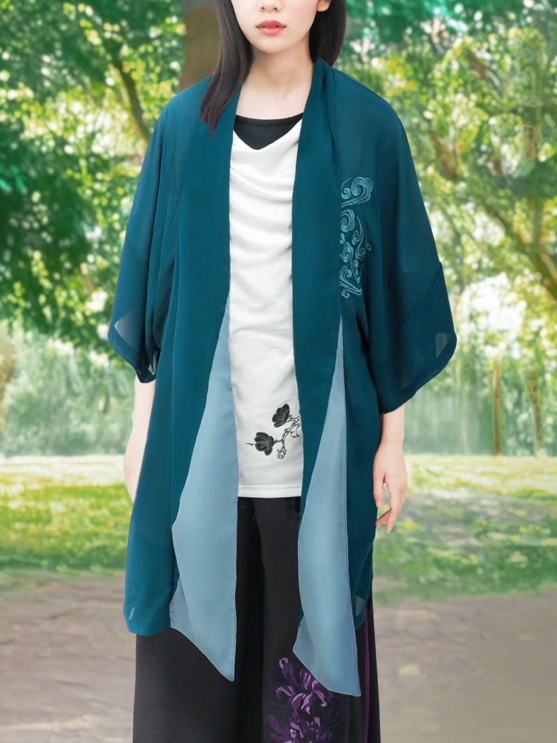 3. 【雅結 -EN-】八咫烏刺繍 楊柳素材 着物ロングカーディガン