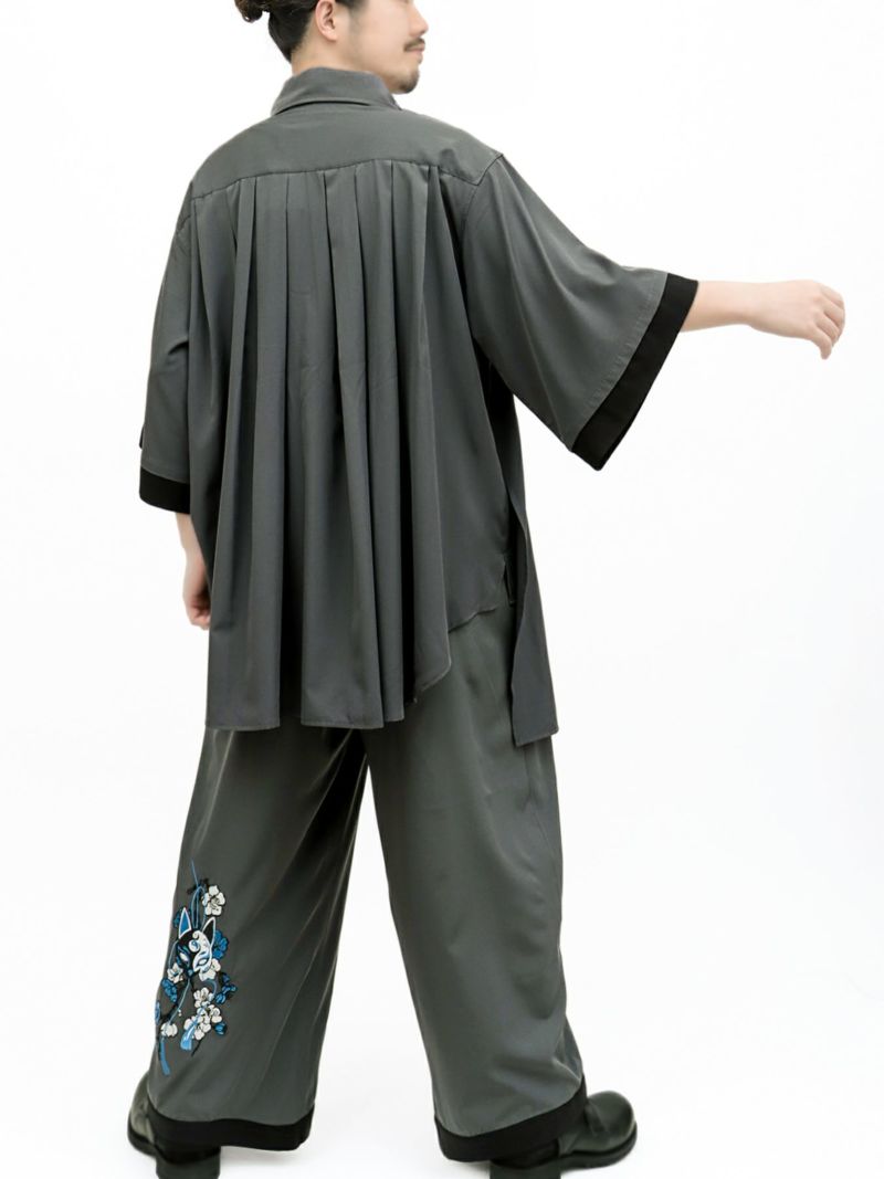 3. 【雅結 -EN-】“狐面”総刺繍キモノスリーブ5分袖 変形シャツ