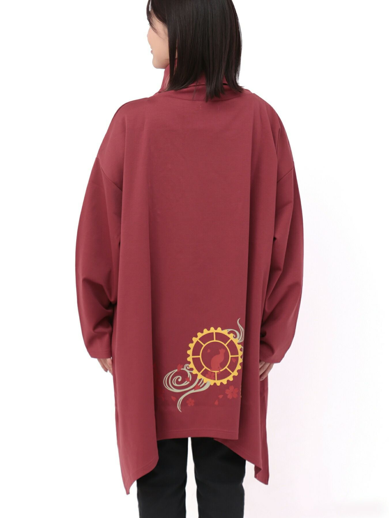 - 【雅結 -YuU-】猫と歯車刺繍オフタートルイレヘムチュニック